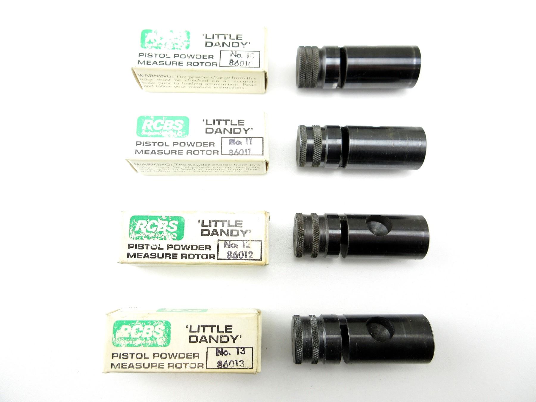 LOT INCLUDES; (4) "LITTLE DANDY" PISTOL POWDER MEASURE ROTORS, #10, #11, #12 & #13. SEE PHOTOS.