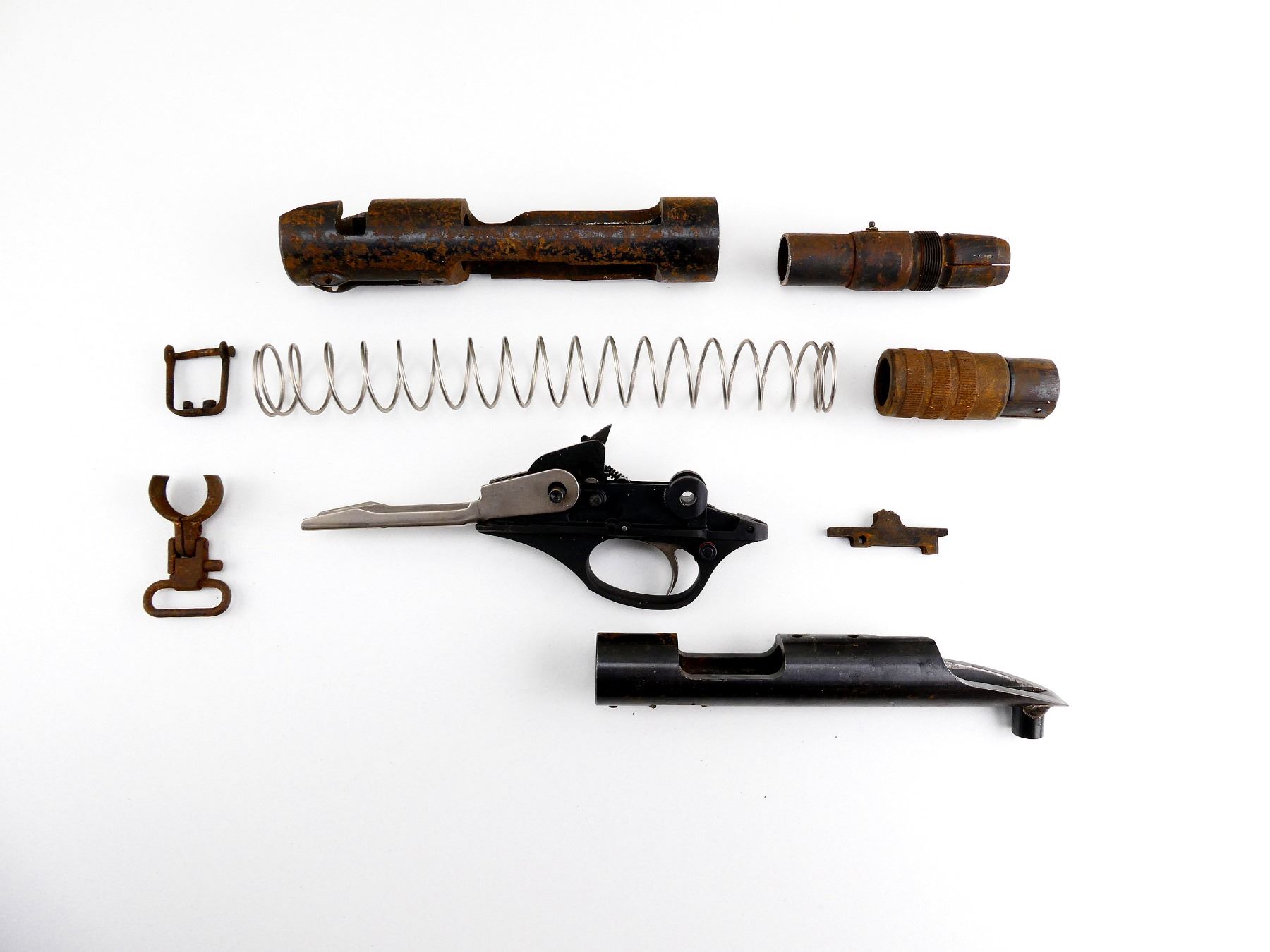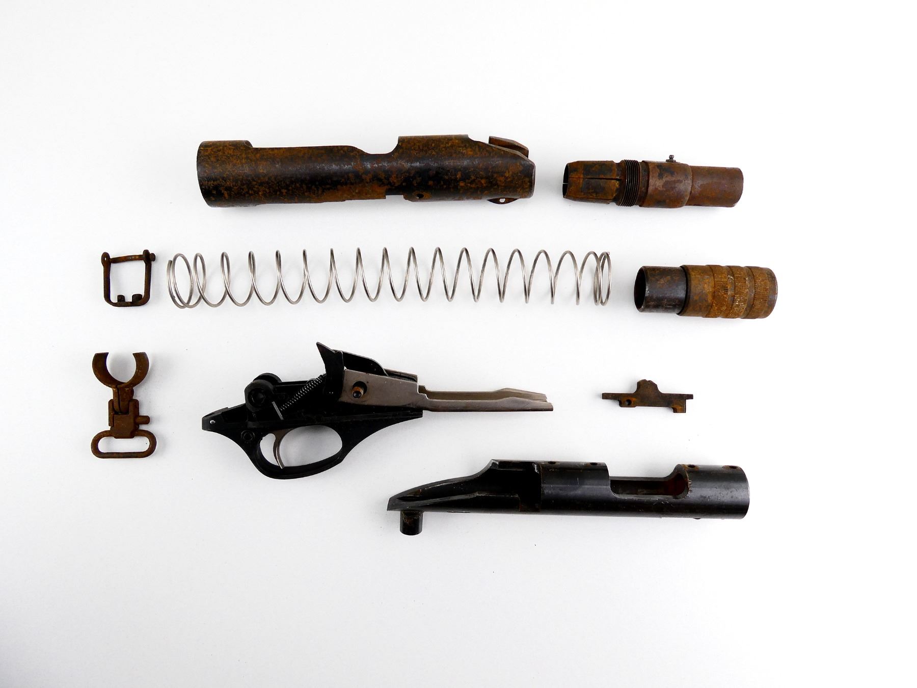 LOT INCLUDES; (1) UNKNOWN BOLT ACTION SHOT GUN RECEIVER, (1) .22 RIM FIRE BOLT ACTION RECEIVER, SHOT GUN TRIGGER MECH., ADJUSTABLE CHOKE, SPRING, PARTS, ETC. MAY REQUIRE FITTING. SEE PHOTOS. PAL REQUIRED.