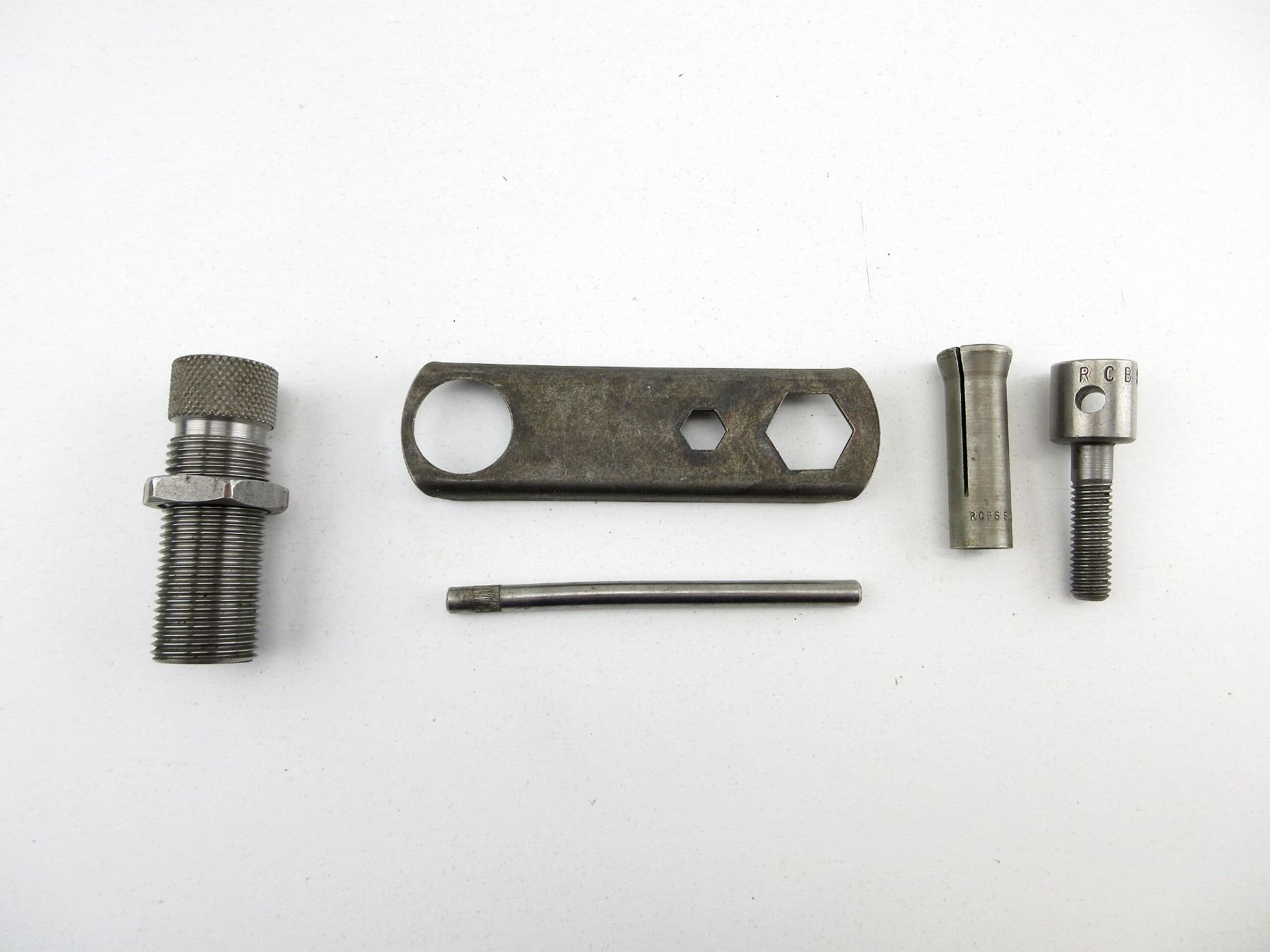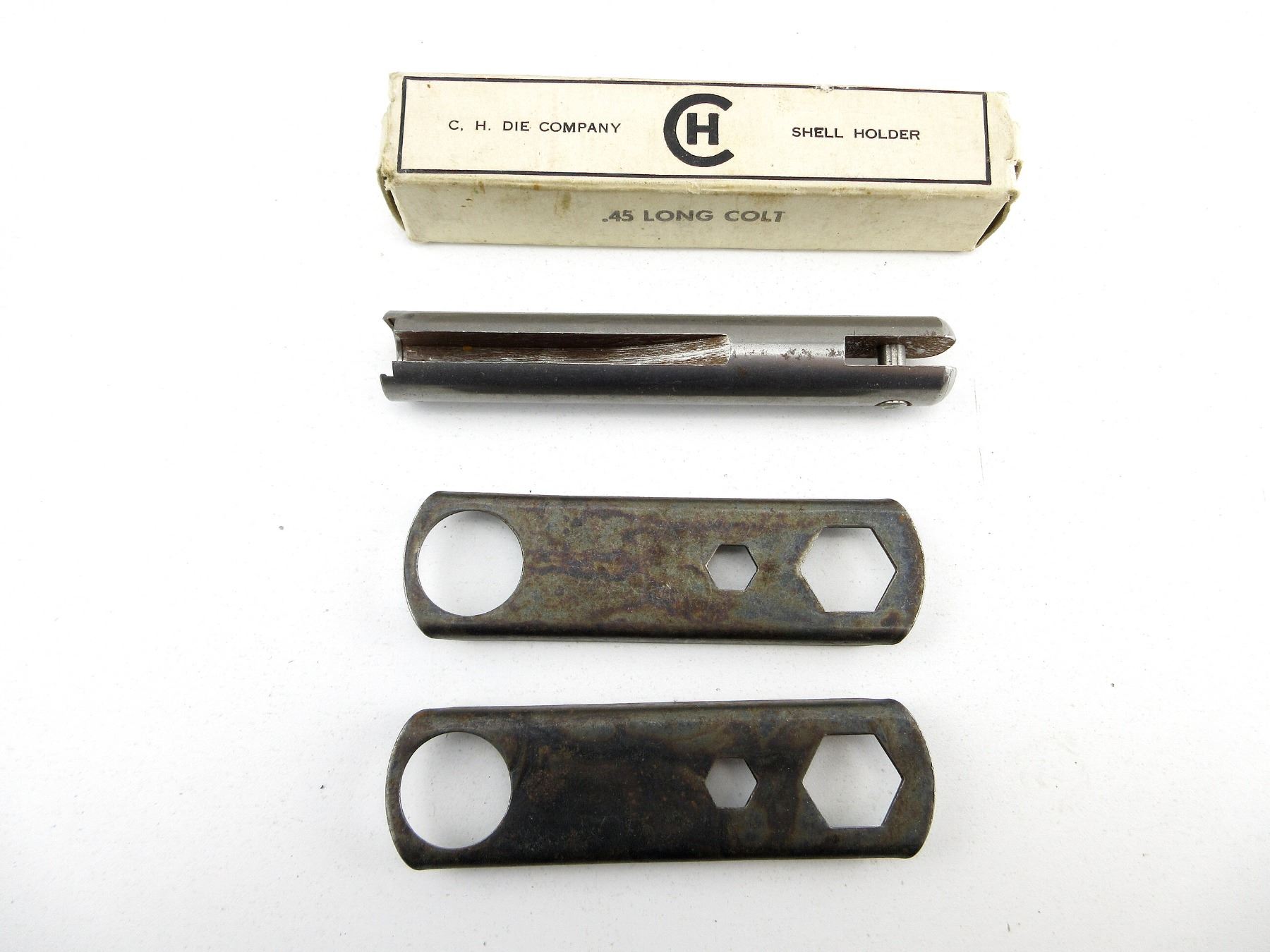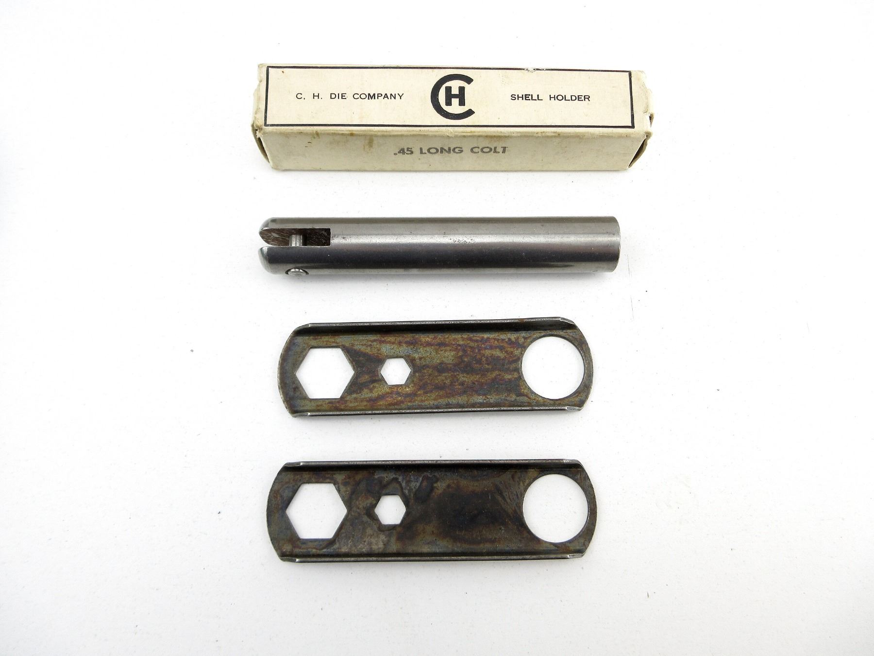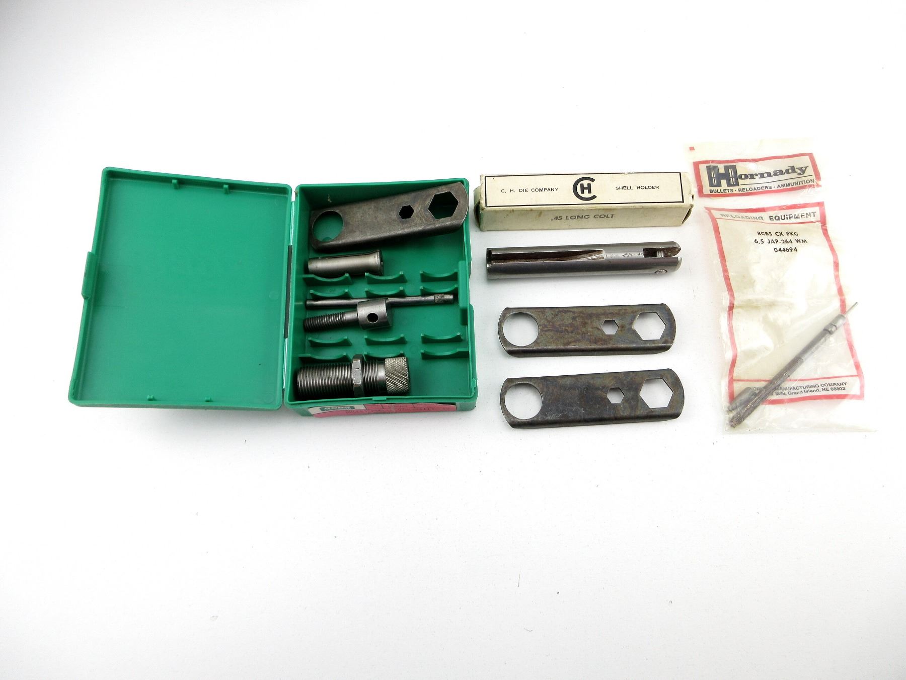 LOT INCLUDES; (1) RCBS BULLET PULLER WITH 6MM COLLET & WRENCH, (2) WRENCHES, (1) CH .45 LONG COLT SHELL HOLDER & (1) HORNADY 6.5 JAP / .264 DECAPPING ROD. SEE PHOTOS.