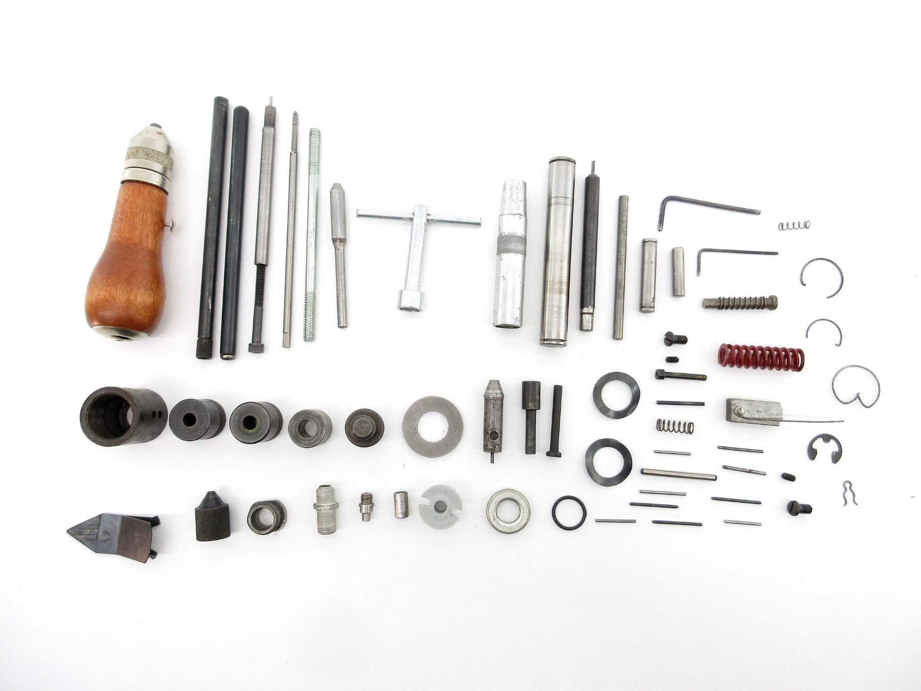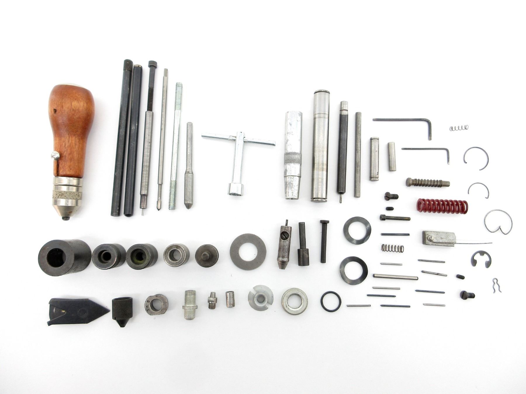 APPROX. (60) PIECES, INCLUDES; ASSORTED SIZED BUSHINGS, DECAPPING RODS, DECAPPING PINS, DEBURRING TOOL, VARIOUS SPRINGS, VARIOUS PINS, VARIOUS SCREWS, FUNNEL, WRENCH, ALLEN KEYS, ETC. SEE PHOTOS.