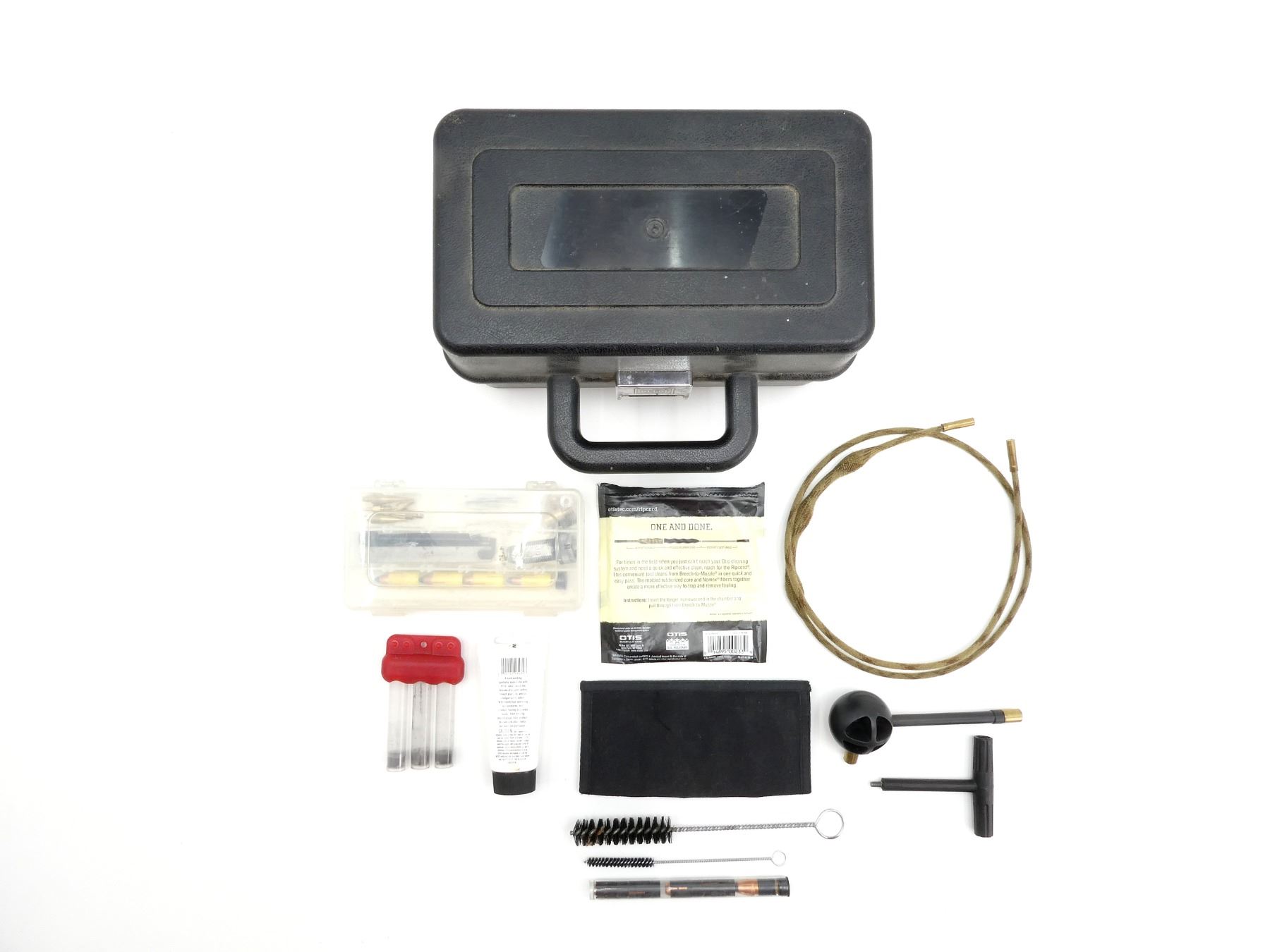 LOT INCLUDES; (2) WIRE BRUSHES, VARIOUS SIZES, (5) BULLET JAGS, (1) BREECH PLUG, (1) BREECH PLUG WRENCH, (1) DECAPPER, (1) BULLET STARTER, (1) RAM ROD EXTENSION, (1) .50 CAL MUZZLELOADER PULL-THRU, (9) .50 CAL SABOTS, (1) BLACK NYLON SHELL HOLDER, HOLDS 6 SHELLS, BELT LOOP, (1) MTM BLACK PLASTIC SHELL CONTAINER, HOLDS 100 SHELLS, FITS 12 G. SHELLS, APPROX. 11.5" X 9" X 7", ETC. SEE PHOTOS.