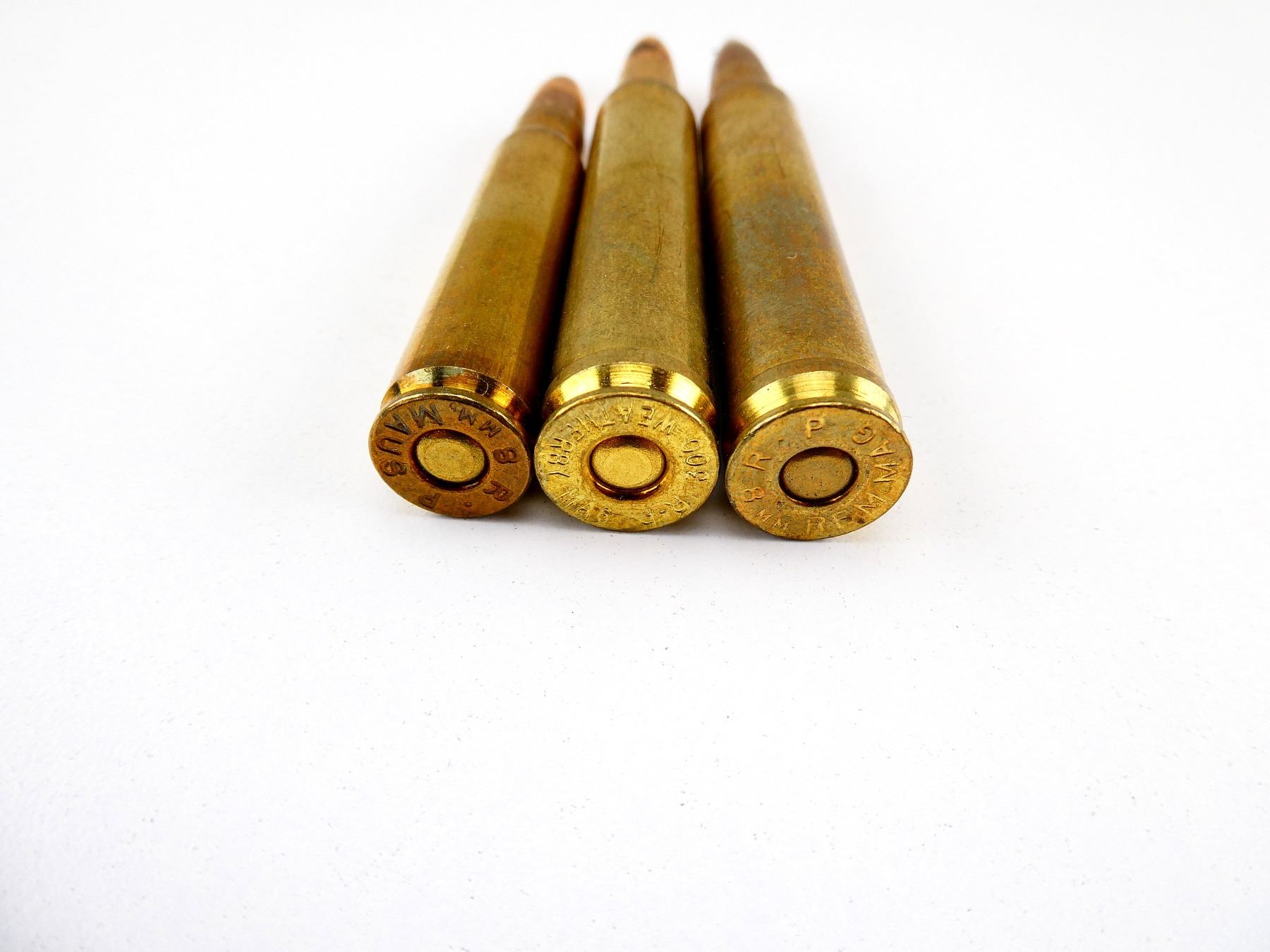 LOT INCLUDES; APPROX. (32) RNDS, ASSORTED CALIBERS INCLUDING; .300 WEATHERBY MAG, 9MM REM MAG, 8MM MAUSER, ETC., (14) NON-PRIMED BRASS CASES.