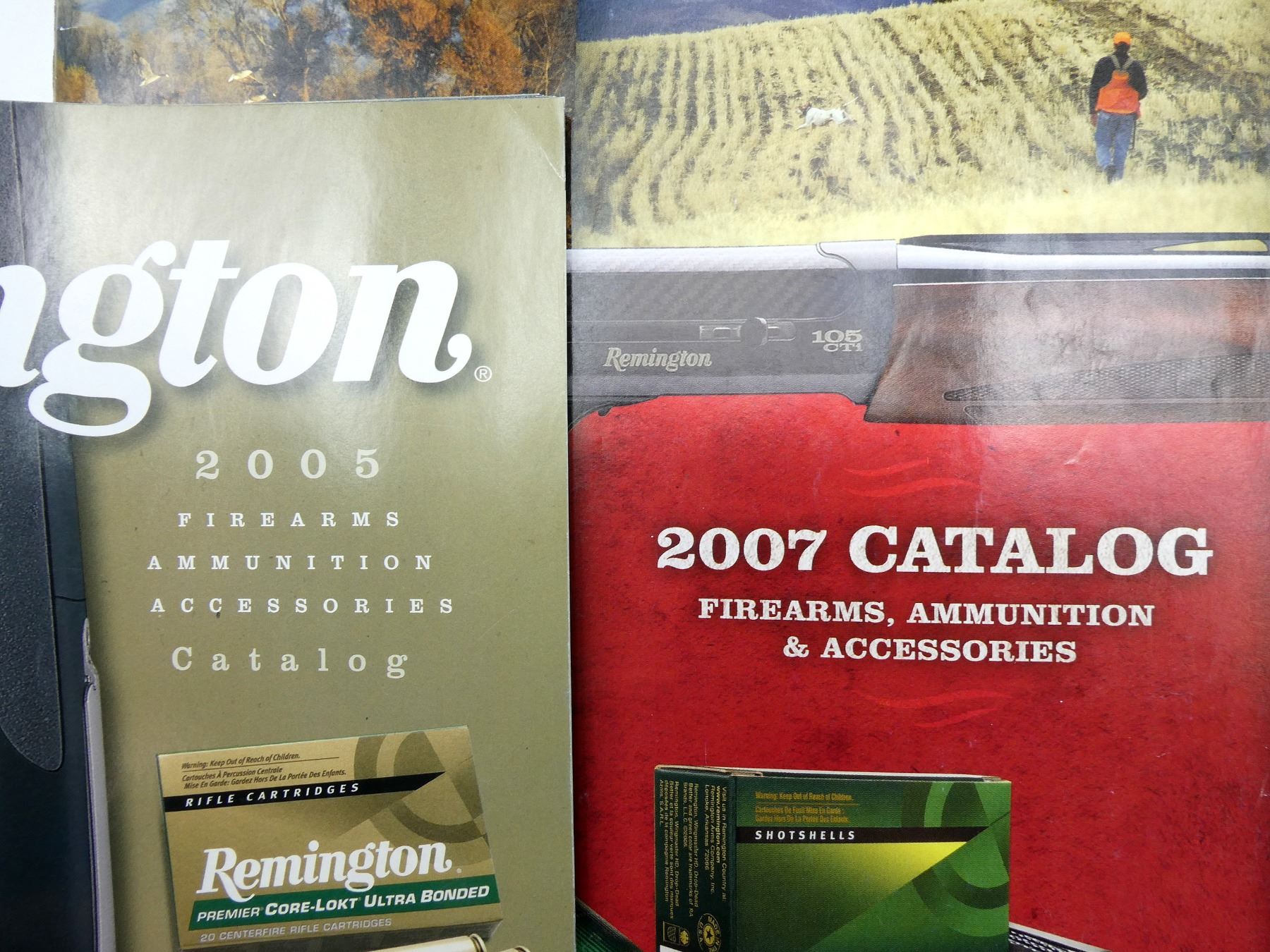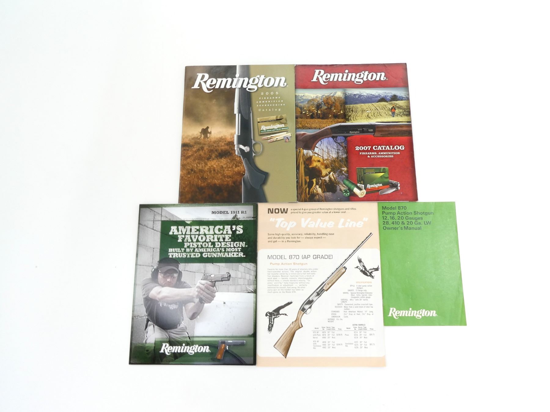 SOFT COVERS, LOT INCLUDES; (1) "REMINGTON 2007 CATALOG" CATALOGUE, COPYRIGHT 2007, (1) "REMINGTON" BROCHURE, COPYRIGHT 2011, (1) "REMINGTON MODEL 870 PUMP ACTION SHOTGUN 12, 16, 20 GUAGES 28, 410 & 20 GA. LW OWNER'S MANUAL" MANUAL, (1) "REMINGTON" BROCHURE & (1) "REMINGTON 2005 FIREARMS, AMMUNITION, ACCESSORIES CATALOG" CATALOGUE, COPYRIGHT 2005. SEE PHOTOS.
