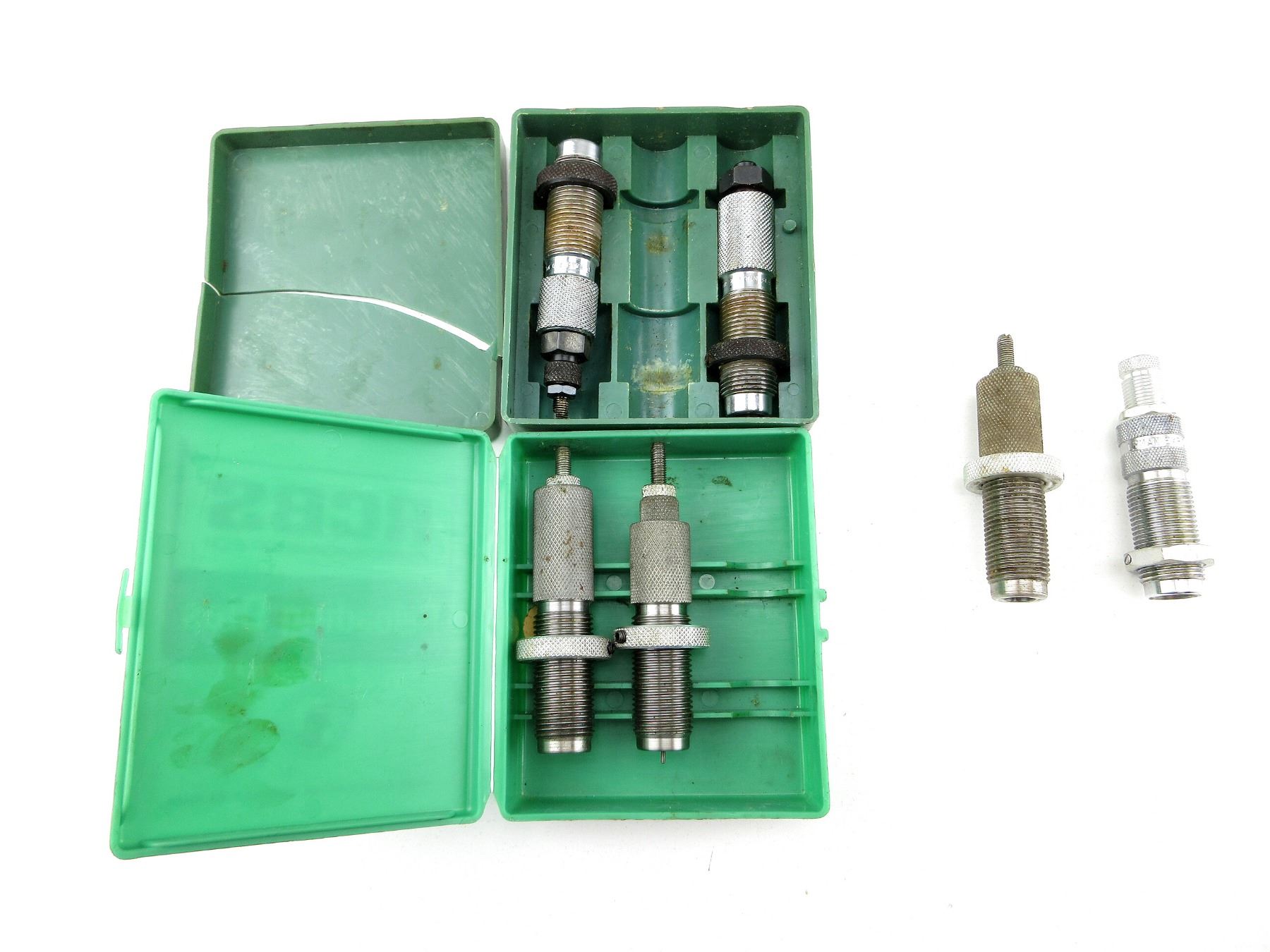 LOT INCLUDES; (1) BAIR .270 WIN 2-PIECE RELOADING DIES, (1) RCBS .30-06 2-PIECE RELOADING DIES (1) RCBS .30-30 1-PIECE RELOADING DIE & (1) LYMAN M-1 RELOADING DIE. SEE PHOTOS.