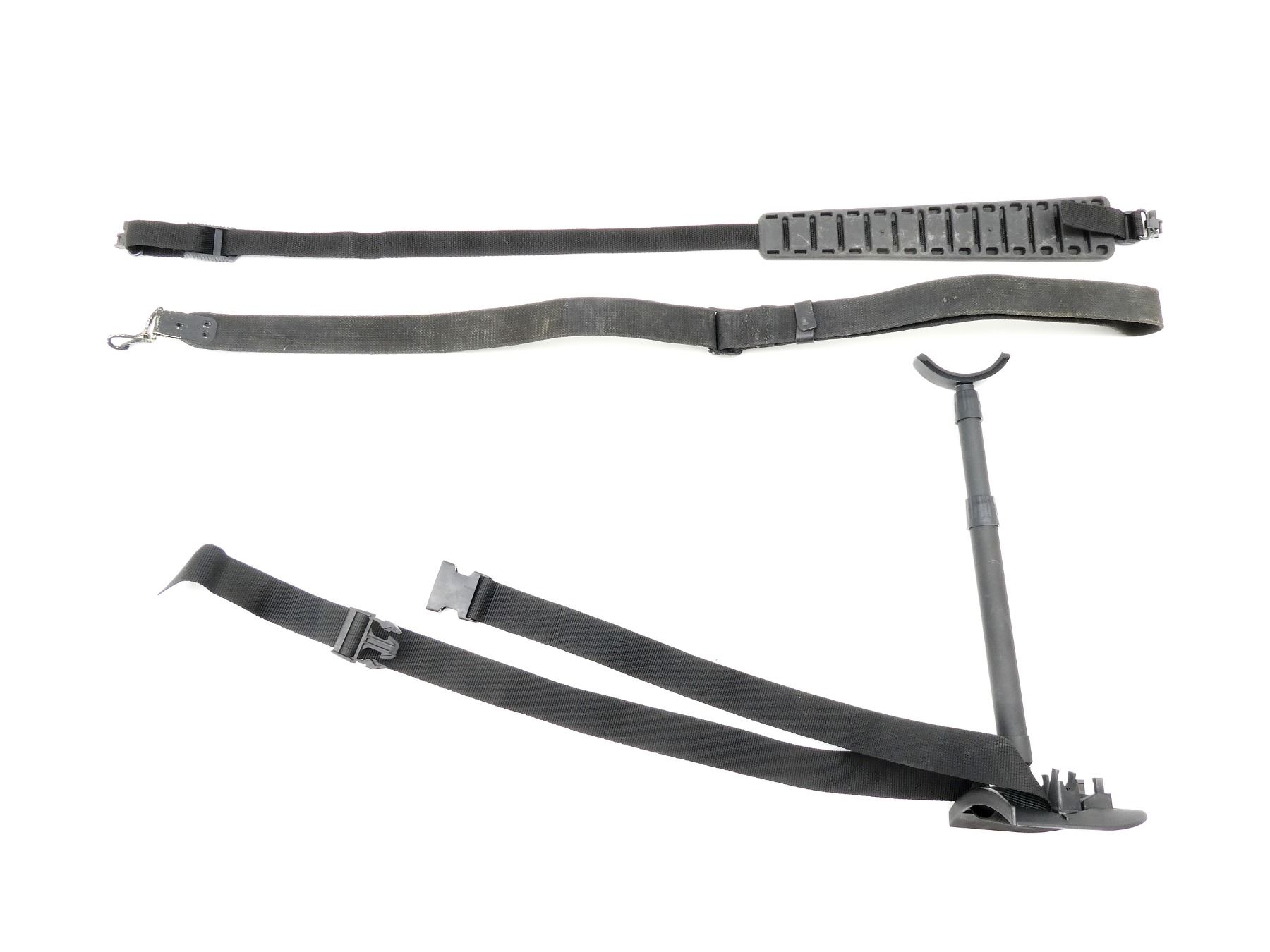 LOT INCLUDES; (2) BLACK RIFLE SLINGS, VARIOUS MAKERS INCLUDING QUAKE INC. & (1) "HIP STICK". SEE PHOTOS.