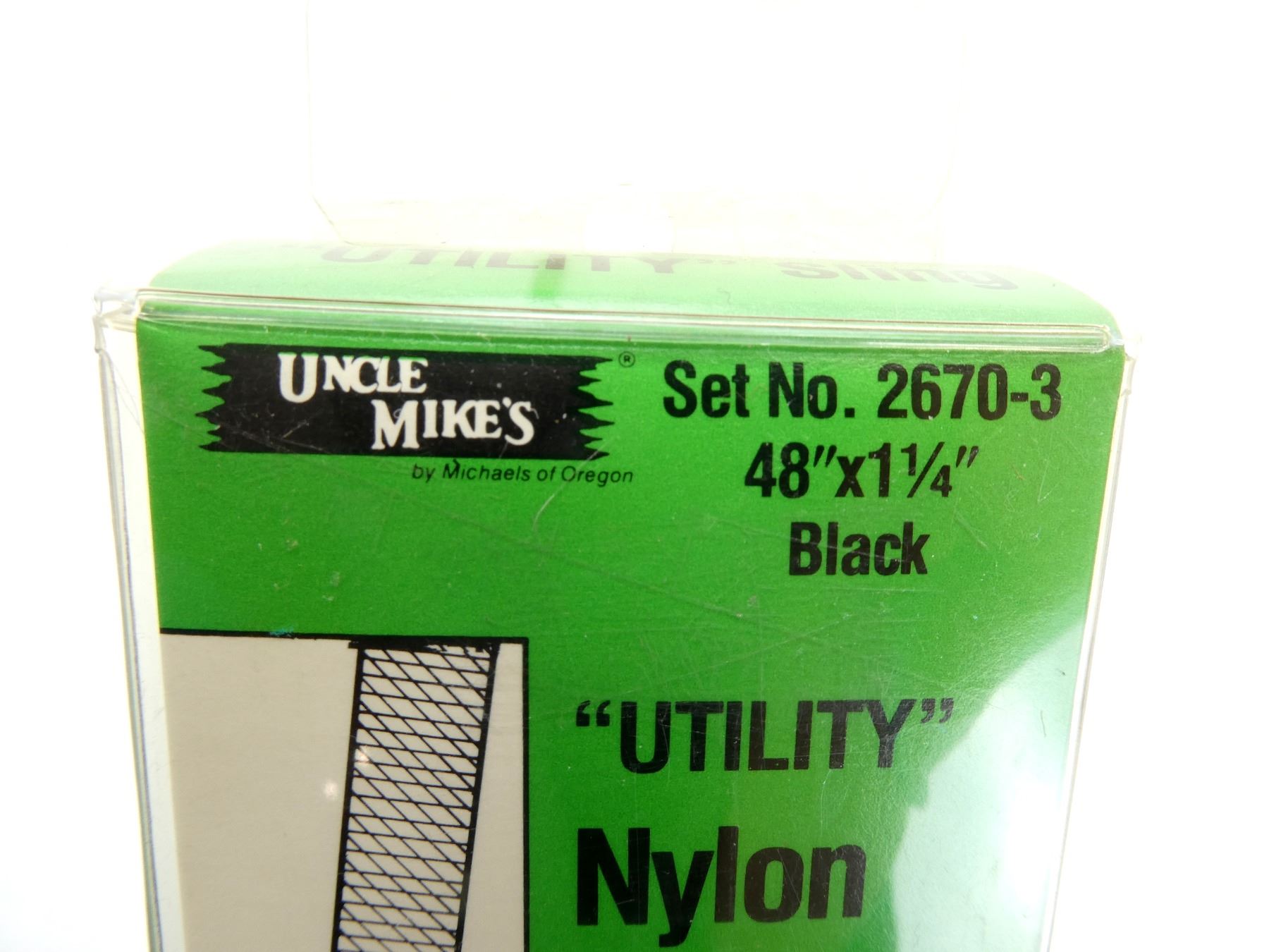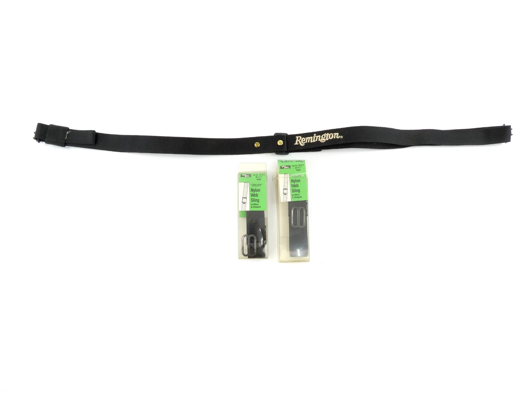 LOT INCLUDES; (2) UNCLE MIKE'S BLACK NYLON WEB SLING FOR RIFLES & SHOTGUNS, OAL APPROX. 48", APPEAR NOS IN ORIGINAL PACKAGING & (1) REMINGTON BLACK NYLON SLING, WITH SWIVELS, OAL APPROX. 38", ADJUSTABLE. SEE PHOTOS.