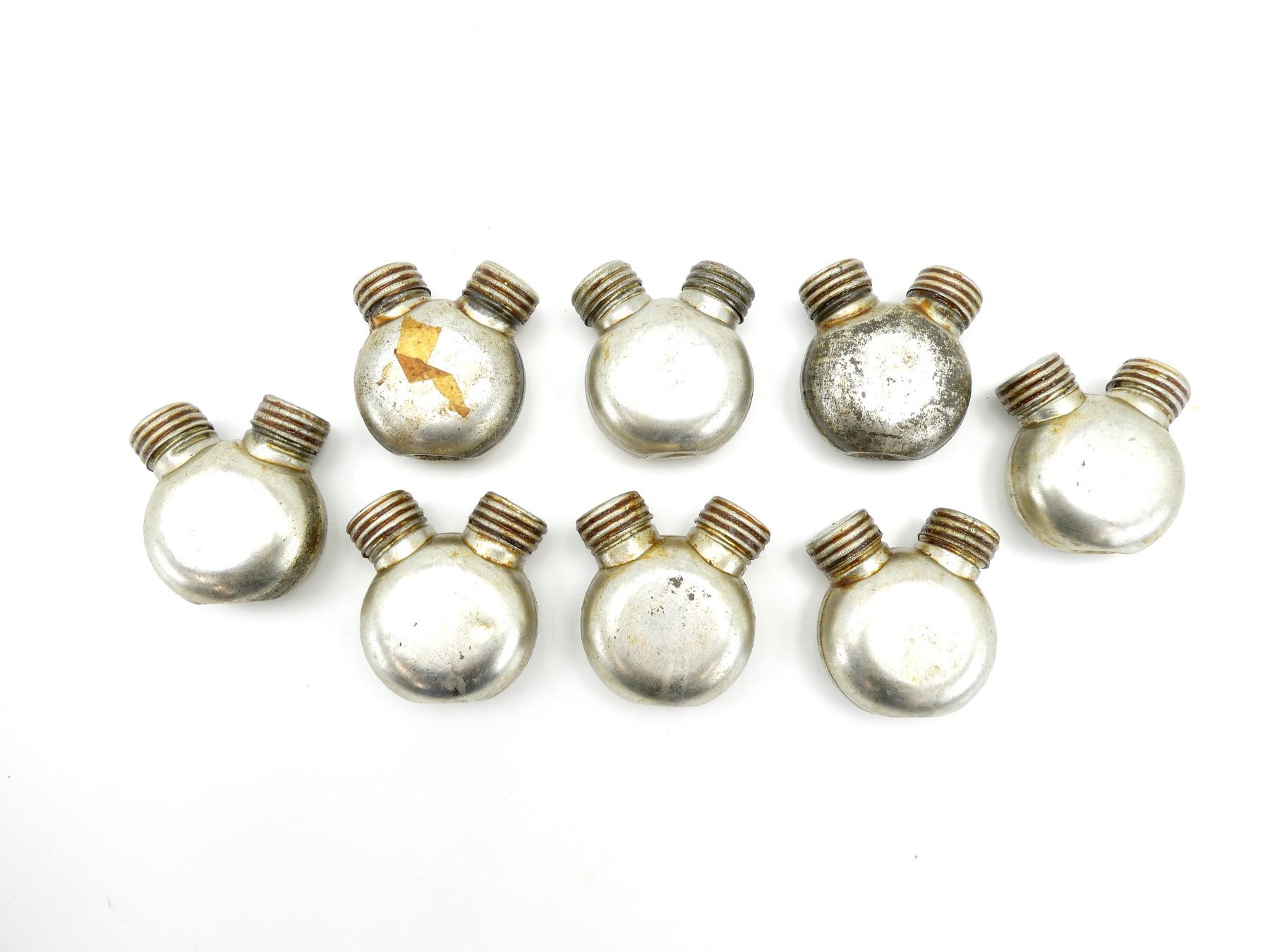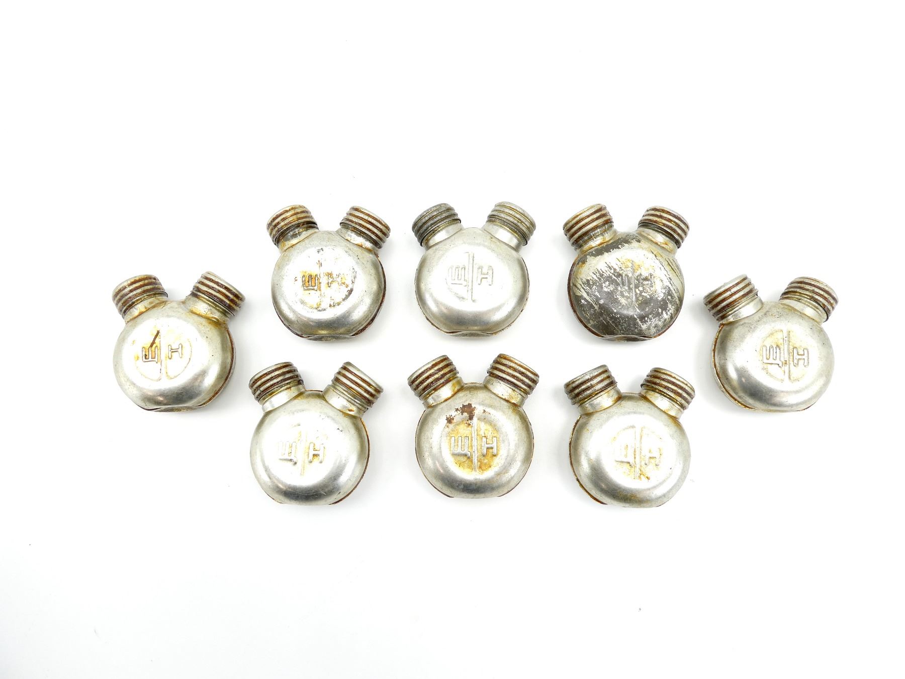 LOT INCLUDES; (8) STEEL DOUBLE-SPOUTED OILERS, VARIOUS MARKINGS, COVERED IN GREASE. SEE PHOTOS.