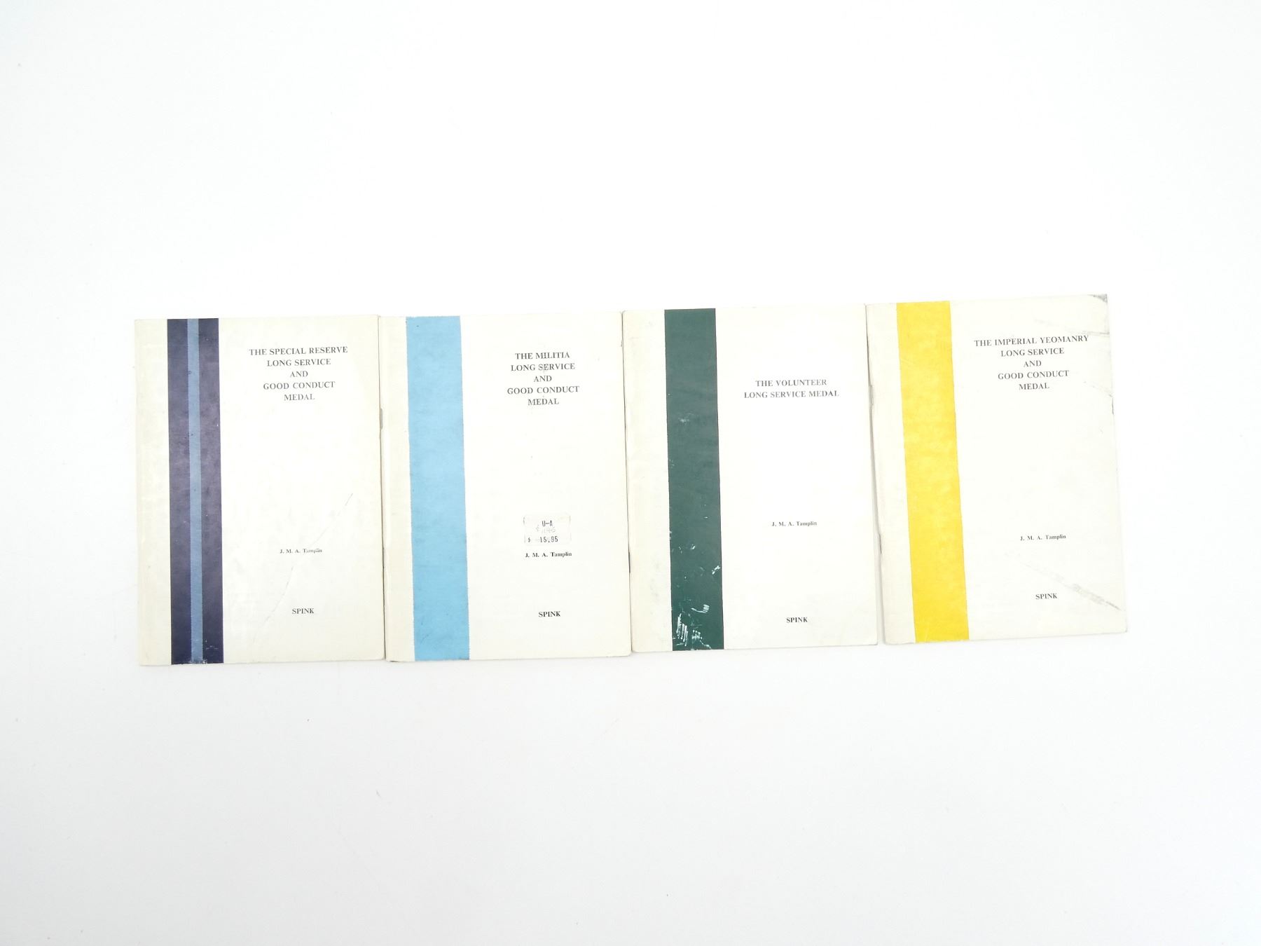SOFT COVERS, LOT INCLUDES; (1) "THE VOLUNTEER LONG SERVICE MEDAL" BOOKLET BY J.M.A. TAMPLIN, COPYRIGHT 1980, (1) "THE SPECIAL RESERVE LONG SERVICE AND GOOD CONDUCT MEDAL" BOOKLET BY J.M.A. TAMPLIN, COPYRIGHT 1979, (1) "THE MILITIA LONG SERVICE AND GOOD CONDUCT MEDAL" BOOKLET BY J.M.A. TAMPLIN, COPYRIGHT 1979 & (1) "THE IMPERIAL YEOMANRY LONG SERVICE AND GOOD CONDUCT MEDAL" BOOKLET BY J.M.A. TAMPLIN, COPYRIGHT 1978. SEE PHOTOS.