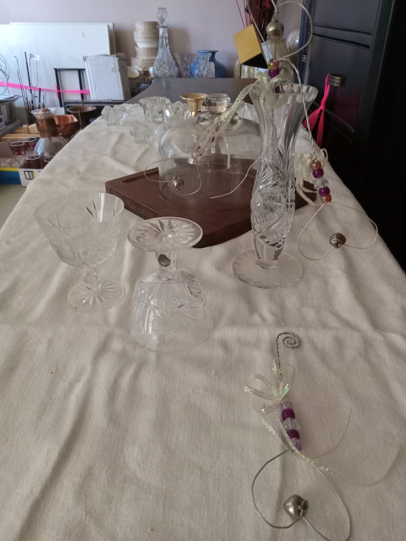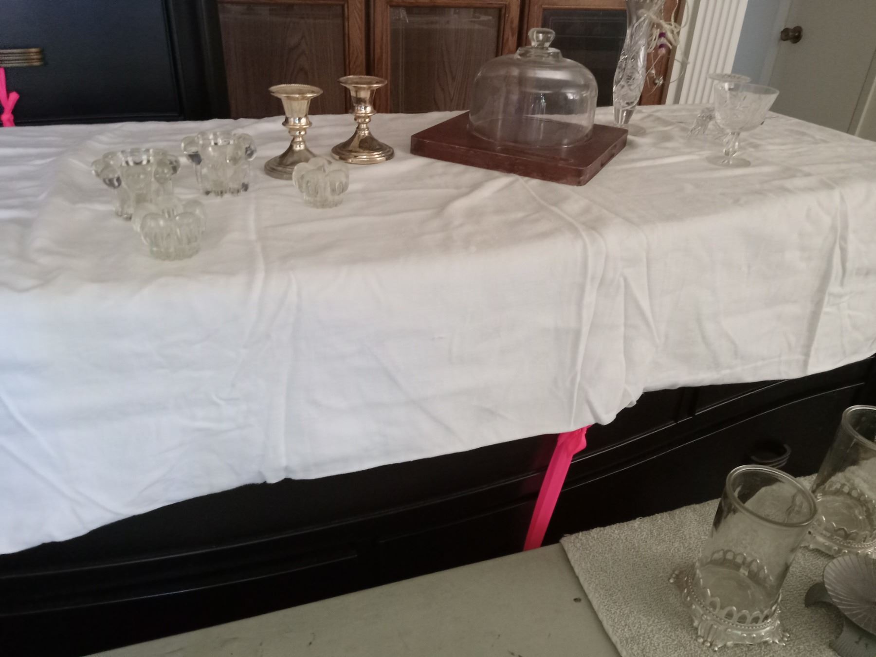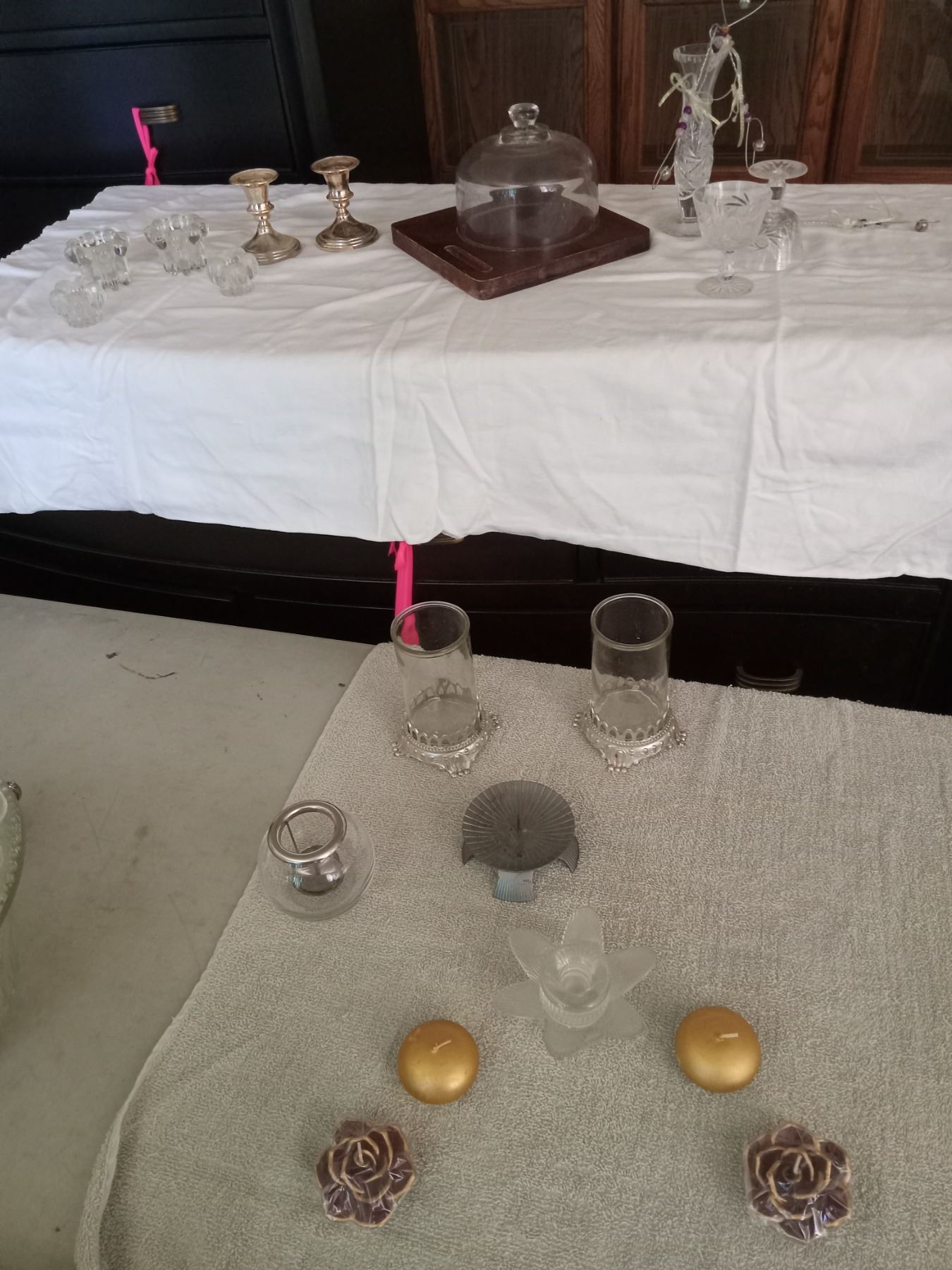 ASSORTED SERVING, CRYSTAL & SILVER CANDLEHOLDER(S).
