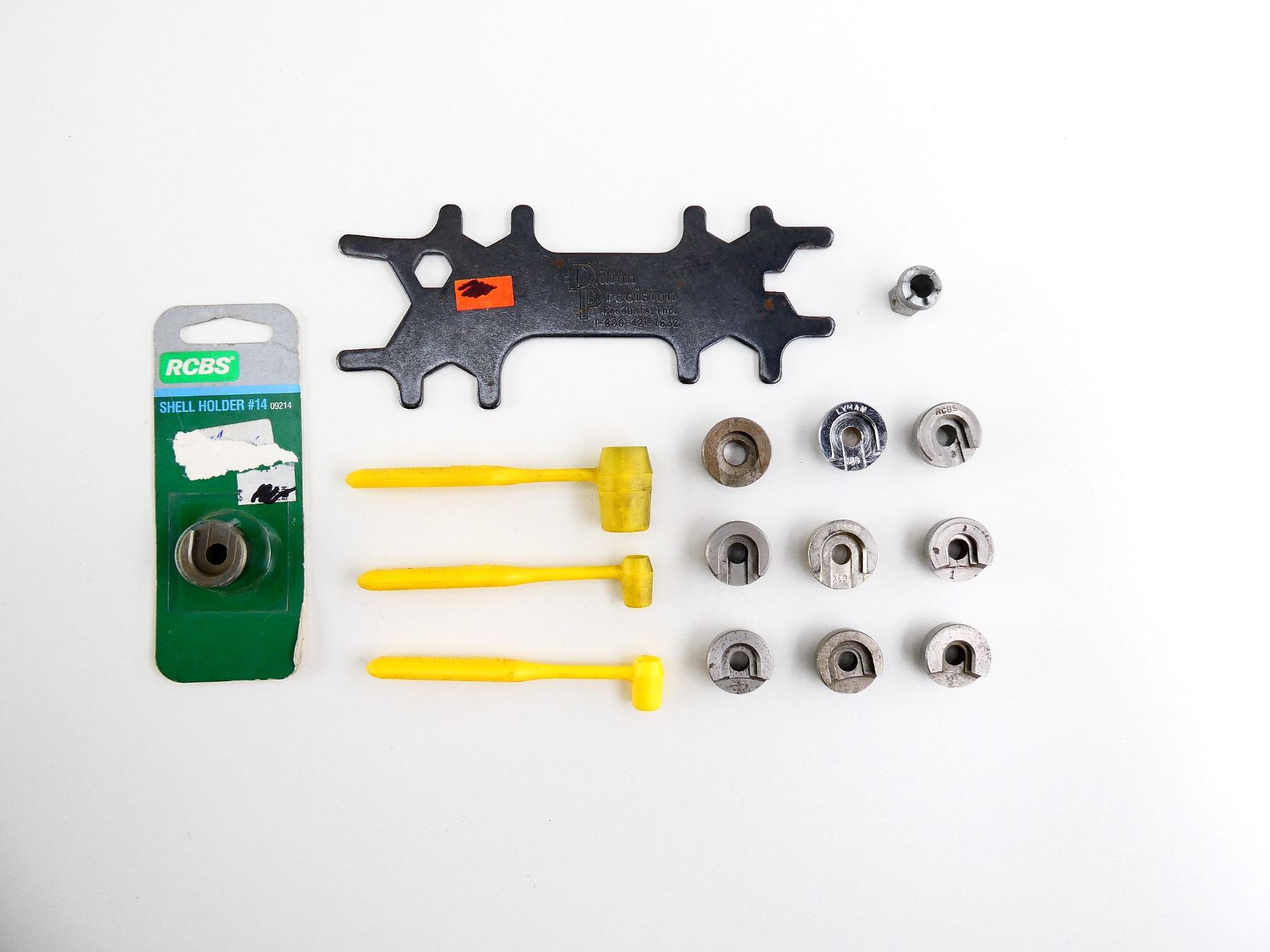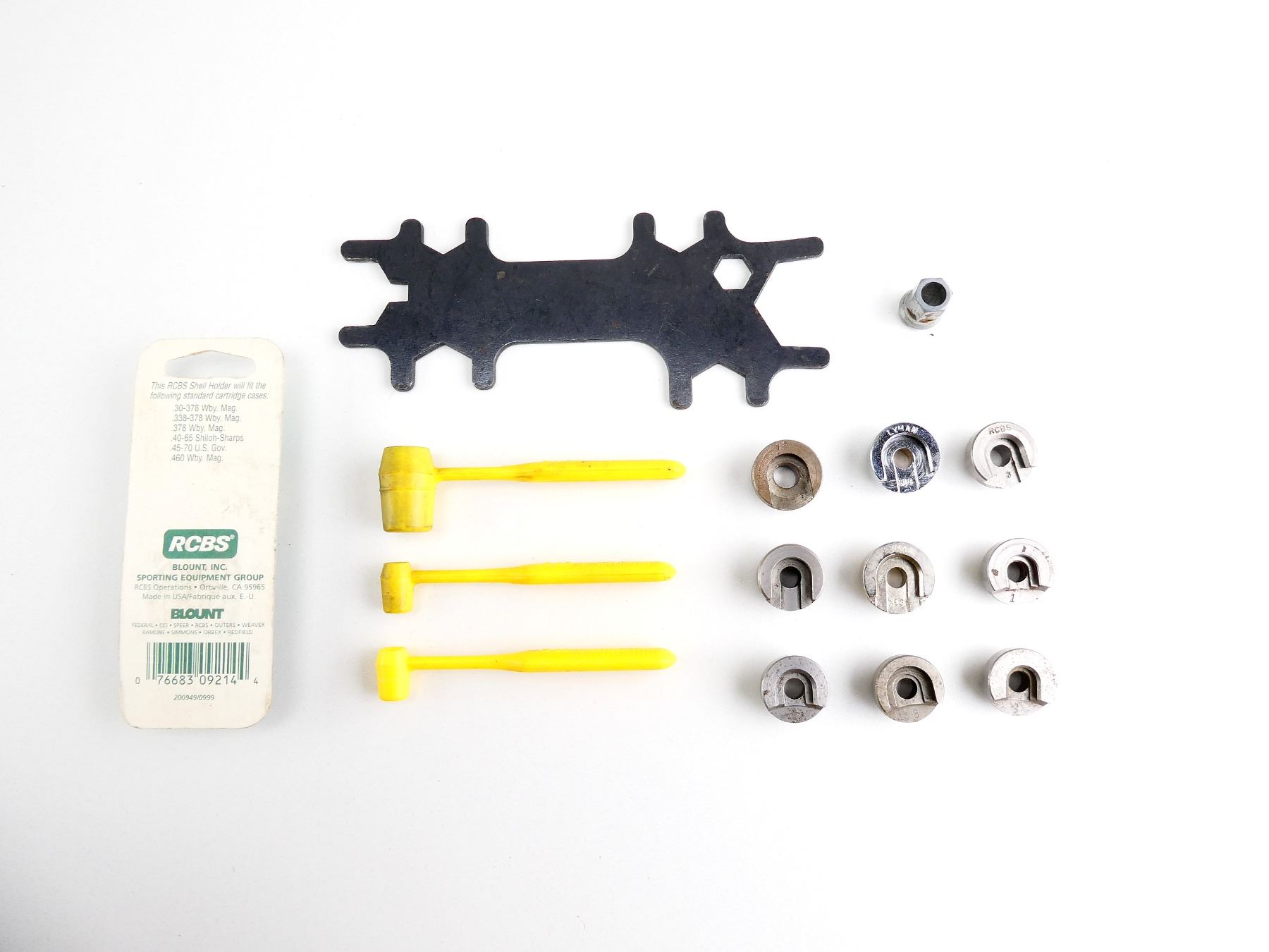 LOT INCLUDES; APPROX. (10) ASSORTED SHELL HOLDERS INCLUDING; #1, #2, #3, (2) #6, #8, #X13, #14 (NOS IN SEALED PACKAGING), #15, #X18, #20, (1) DILLON PRESS TOOL, (3) ASSORTED PLASTIC MEASURE SCOOPS, ETC. SEE PHOTOS.