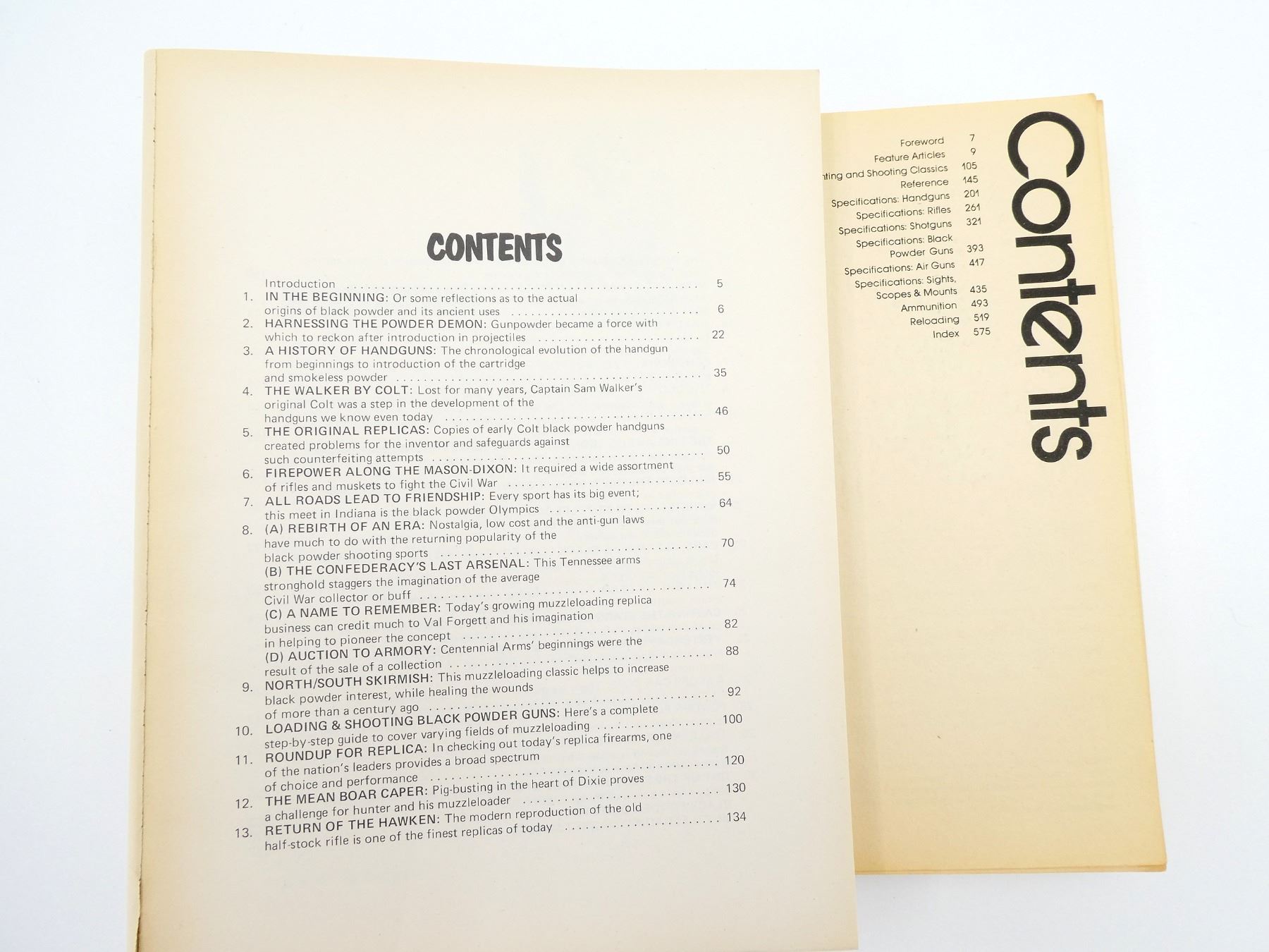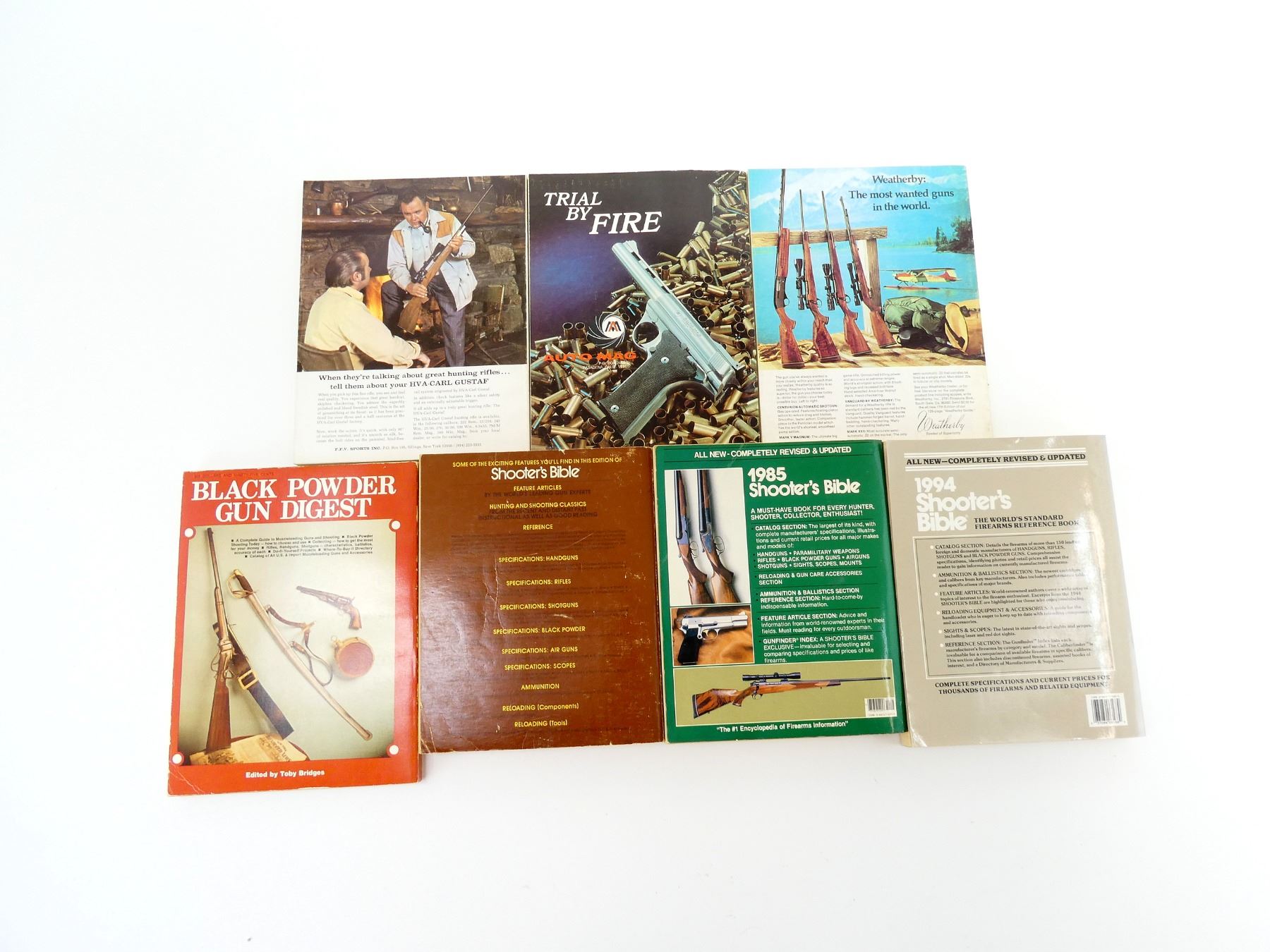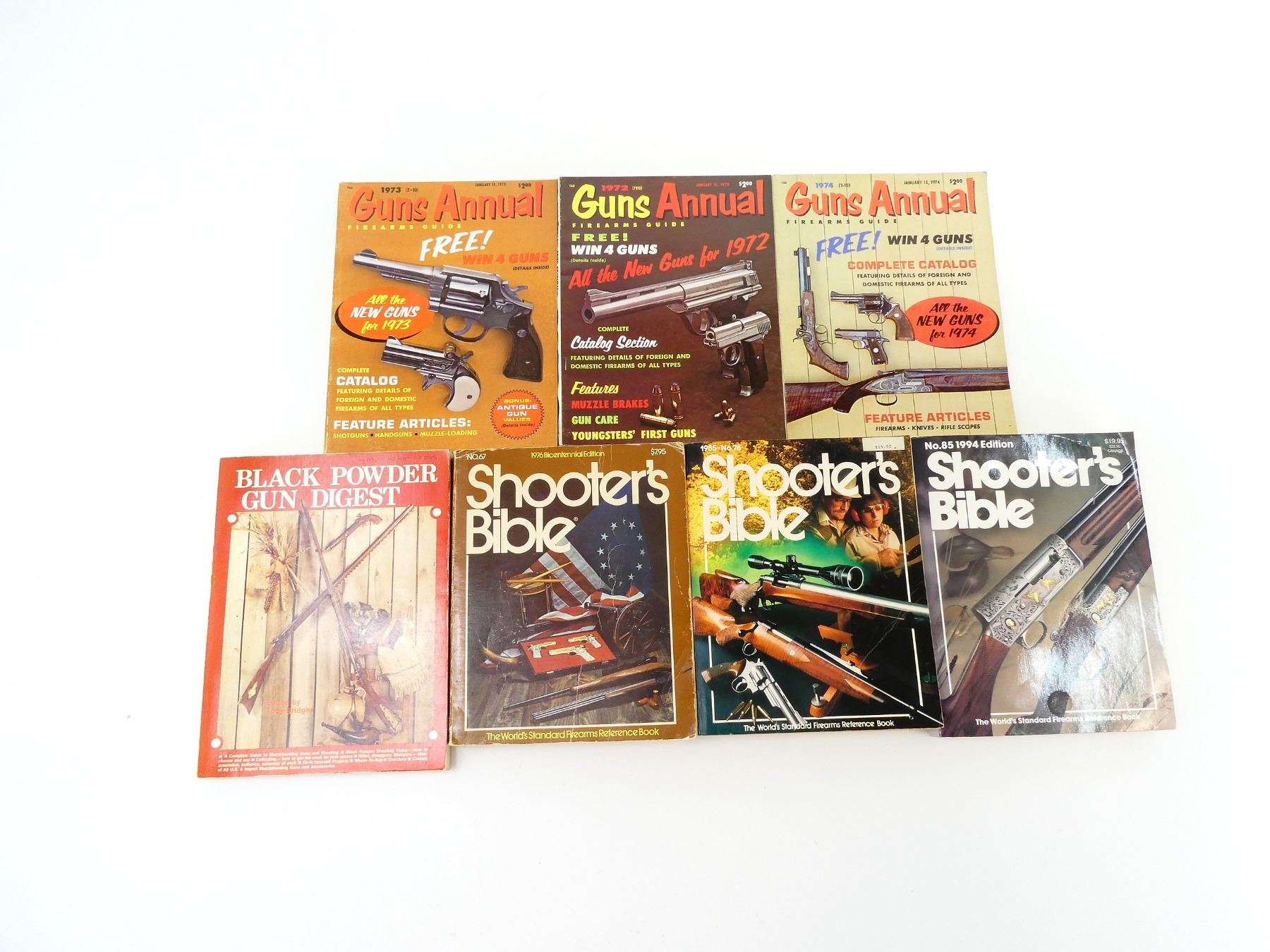SOFT COVERS, LOT INCLUDES; (3) "SHOOTER'S BIBLE" CATALOGUES FROM 1976 TO 1994, (3) "GUNS ANNUAL" CATALOGUES FROM 1972 TO 1974 & (1) "BLACK POWDER GUN DIGEST" BOOK EDITED BY TOBY BRIDGES, ISBN: 0-695-80360-3, SERIES NOT COMPLETE / SOME ISSUES MISSING / MAY CONTAIN DUPLICATES. SEE PHOTOS.