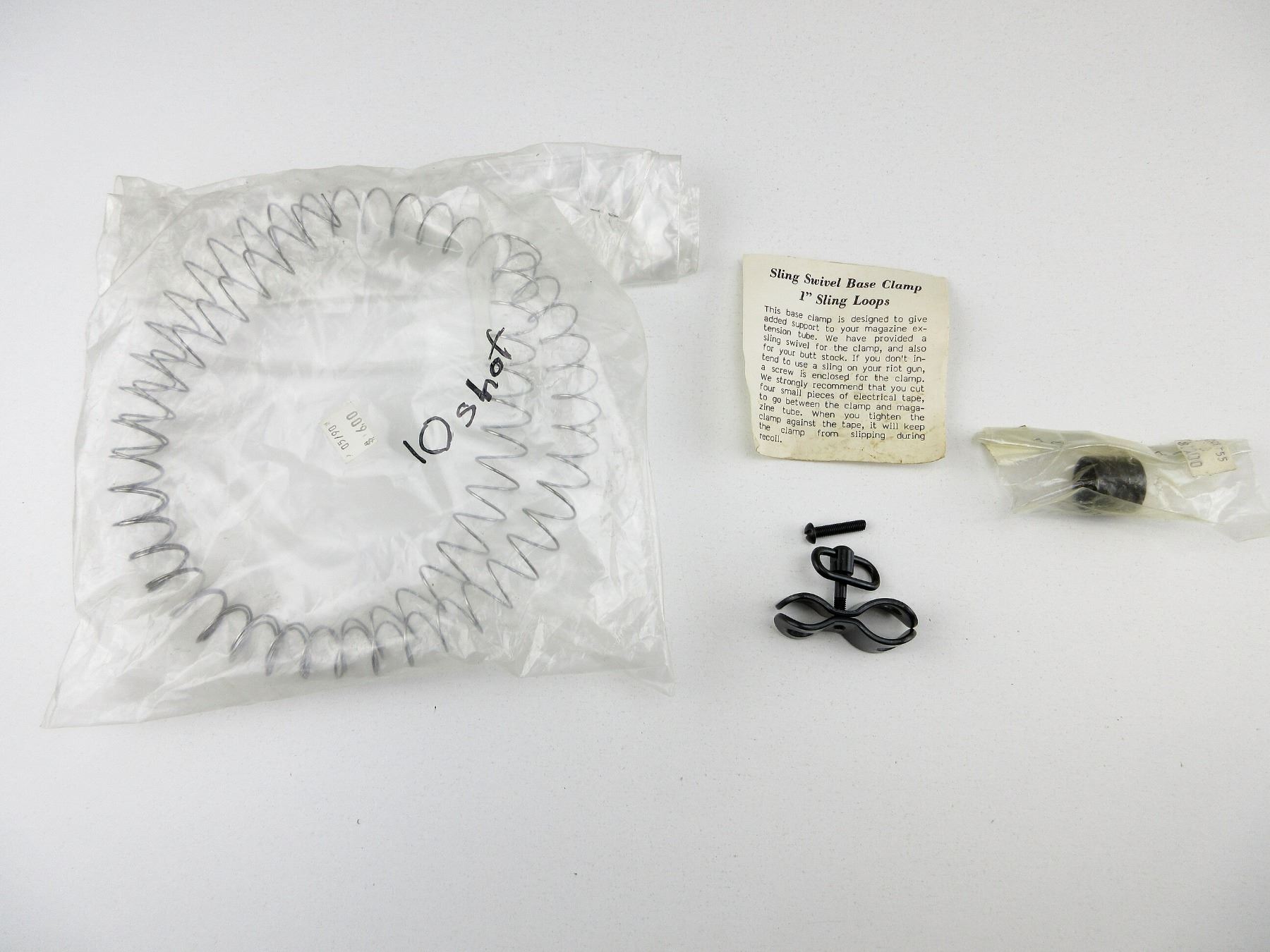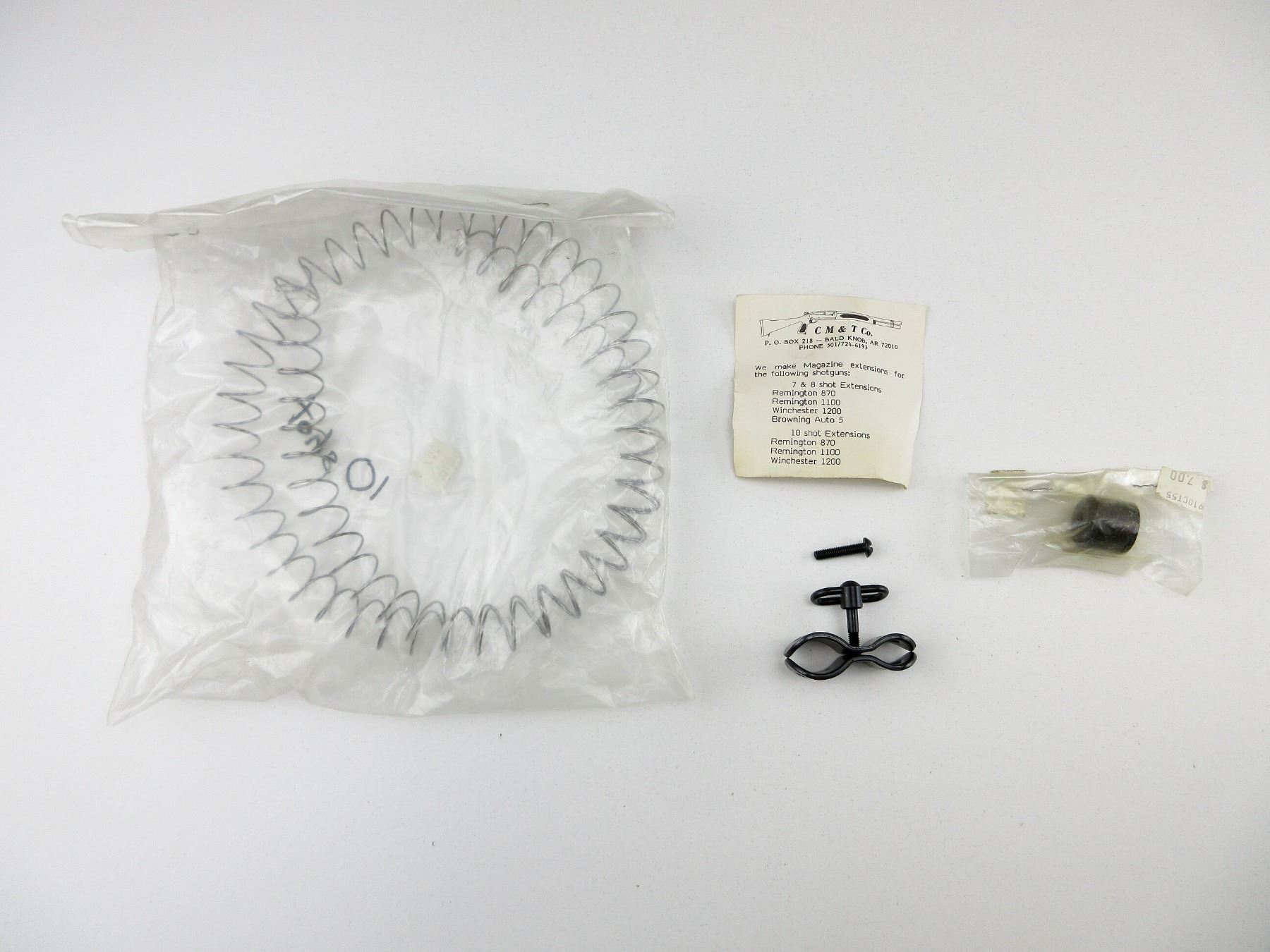 LOT INCLUDES; EXTENDED MAG SPRING, STEEL FOLLOWER, BARREL CLAMP WITH SWIVEL, ETC. MAY REQUIRE FITTING. SEE PHOTOS.