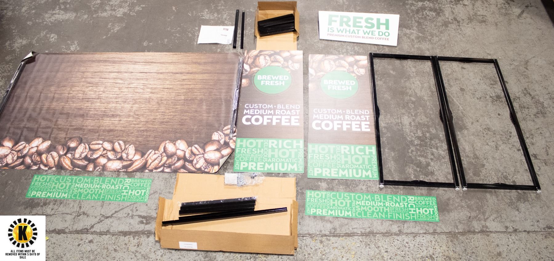 ASSORTED SIGNAGE W/ FRAMES AND MISC