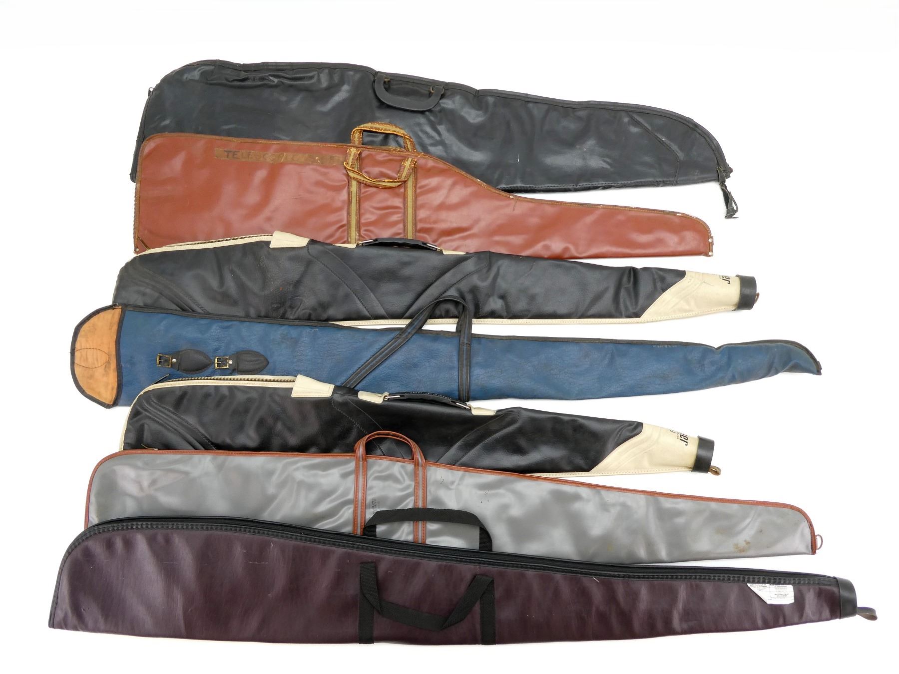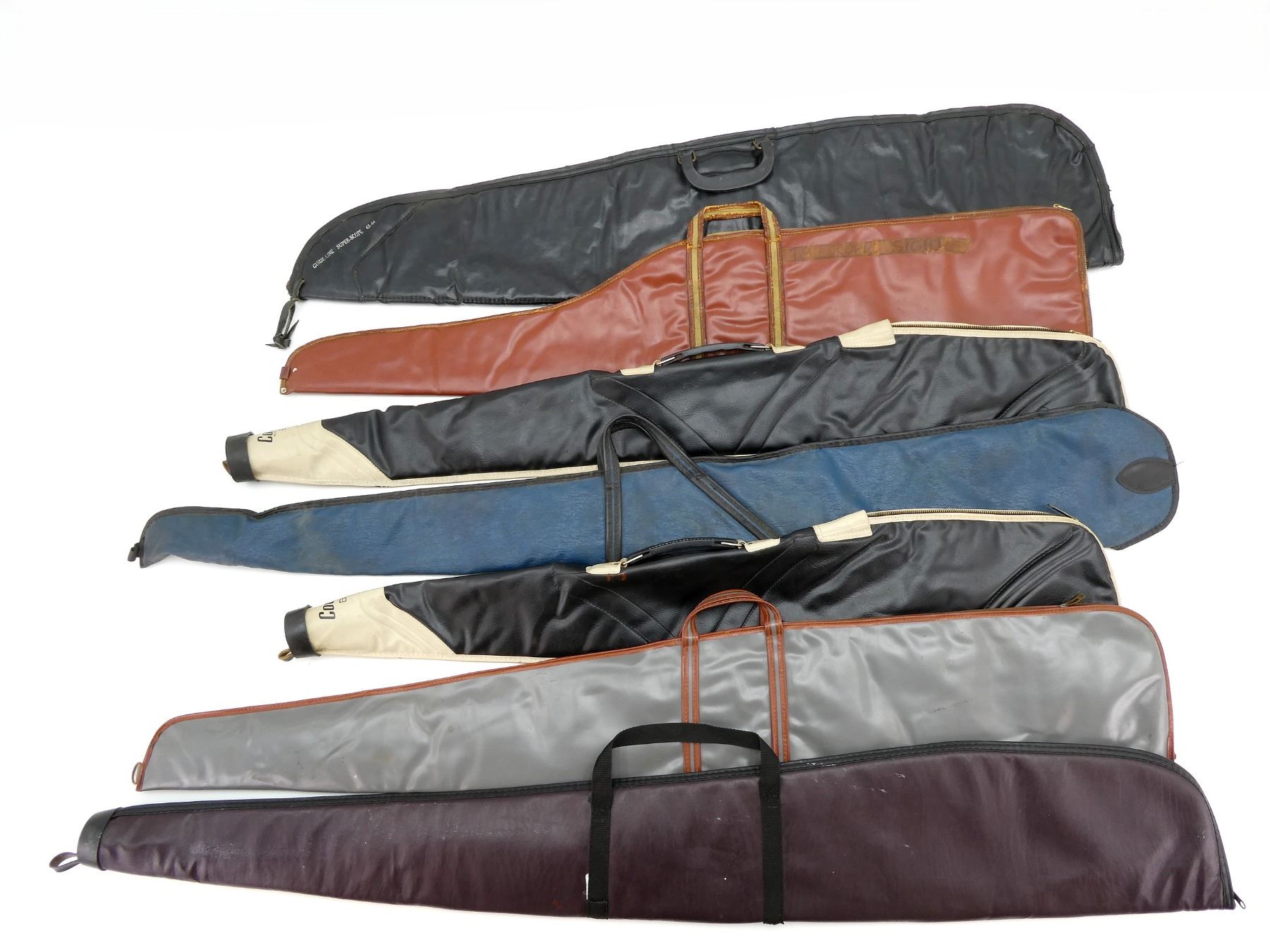 LOT INCLUDES; (6) SOFT PADDED GUN CASES, CARRY HANDLES, ZIPPERED, (1) SLIDE IN WITH A MISSING STRAP, APPROX. OAL 45"-53", SHOWS WEAR AND TEAR FROM USAGE, SEE PHOTOS.