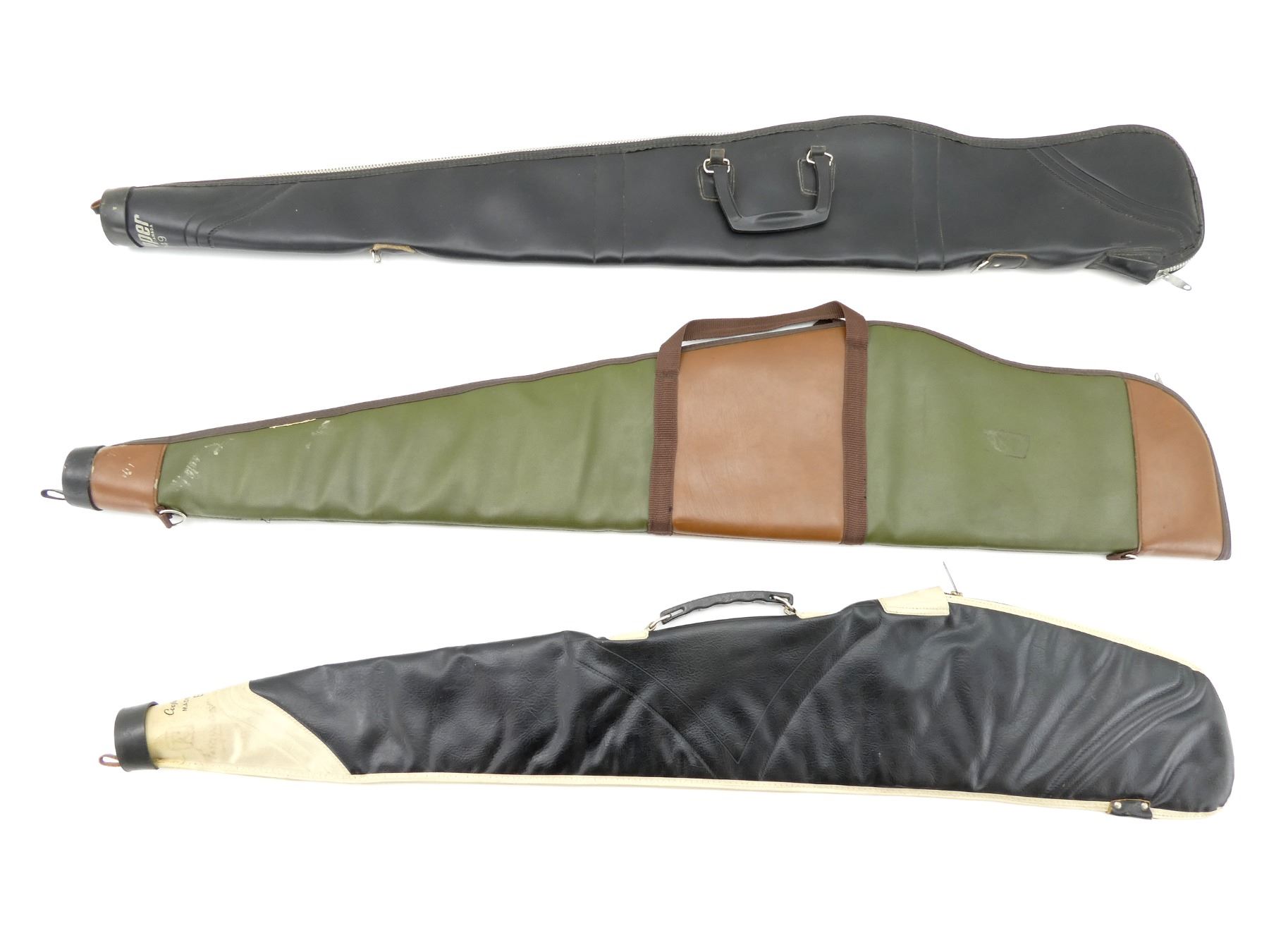 LOT INCLUDES; (3) SOFT PADDED GUN CASES, ZIPPERED, CARRY HANDLES, APPROX. OVERALL LENGTH 45"-48", SHOWS WEAR AND TEAR FROM USAGE, SEE PHOTOS.