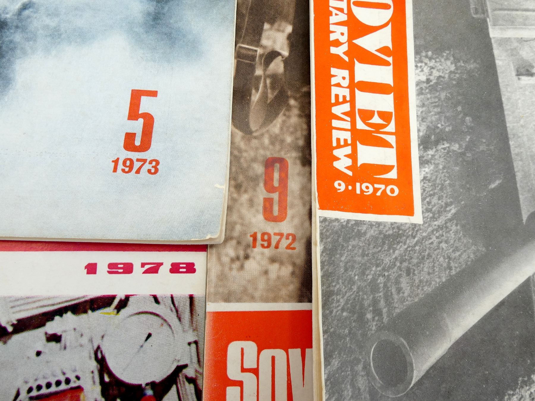 SOFT COVERS, LOT INCLUDES; (9) "SOVIET MILITARY REVIEW" BOOKS PUBLISHED BY KRASNAYA ZVEZDA PUBLISHING HOUSE, STARTING FROM AUGUST 1970 TO JUNE 1978, SERIES NOT COMPLETE / SOME ISSUES MISSING / MAY CONTAIN DUPLICATES. SEE PHOTOS.