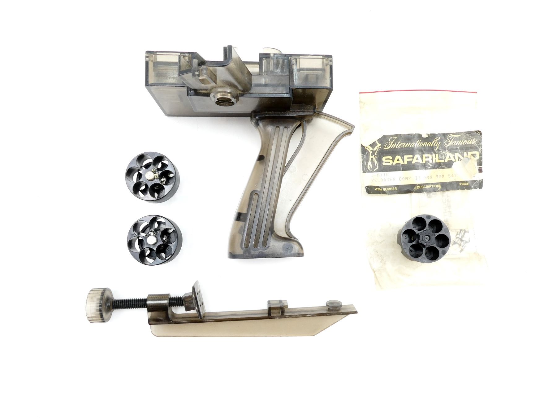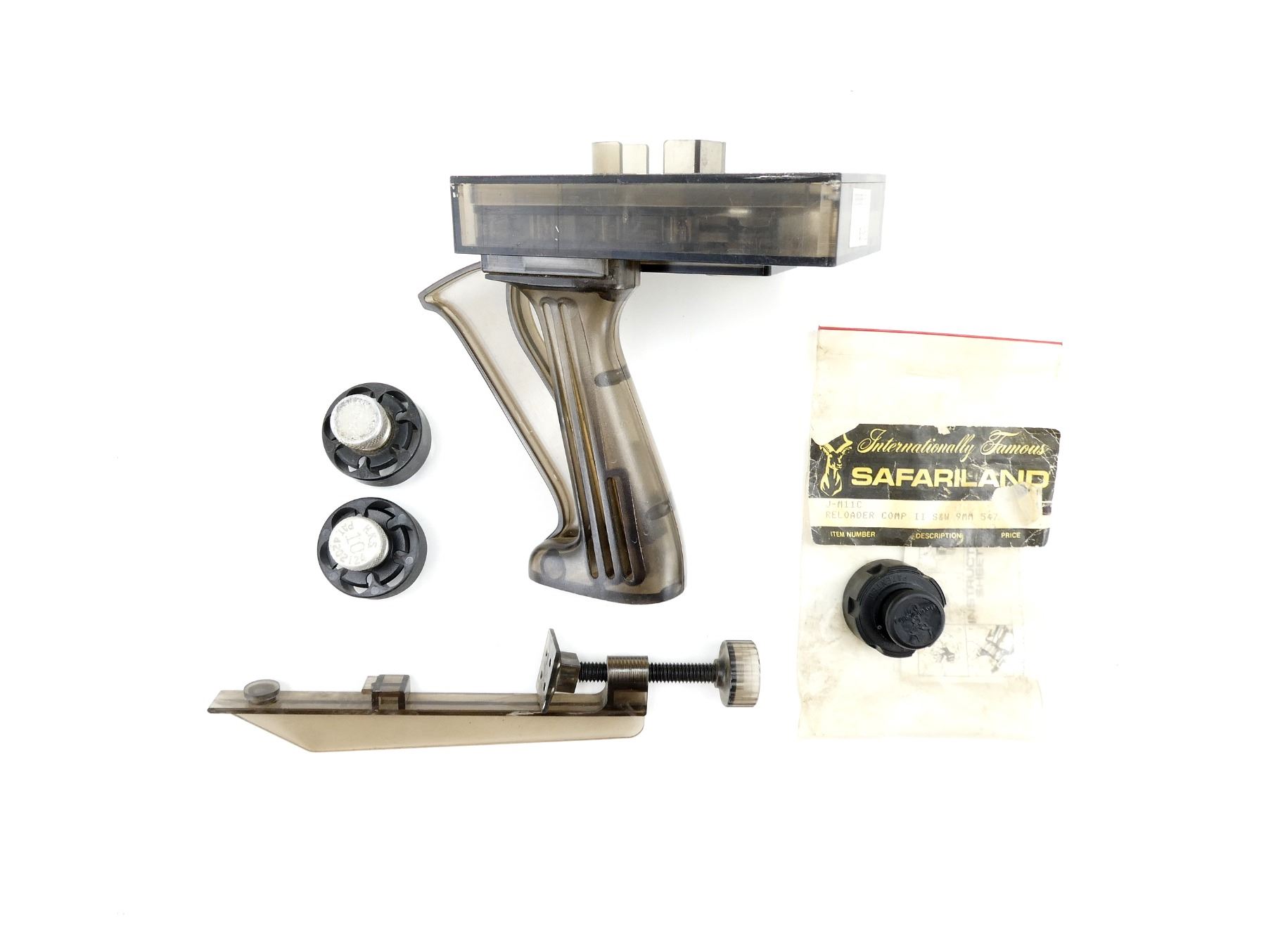 LOT INCLUDES; (1) SAFARILAND 9MM SPEED LOADER, (1) #10 .38 SPL / .357 MAG SPEED LOADER, (1) #10-A .38 SPL / .357 MAG SPEED LOADER, & (1) UNKNOWN RAMLINE MAG LOADER, POLYMER CONSTRUCTION. SEE PHOTOS.