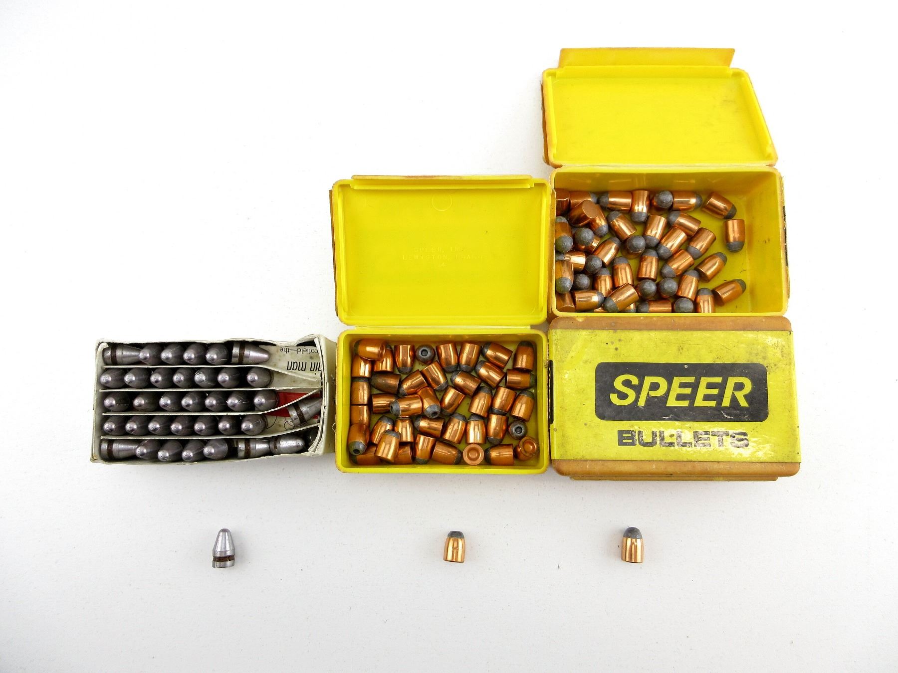 LOT INCLUDES; APPROX. 4 LBS BULLETS, APPROX. DIA .355", 100 GRNS (STATED ON BOX NOT CONFIRMED) JACKETED HP, 115 GRNS, (STATED ON BOX NOT CONFIRMED) RM & 125 GRNS (STATED ON BOXES NOT CONFIRMED) JACKETED HP.