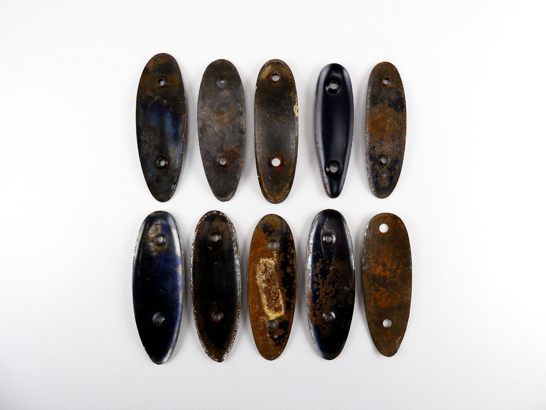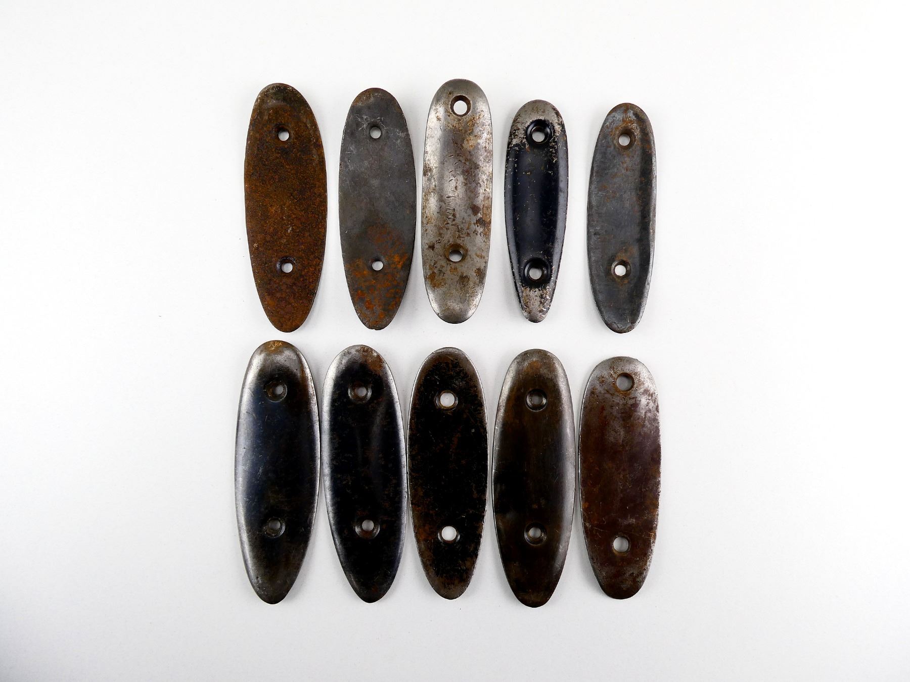 LOT INCLUDES; (10) ASSORTED STEEL BUTT PLATES, VARIOUS SIZES / MANUFACTURERS. MAY REQUIRE FITTING. SEE PHOTOS.