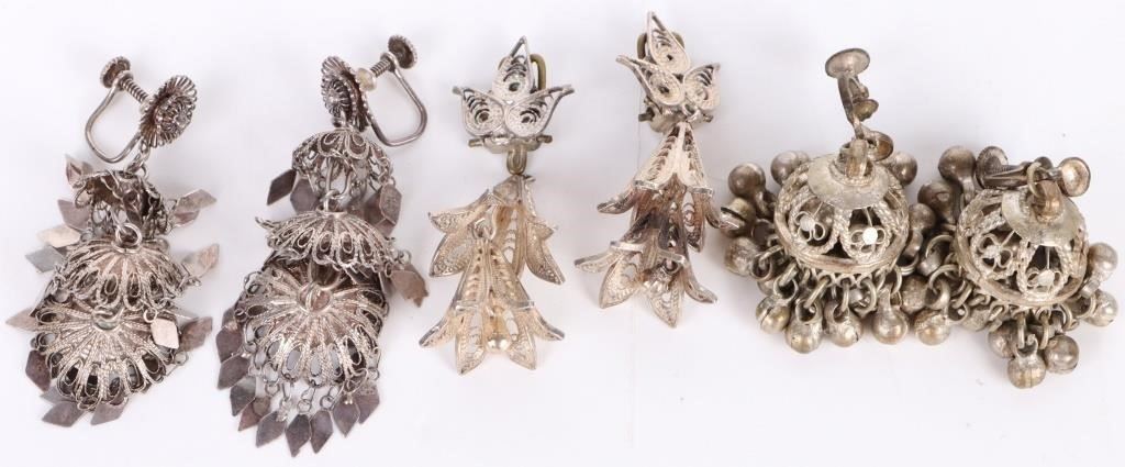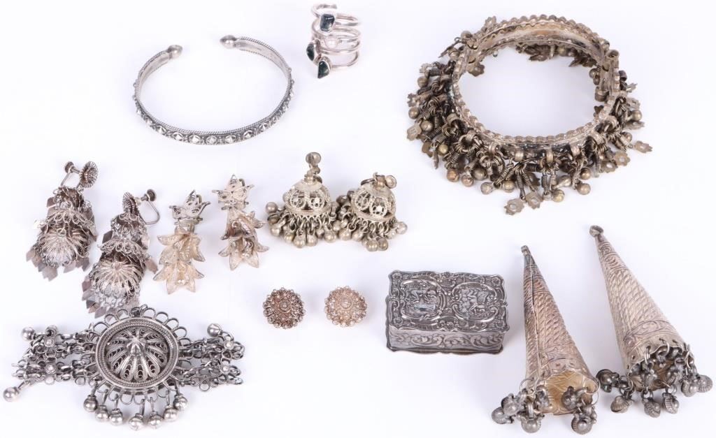 Assorted sterling silver filigree jewelry to include various beautiful filigree ladies earrings, bracelets, a ring and a small jewelry box.