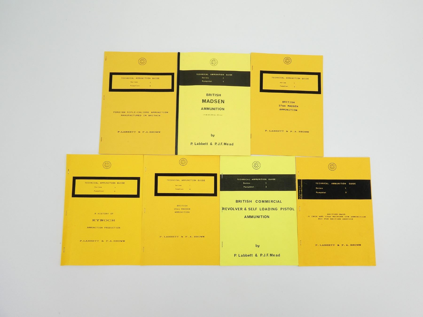 BY P. LABBETT, P.J.F. MEAD & F.A. BROWN, SOFT COVERS, LOT INCLUDES; (7) ASSORTED BOOKS OF "TECHNICAL AMMUNITION GUIDE" SERIES, STARTING AT SERIES 1, PAMPHLET 1 & ENDING WITH SERIES 1, PAMPHLET 7, SERIES MAY NOT BE COMPLETE. SEE PHOTOS.