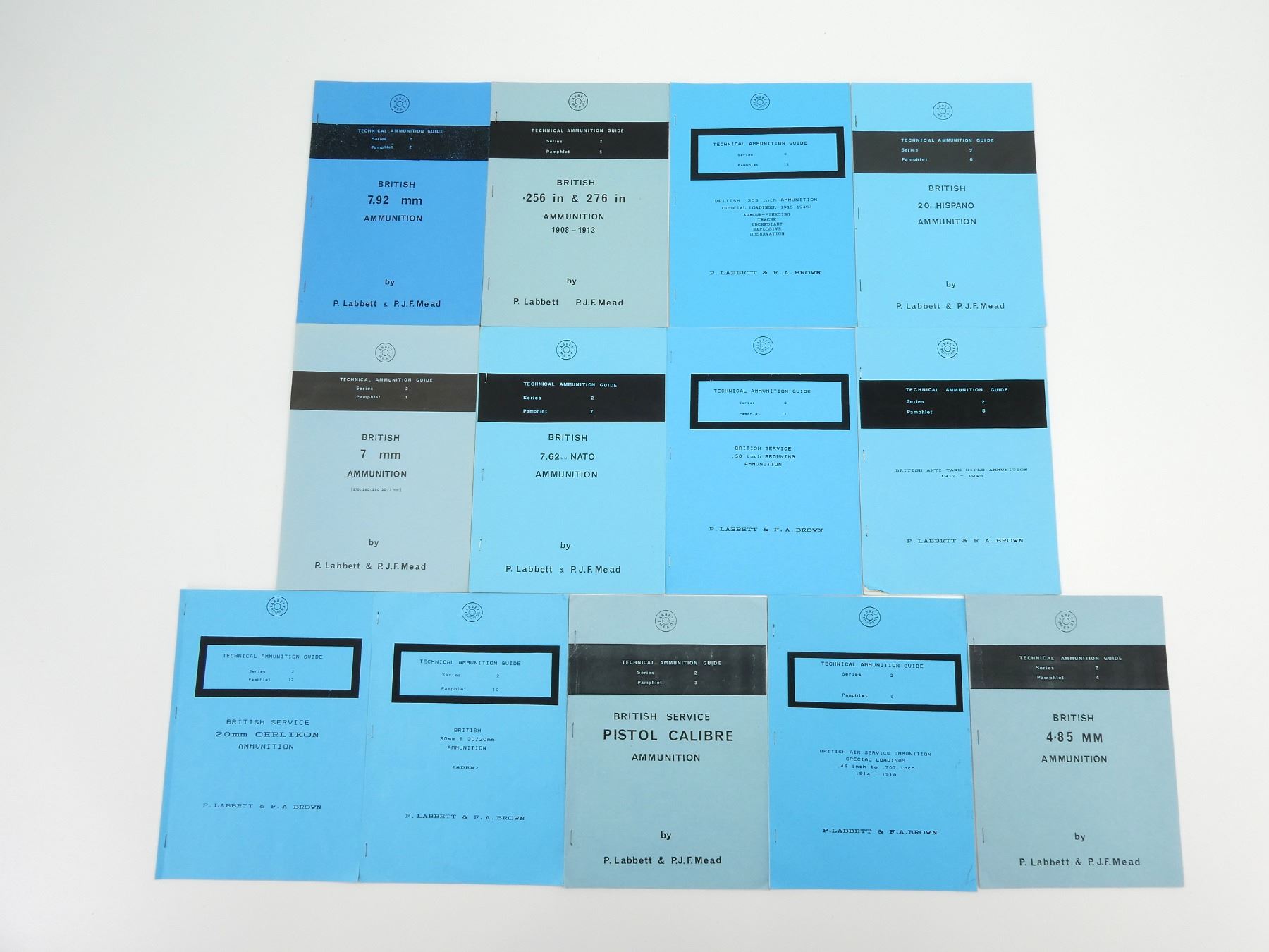 BY P. LABBETT, P.J.F. MEAD & F.A. BROWN, SOFT COVERS, LOT INCLUDES; (13) ASSORTED BOOKS OF "TECHNICAL AMMUNITION GUIDE" SERIES, STARTING AT SERIES 2, PAMPHLET 1 & ENDING WITH SERIES 2, PAMPHLET 13, SERIES MAY NOT BE COMPLETE. SEE PHOTOS.