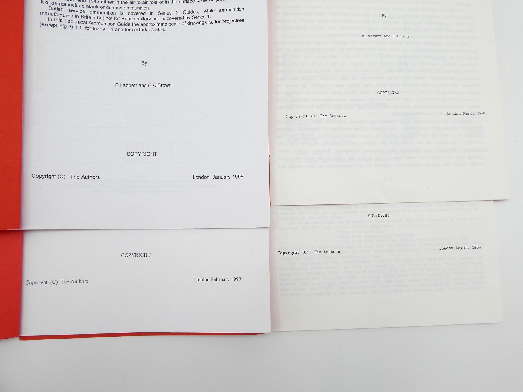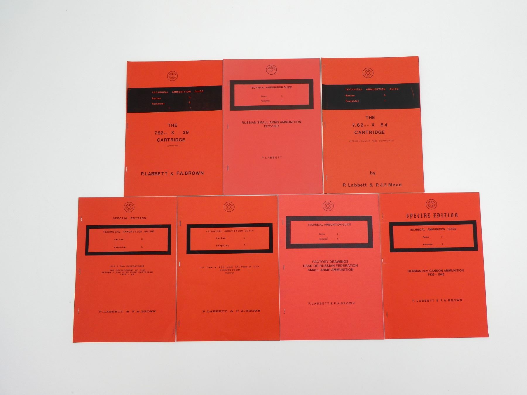 BY P. LABBETT, P.J.F. MEAD & F.A. BROWN, SOFT COVERS, LOT INCLUDES; (7) ASSORTED BOOKS OF "TECHNICAL AMMUNITION GUIDE" SERIES, STARTING AT SERIES 3, PAMPHLET 1 & ENDING WITH SERIES 3, PAMPHLET 7, SERIES MAY NOT BE COMPLETE. SEE PHOTOS.