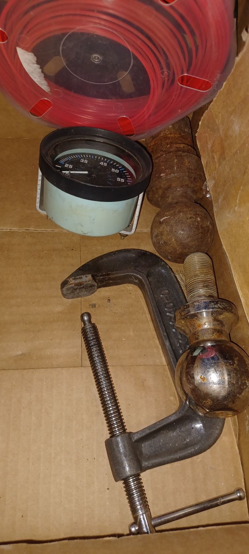 ASSORTED TOOLS, 2 5/15 BALL, GAUGE, TROLLS, ECT