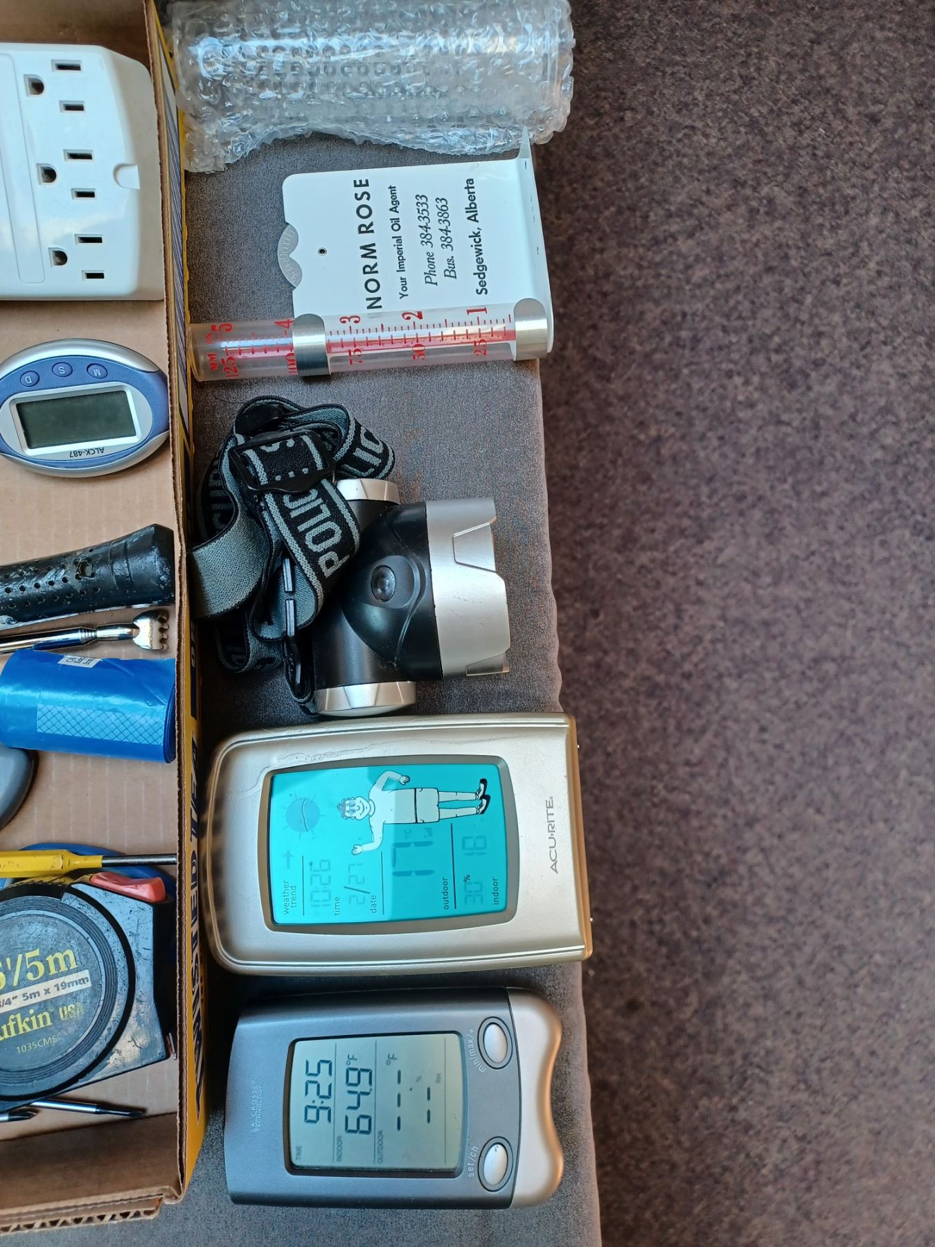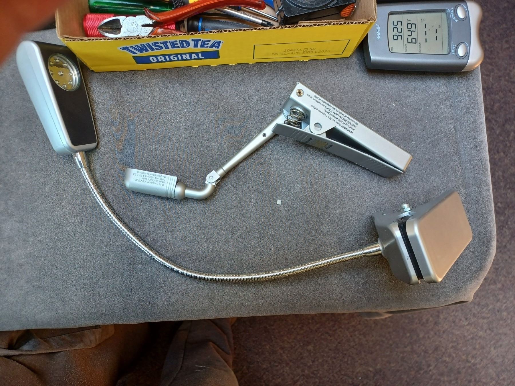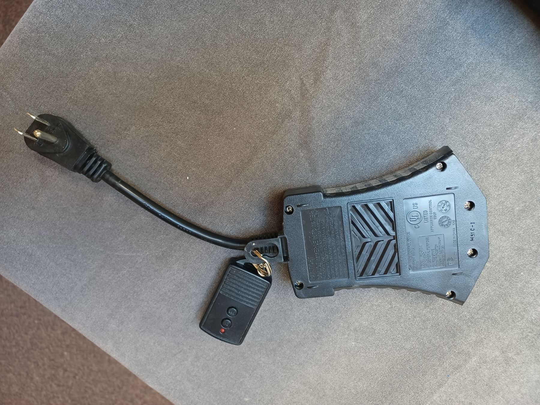 ASSORTED TOOLS, MULTIPLUG, PLUG WITH ON/OFF REMOTE, AND VARIOUS LIGHTS