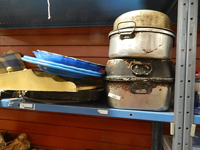 ASSORTED TRAYS & 2 VINTAGE ROASTING PANS