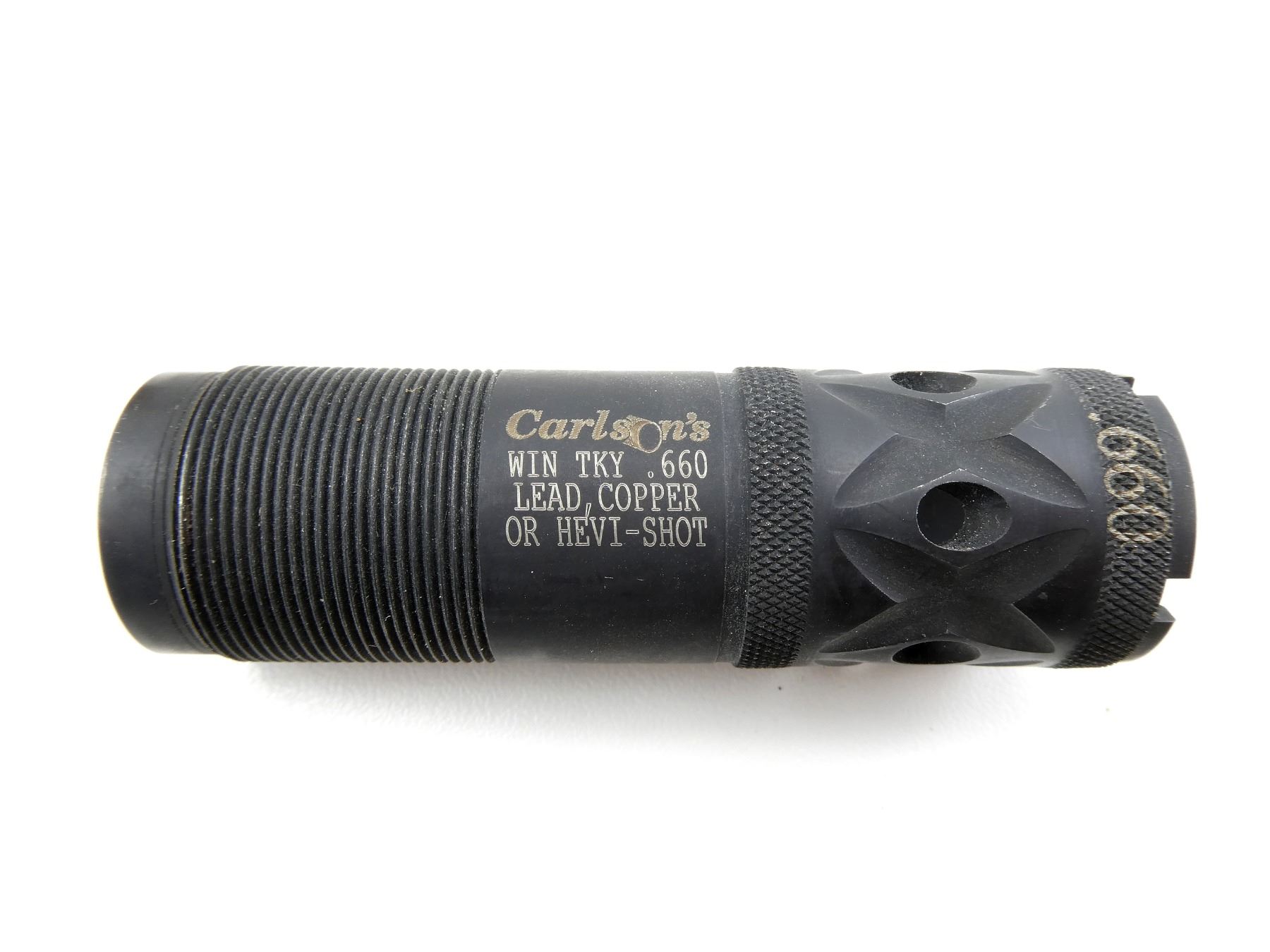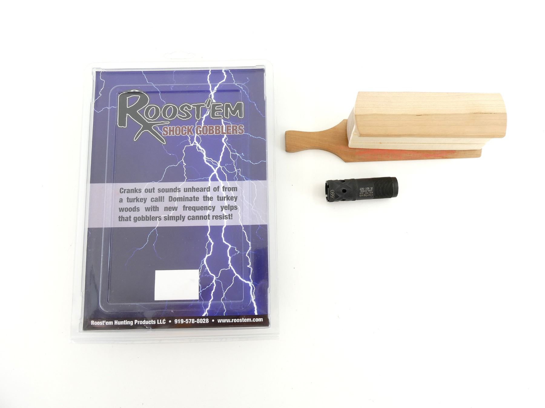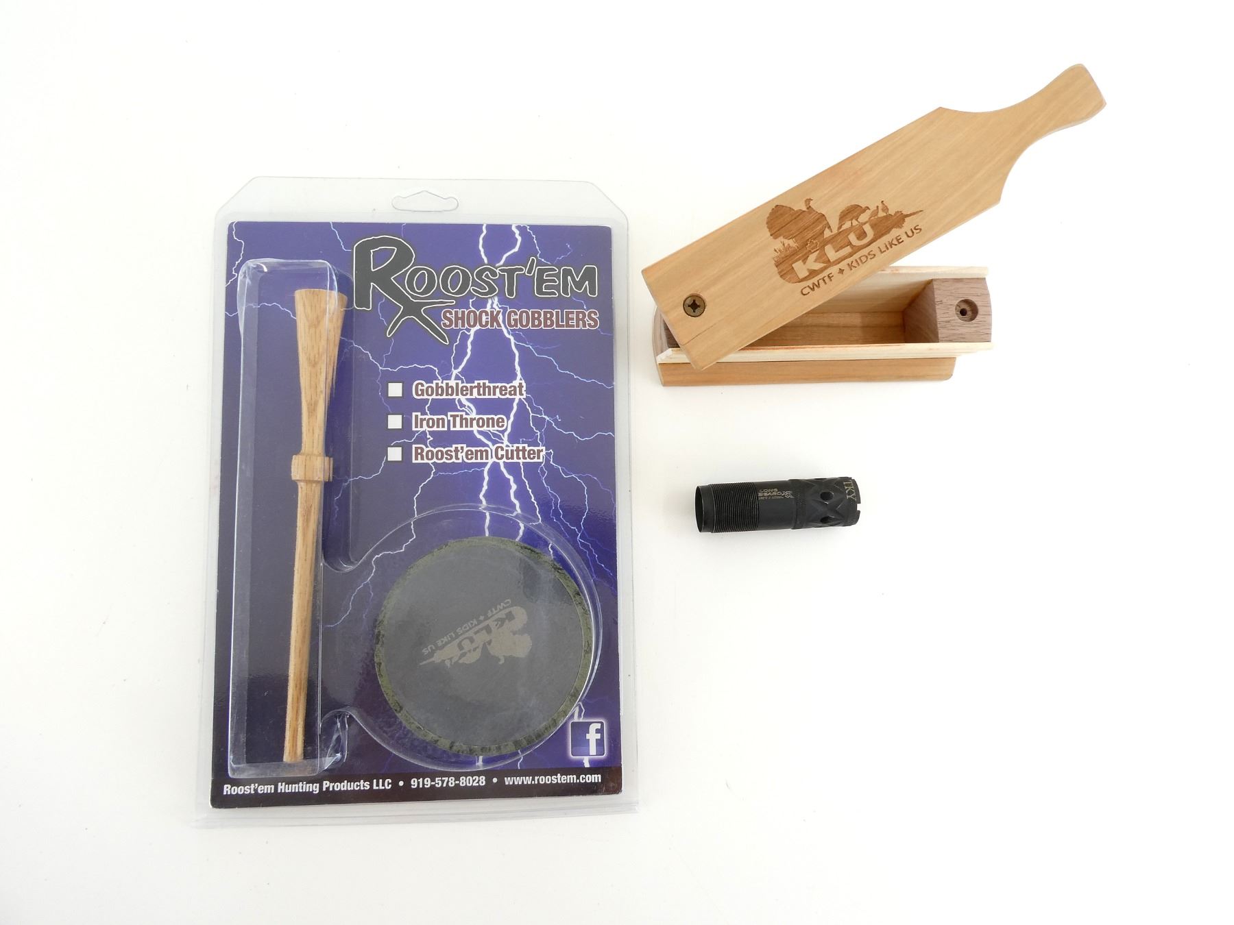 LOT INCLUDES; (1) KLU ROOST'EM SHOCK GOBBLERS TURKEY CALL, WITH STRIKER & ORIGINAL PACKAGING, (1) KLU WOODEN TURKEY BOX CALL, VARIOUS MARKINGS, OAL APPROX. 7.75" & (1) CARLSON'S LONG BEARD XR 12 G. WIN EXTENDED TURKEY .660 PORTED CHOKE TUBE, VARIOUS MARKINGS, STEEL CONSTRUCTION, OAL APPROX. 2 5/8". SEE PHOTOS.