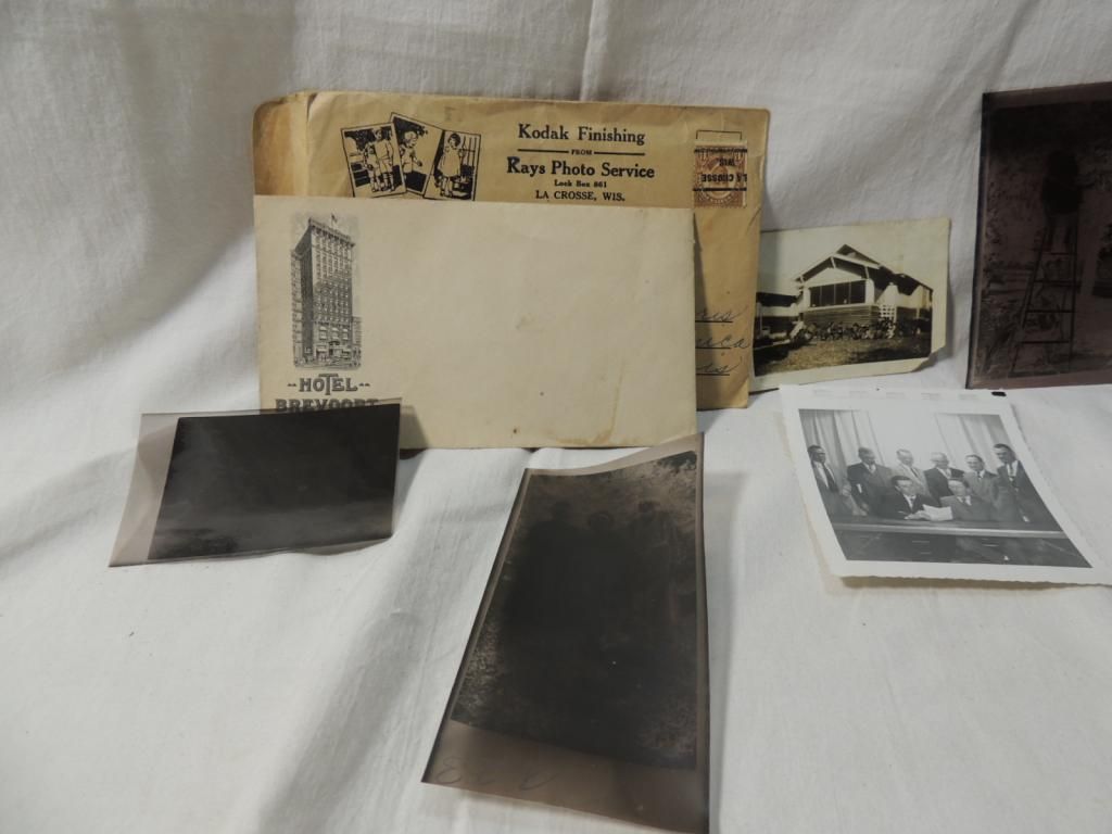 VINTAGE PHOTOS AND NEGATIVES. VINTAGE ENVELOPE FROM HOTEL BREVOORT IN CHICAGO. VINTAGE COLLECTIBLE. AS SHOWN. SEE PHOTO FOR MORE DETAILS.