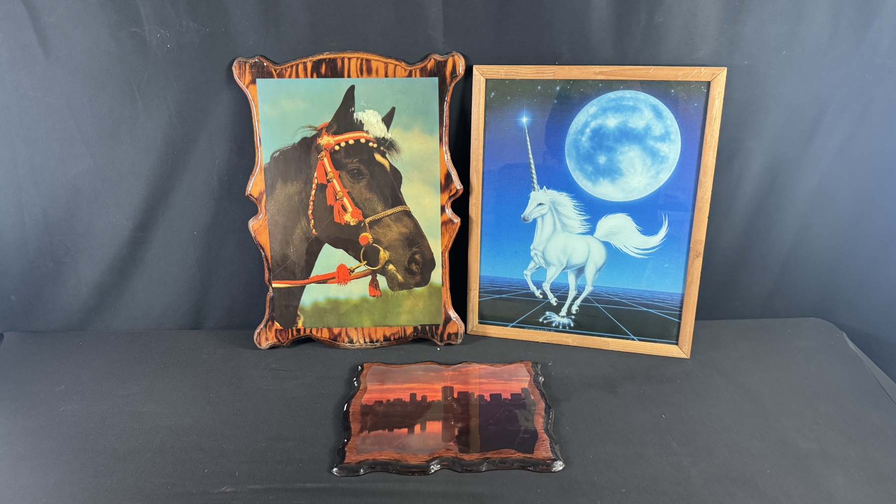 ASSORTED WALL ART (HORSE, SKYLINE, UNICORN)