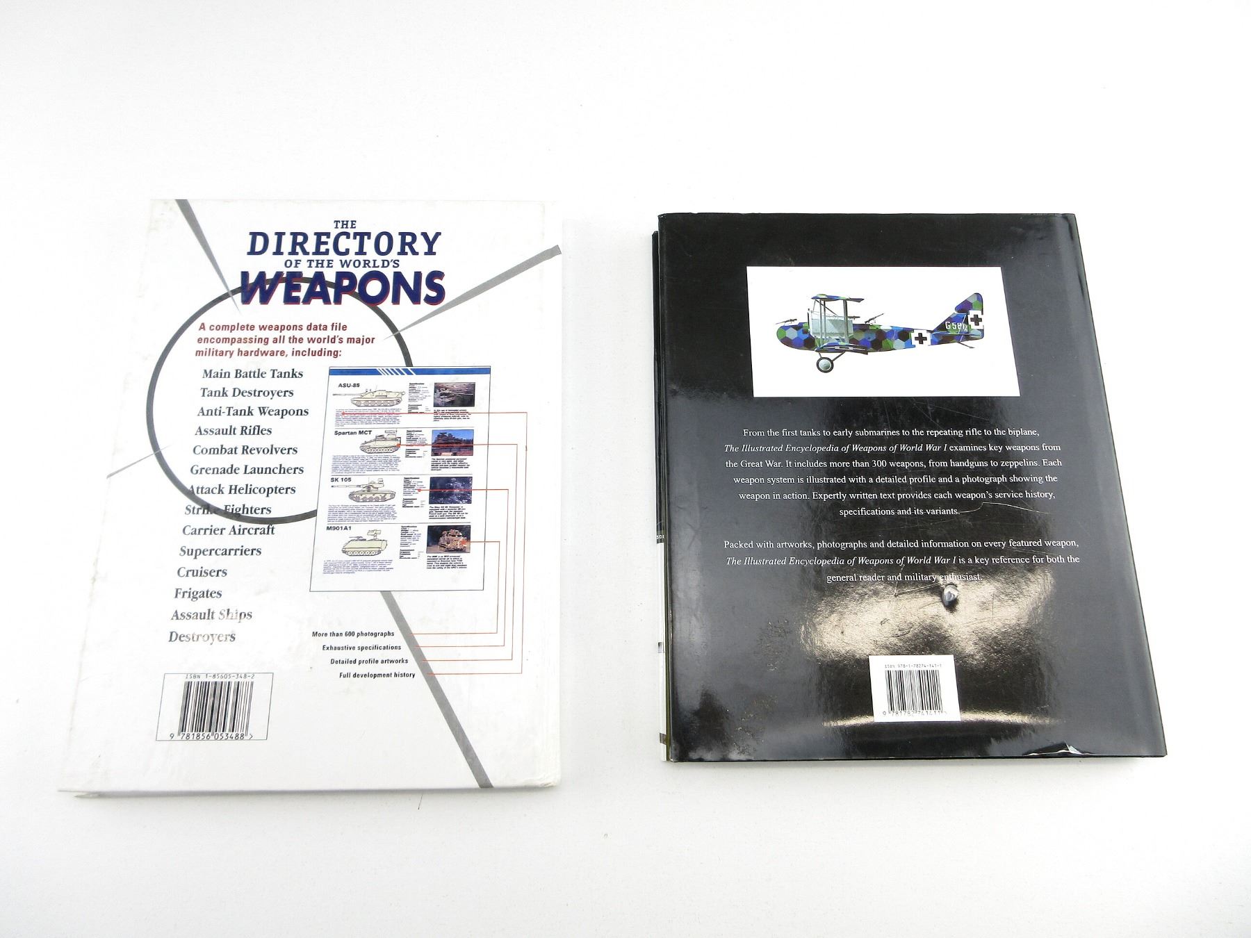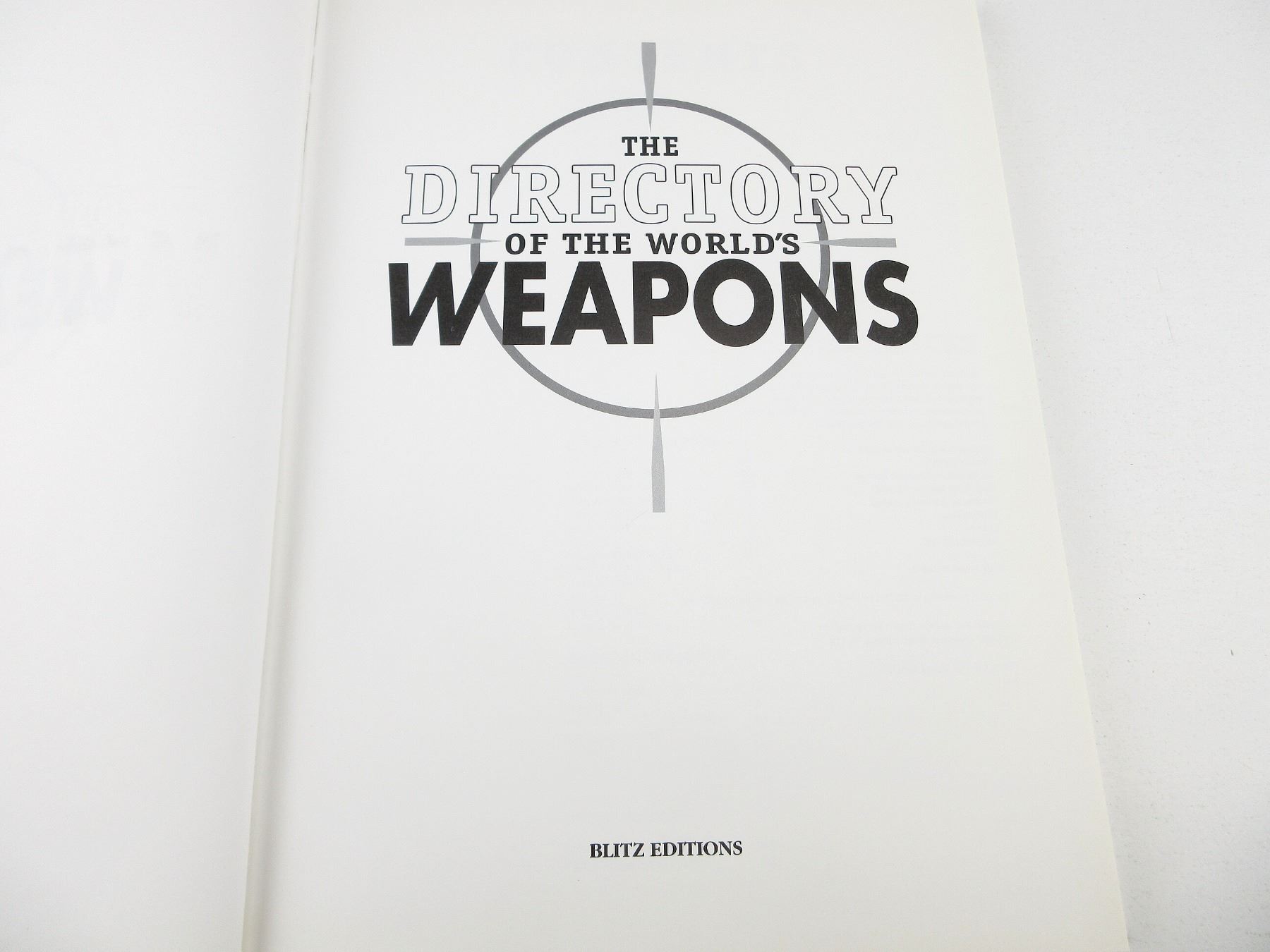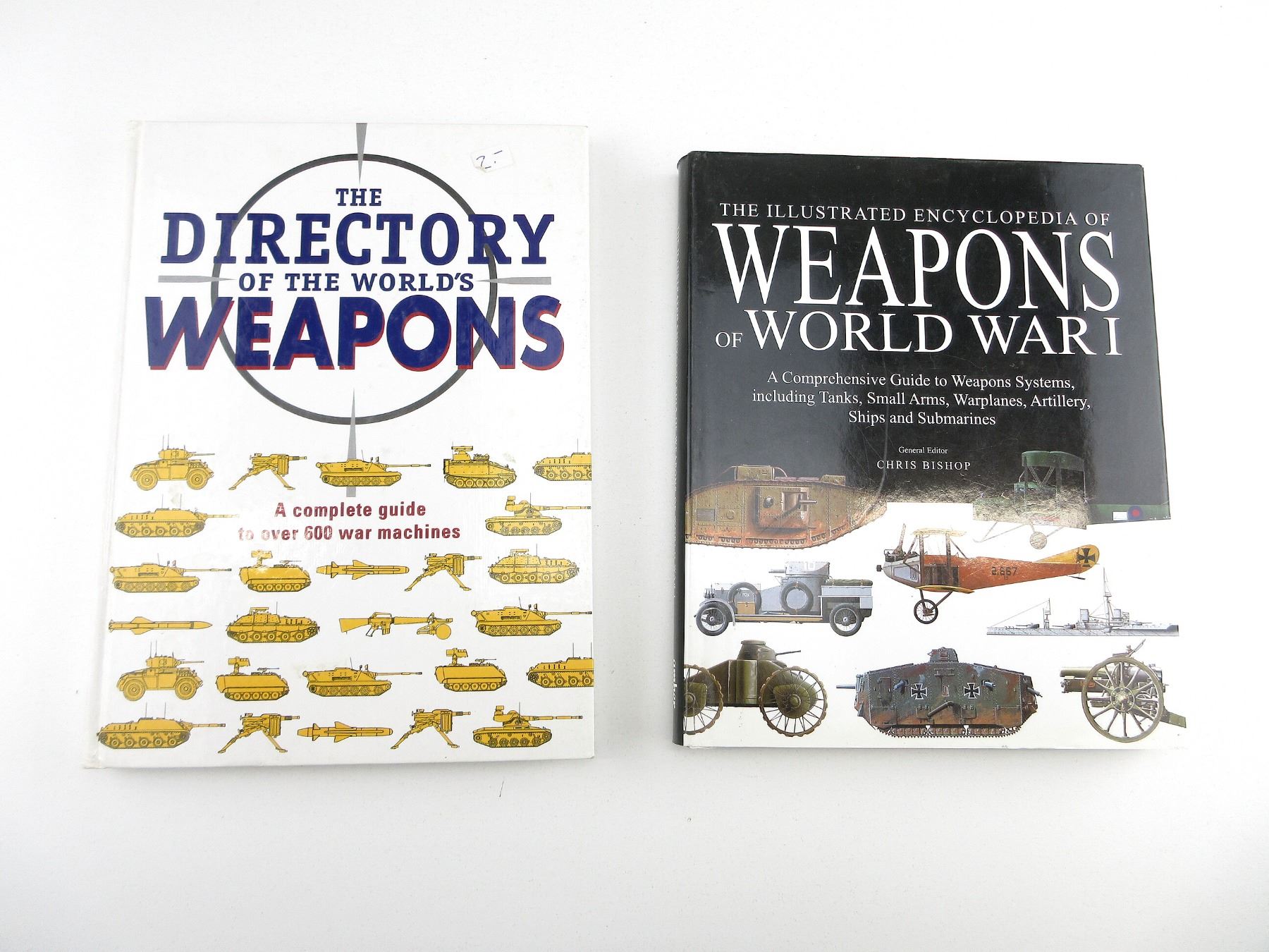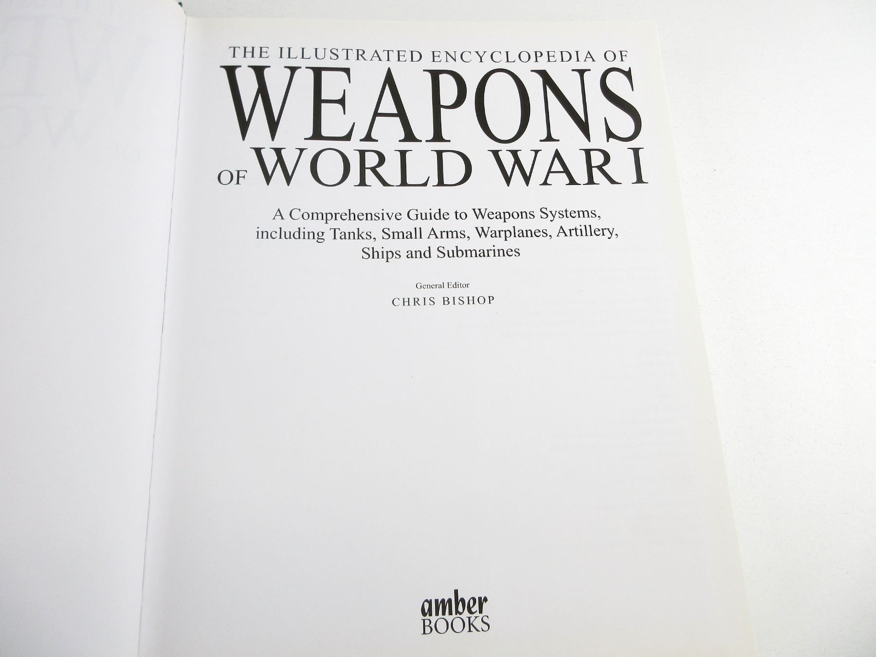 LOT INCLUDES; (1) "THE ILLUSTRATED ENCYCLOPEDIA OF WEAPONS OF WORLD WAR I" BOOK EDITED BY CHRIS BISHOP, HARD COVER WITH DUST COVER, ISBN: 978-1-78274-141-1 & (1) "THE DIRECTORY OF THE WORLD'S WEAPONS" BOOK PUBLISHED BY BLITZ EDITIONS, HARD COVER, ISBN: 1-85605-348-2. SEE PHOTOS.