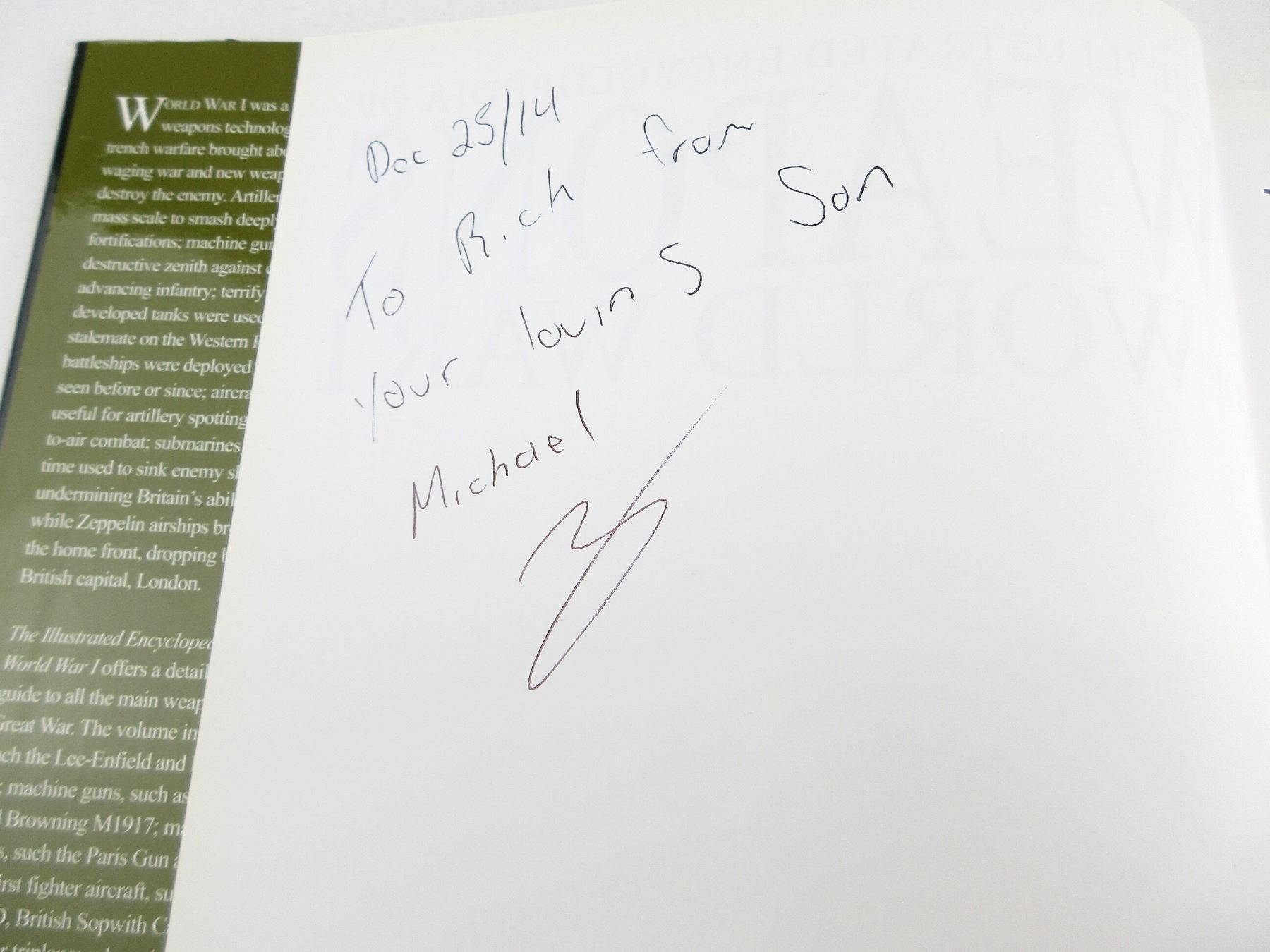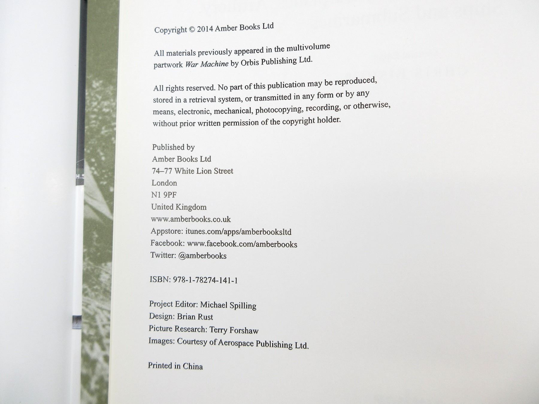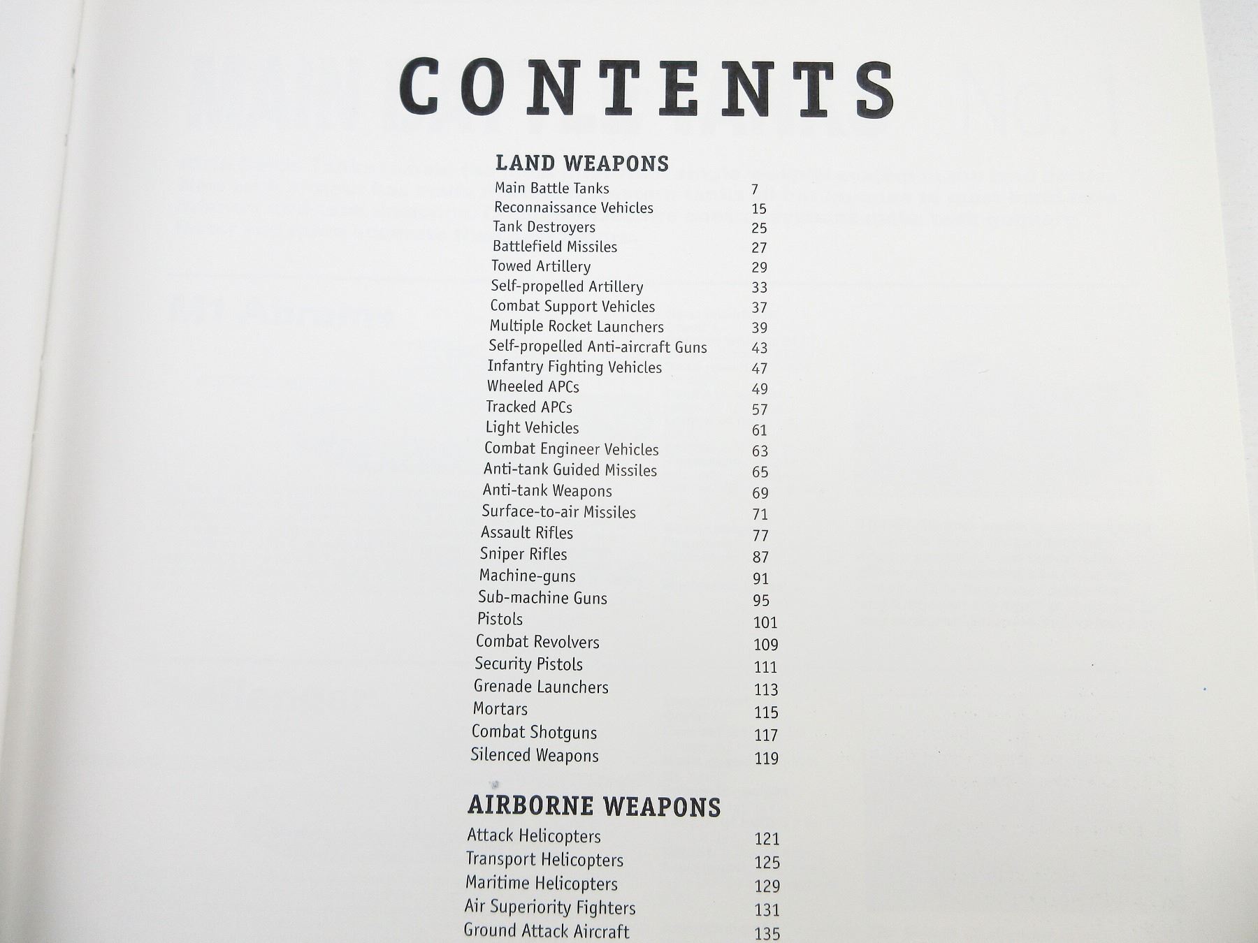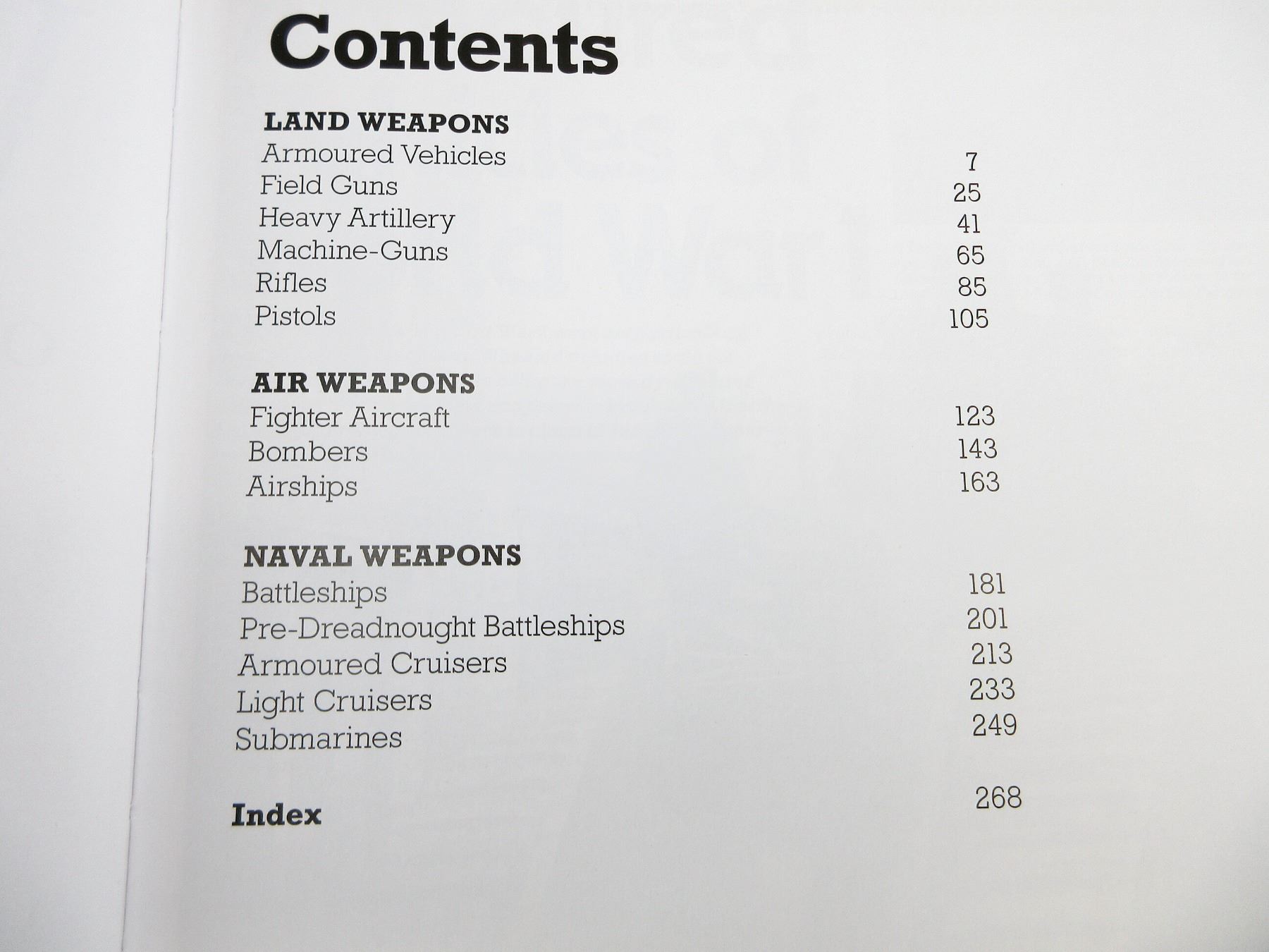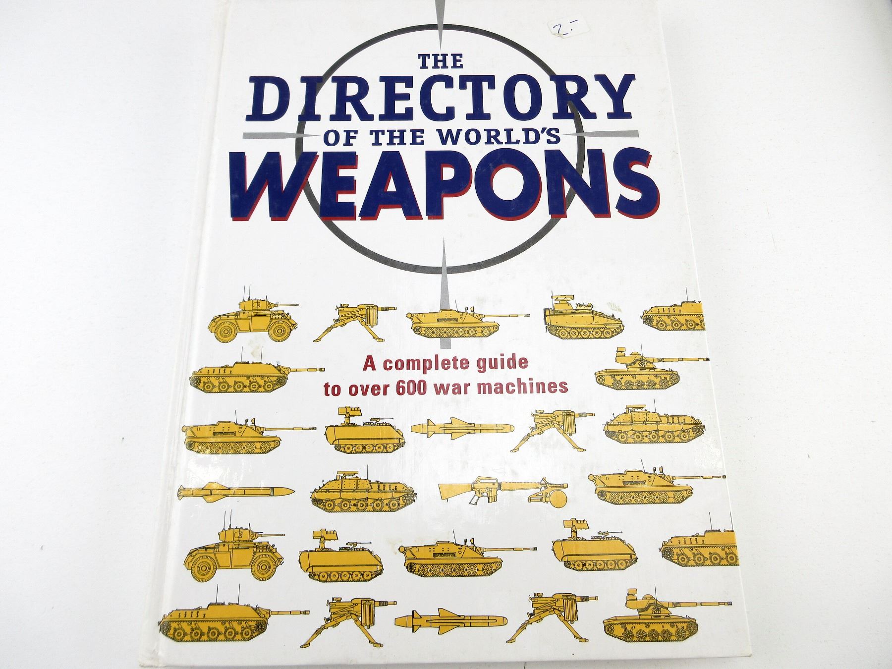 LOT INCLUDES; (1) "THE ILLUSTRATED ENCYCLOPEDIA OF WEAPONS OF WORLD WAR I" BOOK EDITED BY CHRIS BISHOP, HARD COVER WITH DUST COVER, ISBN: 978-1-78274-141-1 & (1) "THE DIRECTORY OF THE WORLD'S WEAPONS" BOOK PUBLISHED BY BLITZ EDITIONS, HARD COVER, ISBN: 1-85605-348-2. SEE PHOTOS.
