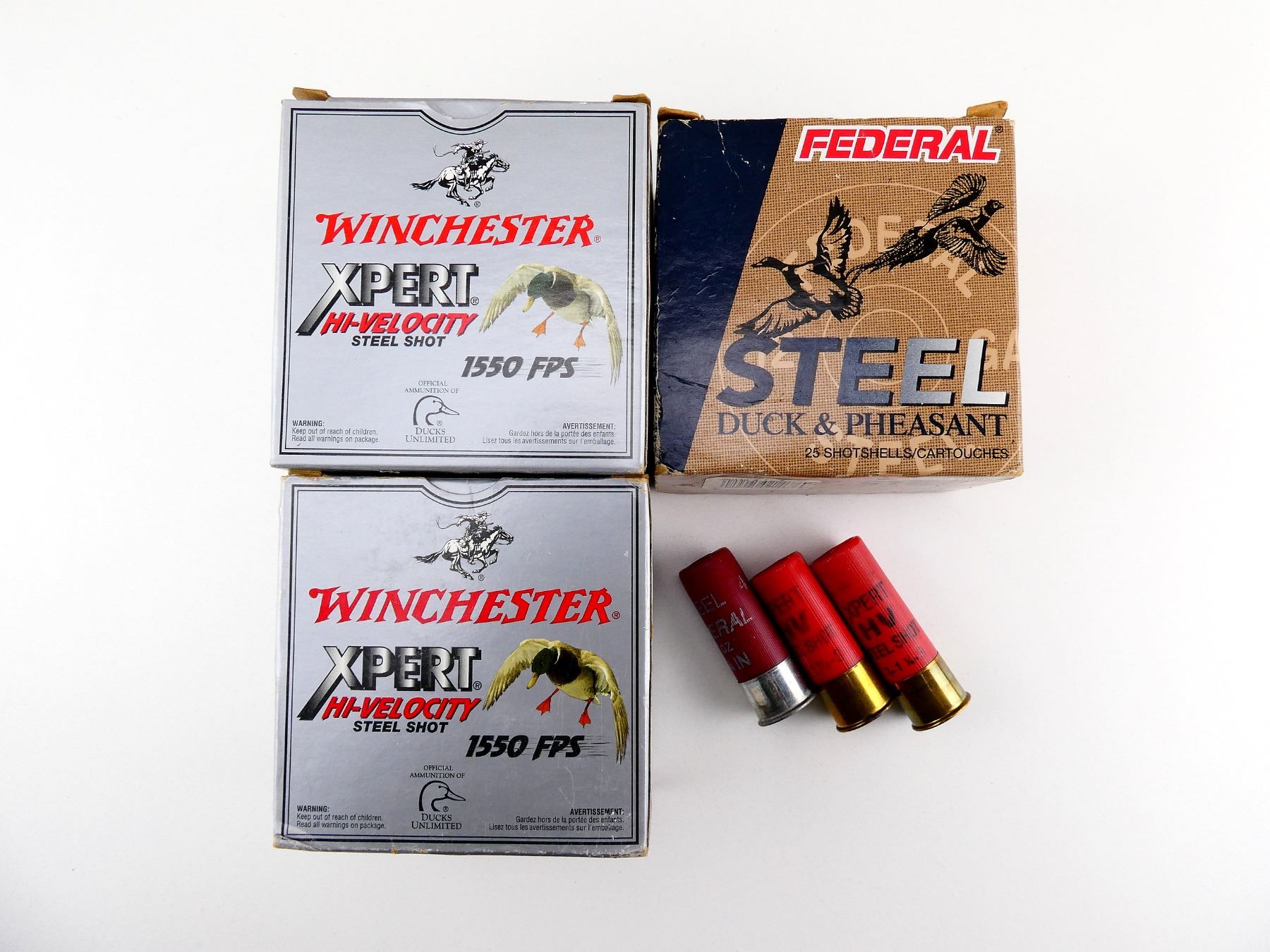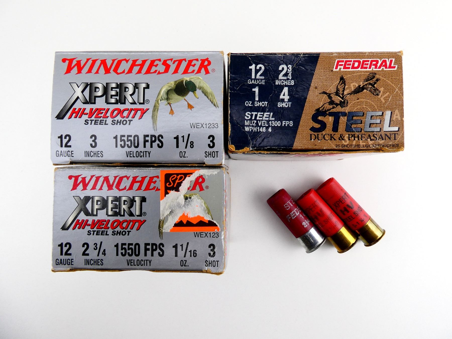 ASSORTED WINCHESTER AND FEDERAL 12 GAUGE 2 3/4" AND 3" STEEL SHOT SHELL AMMO LOT