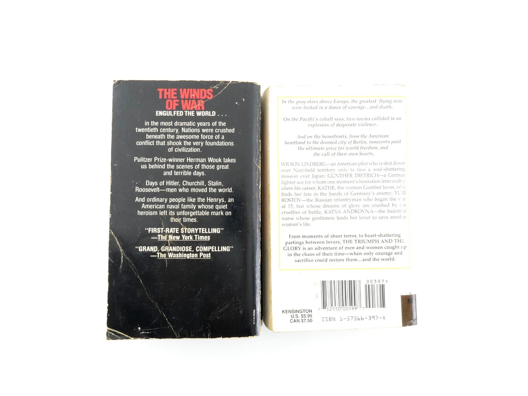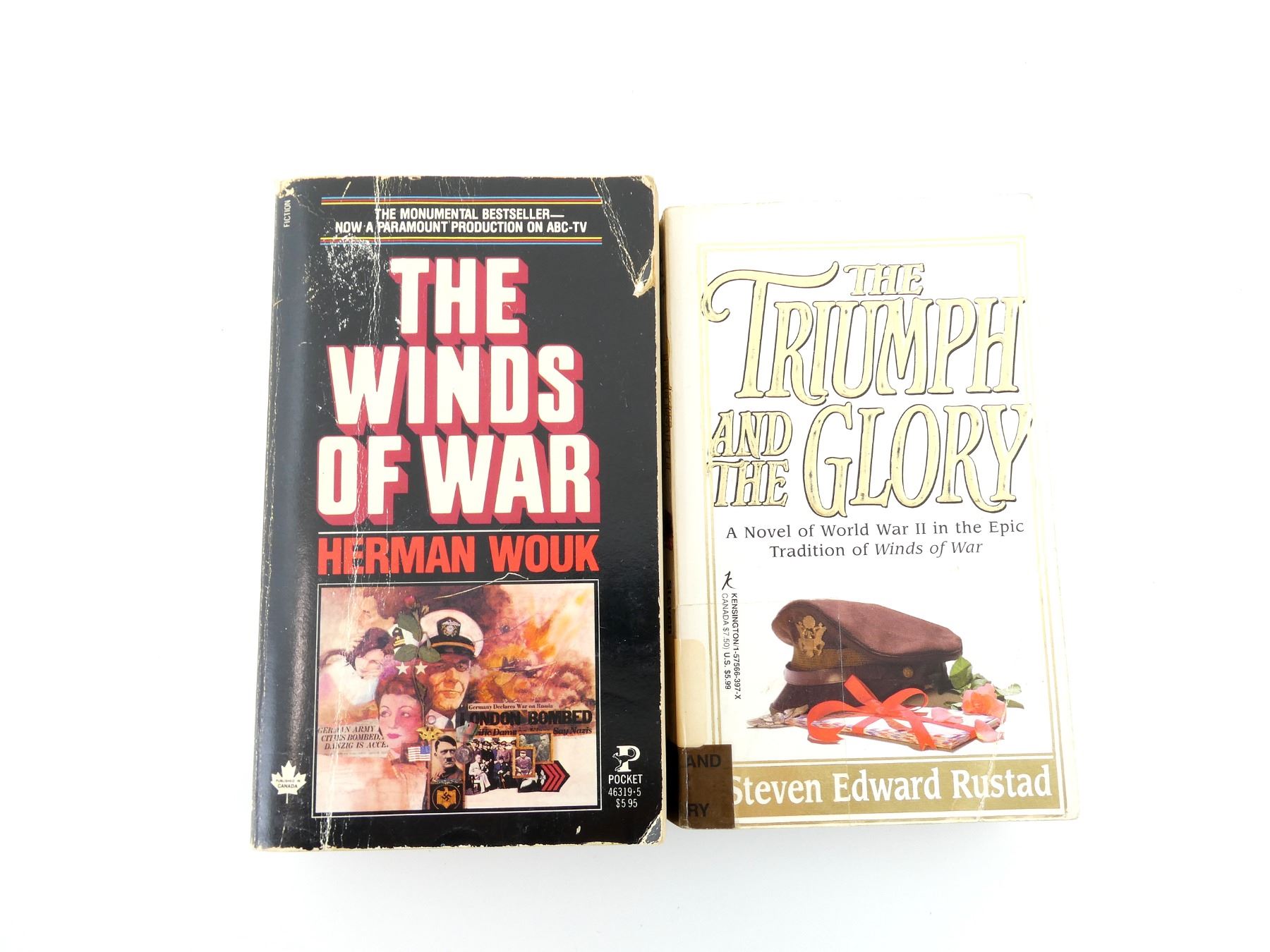 SOFT COVERS, LOT INCLUDES; (1) "THE WINDS OF WAR" BOOK BY HERMAN WOUK, ISBN: 0-671-46319-5 & "THE TRIUMPH AND THE GLORY, A NOVEL OF WORLD WAR II IN THE EPIC TRADITION OF WINDS OF WAR" BOOK BY STEVEN EDWARD RUSTAD, ISBN: 1-57566-397-x. SEE PHOTOS.