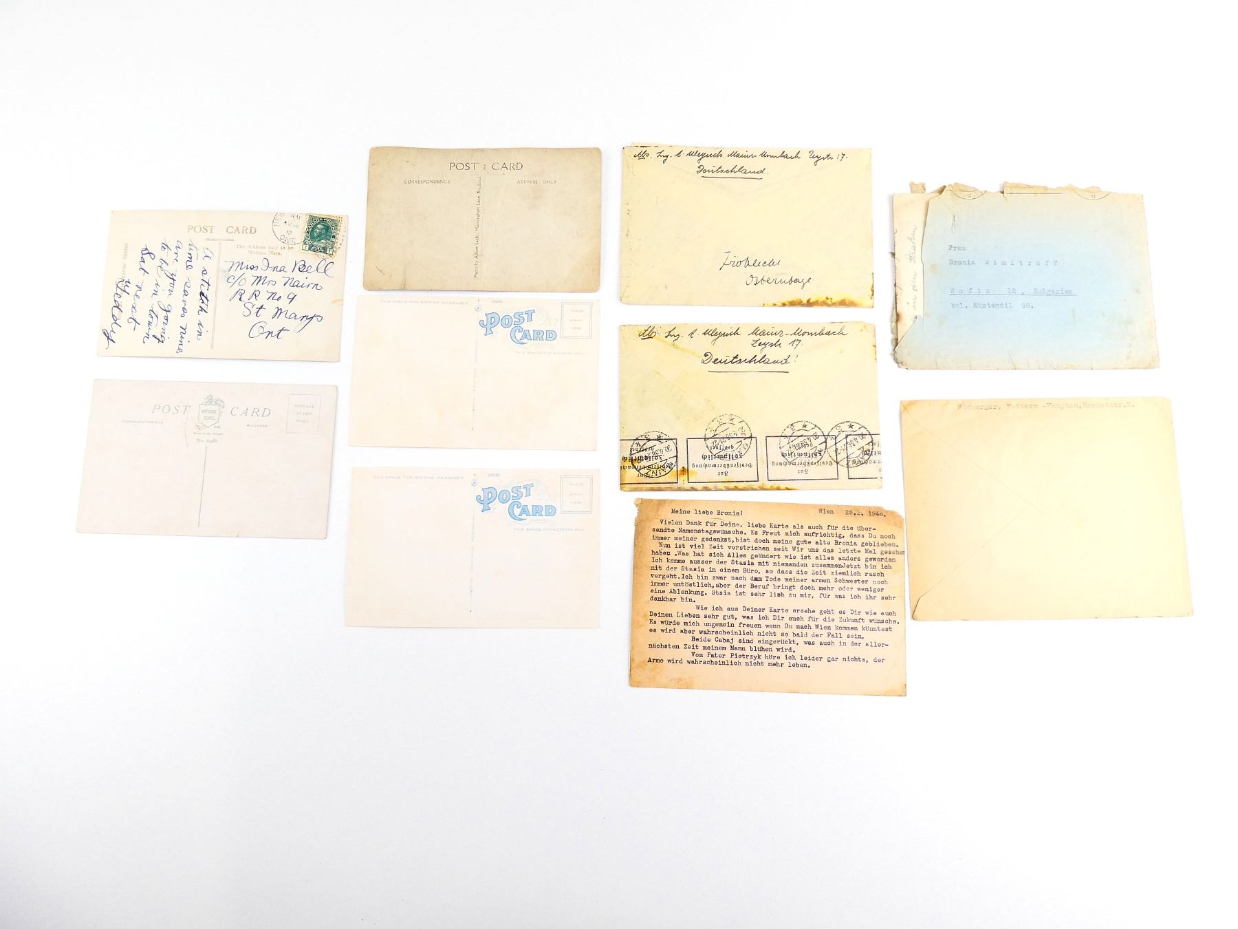 LOT INCLUDES; (5) BRITISH AND AMERICAN WWI POSTCARDS, (1) WWII STAMPED POSTCARD & (4) WWII STAMPED ENVELOPES. SEE PHOTOS.