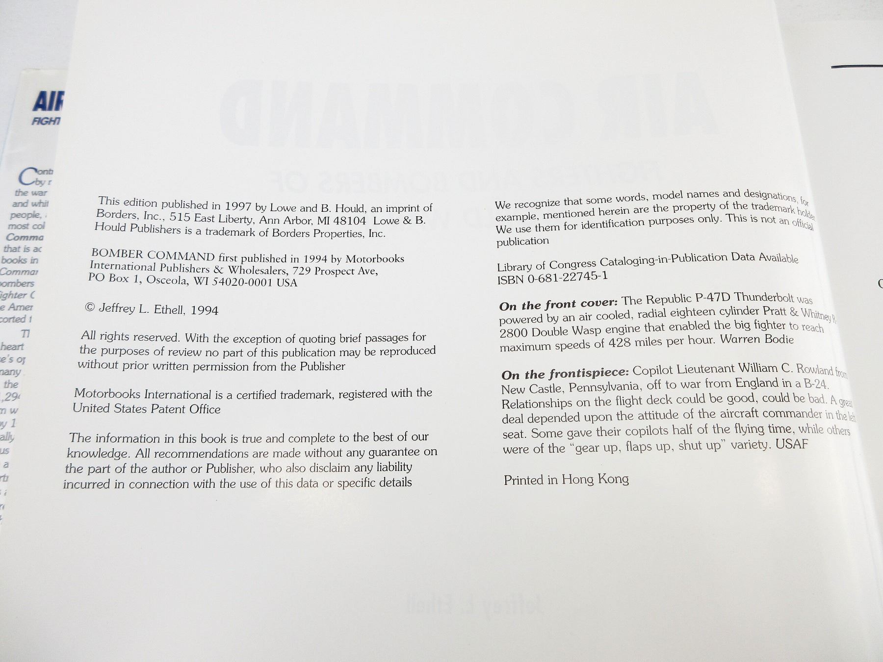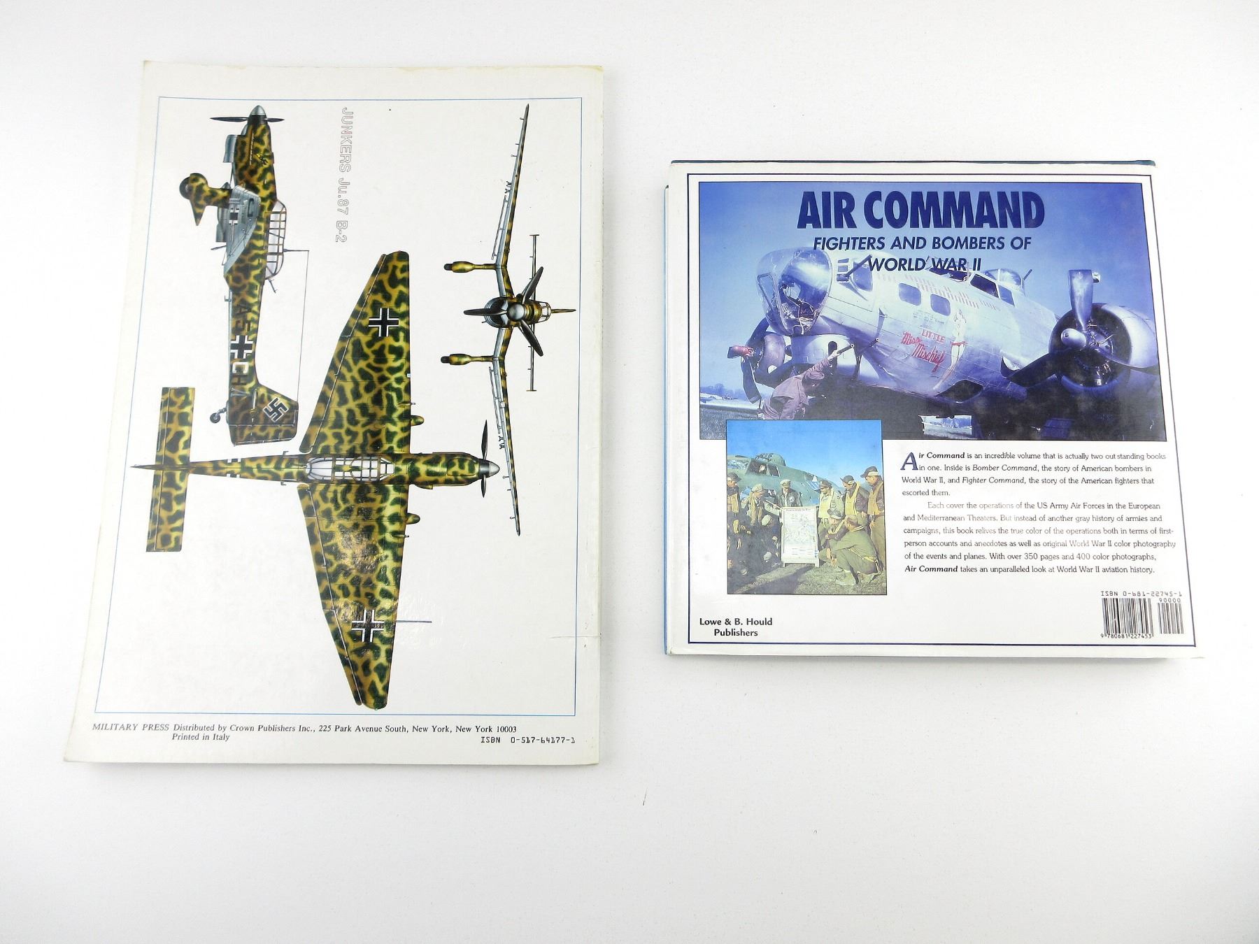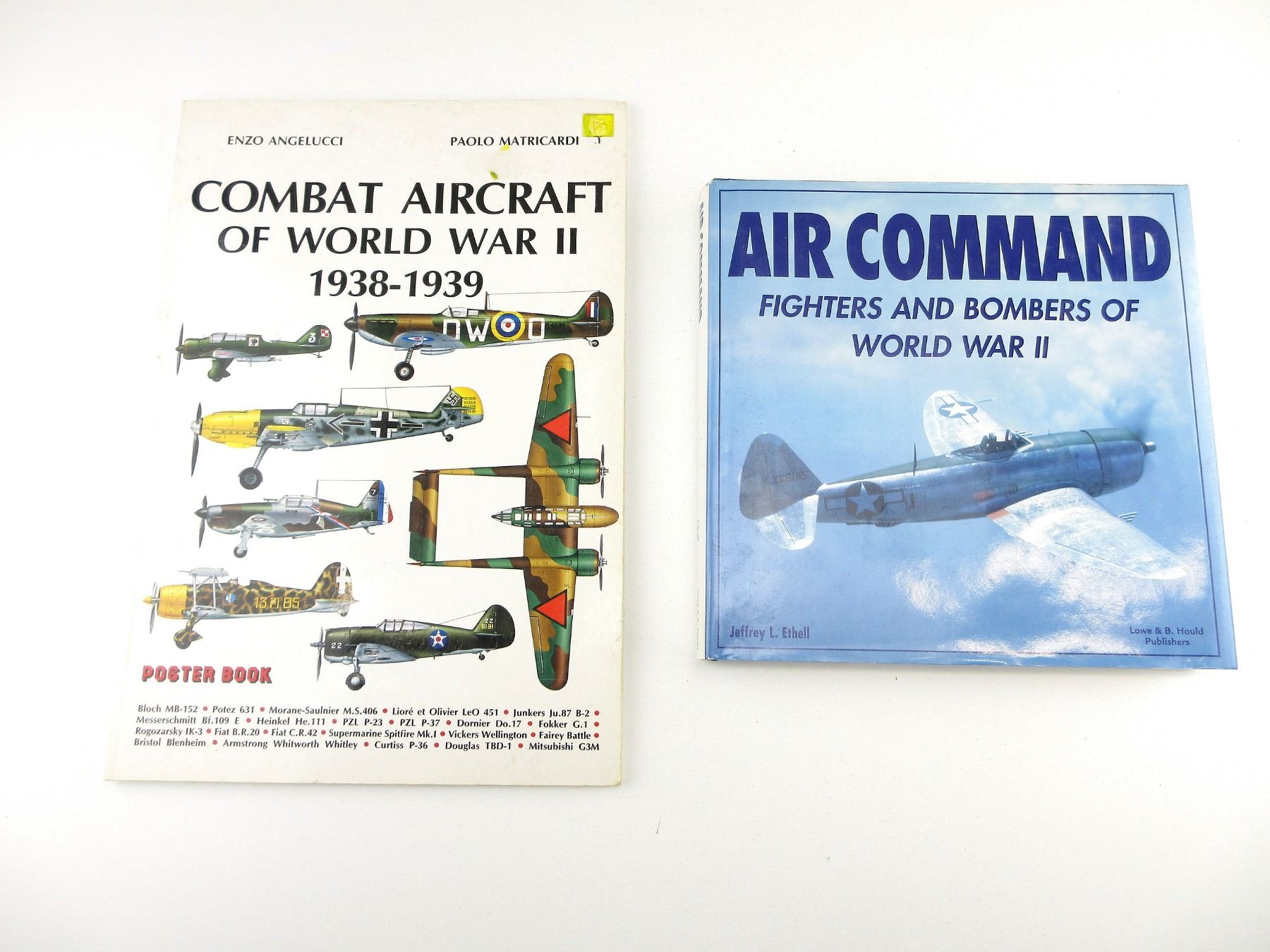 LOT INCLUDES; (1) "AIR COMMAND, FIGHTERS AND BOMBERS OF WORLD WAR II" BOOK BY JEFFREY L. ETHELL, HARD COVER WITH DUST COVER, ISBN: 0-681-22745-1 & (1) "COMBAT AIRCRAFT OF WORLD WAR II 1938-1939" BOOK BY ENZO ANGELUCCI & PAOLO MATRICARDI, SOFT COVER, ISBN: 0-517-64177-1. SEE PHOTOS.