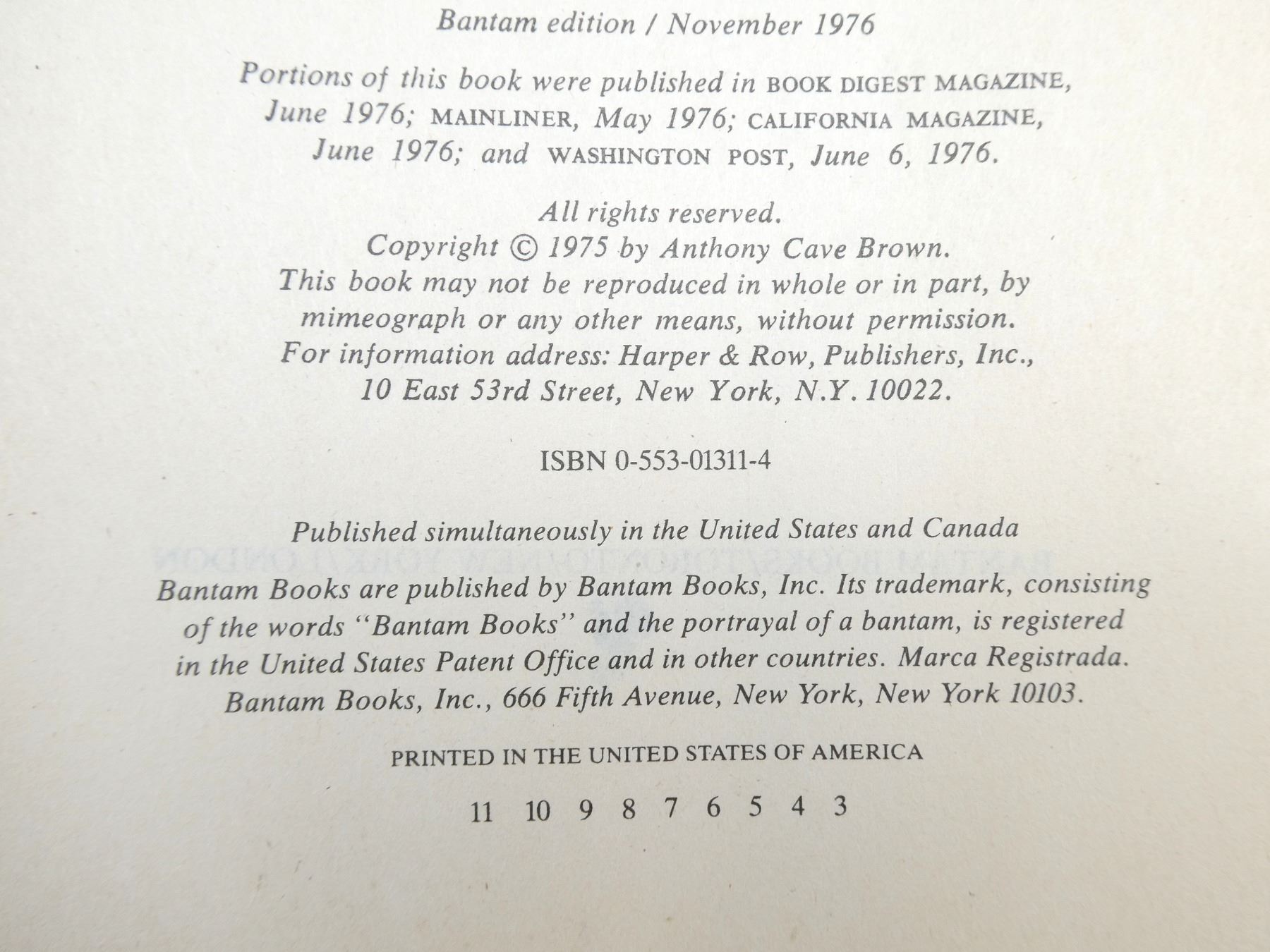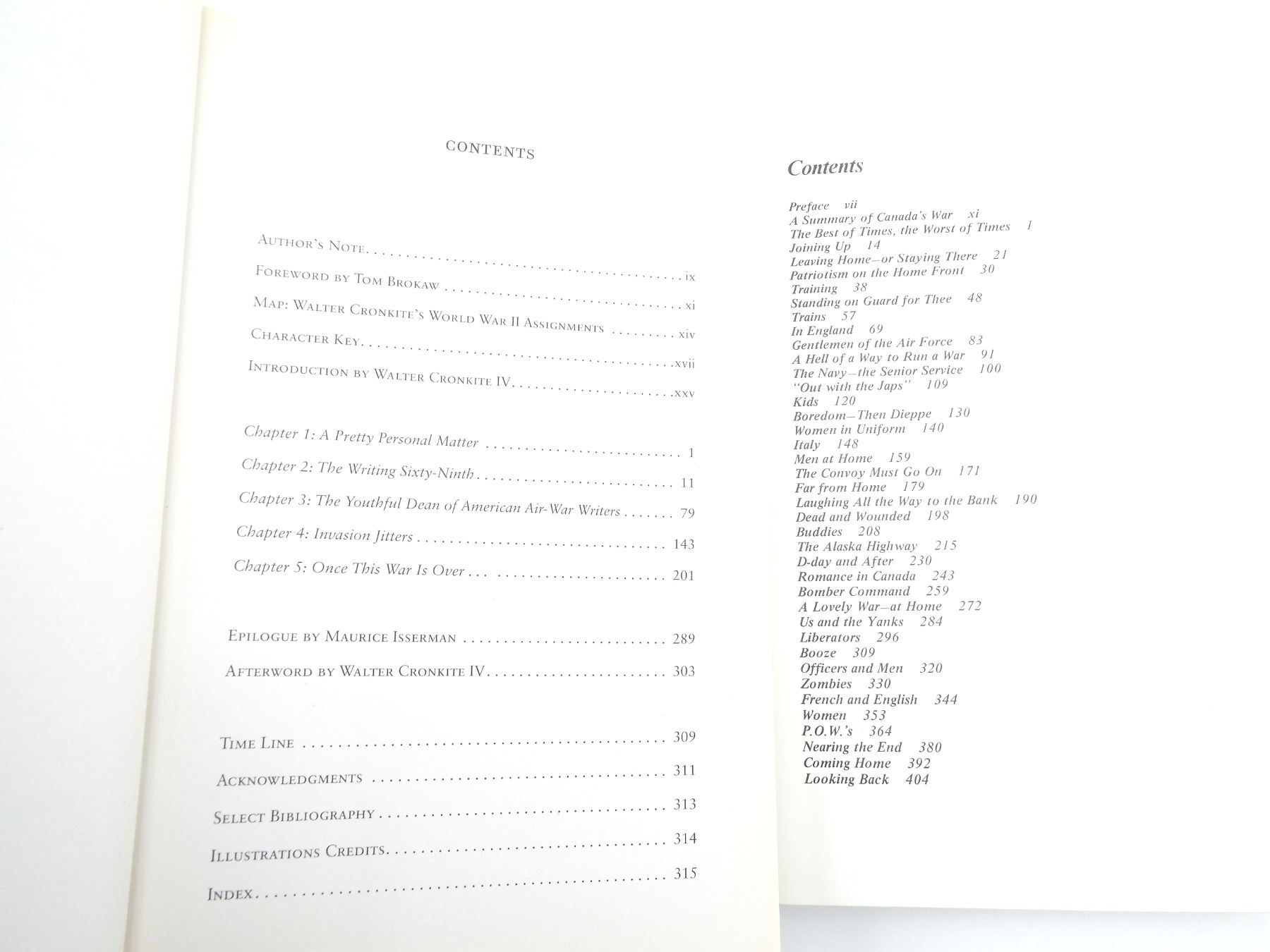 LOT INCLUDES; (1) "THE FORGOTTEN DEAD" BOOK BY KEN SMALL, HARD COVER WITH DUST COVER, ISBN: 0-7475-4467-0, (1) "THE FORGOTTEN HIGHLANDER, MY INCREDIBLE STORY OF SURVIVAL DURING THE WAR IN THE FAR EAST" BOOK BY ALISTAIR URQUHART, HARD COVER WITH DUST COVER, ISBN: 978-1-4087-0211-6, (1) "SIX WAR YEARS 1939-1945 MEMORIES OF CANADIANS AT HOME AND ABROAD" BOOK BY BARRY BROADFOOT, HARD COVER WITH DUST COVER, ISBN: 0-385-05814-4, (1) "BODYGUARD OF LIES" BOOK BY ANTHONY CAVE BROWN, SOFT COVER, ISBN: 0-553-01311-4, (1) "SIX WAR YEARS 1939-1945, MEMORIES OF CANADIANS AT HOME AND ABROAD" BOOK BY BARRY BROADFOOT, HARD COVER, ISBN: 0-385-05814-4, (1) "A COMPANY OF HEROES" BOOK BY MARCUS BROTHERTON, HARD COVER WITH DUST COVER, ISBN: 978-0-425-23420-4, (1) "TIME TO KILL THE SOLDIER'S EXPERIENCE OF WAR IN THE WEST 1939-1945" BOOK EDITED BY PAUL ADDISON & ANGUS CALDER, SOFT COVER, ISBN: 0-7126-7376-8 & (1) "CRONKITE'S WAR" BOOK BY WALTER CRONKITE IV & MAURICE ISSERMAN, HARD COVER, ISBN: 978-1-4262-1019-8. SEE PHOTOS.
