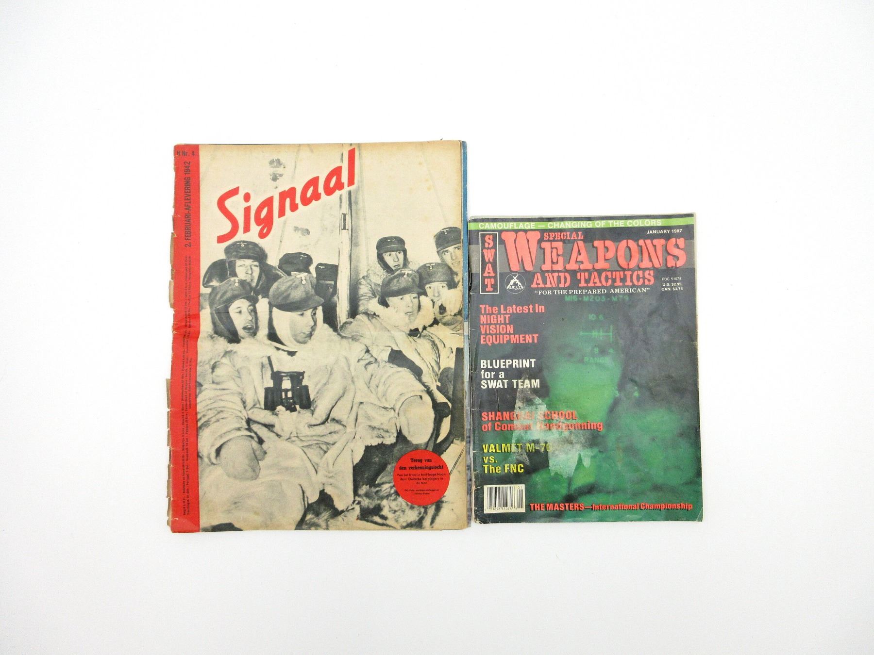 LOT INCLUDES; (1) SIGNAL MAGAZINE DATED FEBRUARY 1942, SHOWS AGE / WEAR & TEAR & (1) SWAT SPECIAL WEAPONS AND TACTICS MAGAZINE DATED JANUARY 1987, SHOWS AGE / WEAR & TEAR. SEE PHOTOS.