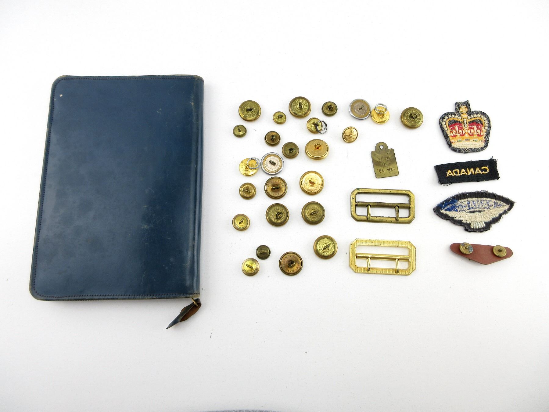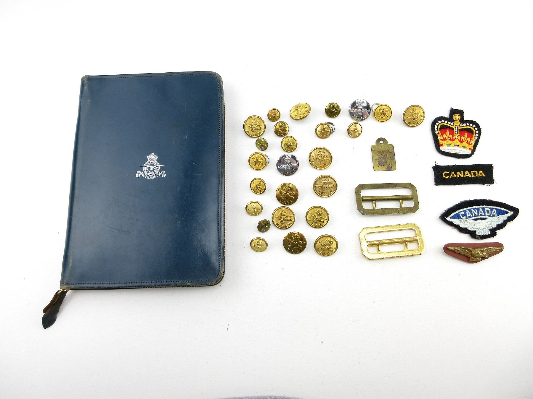 ASSORTED WWII / MODERN RCAF BUTTONS, BADGES, NOTE CASE, ETC. LOT