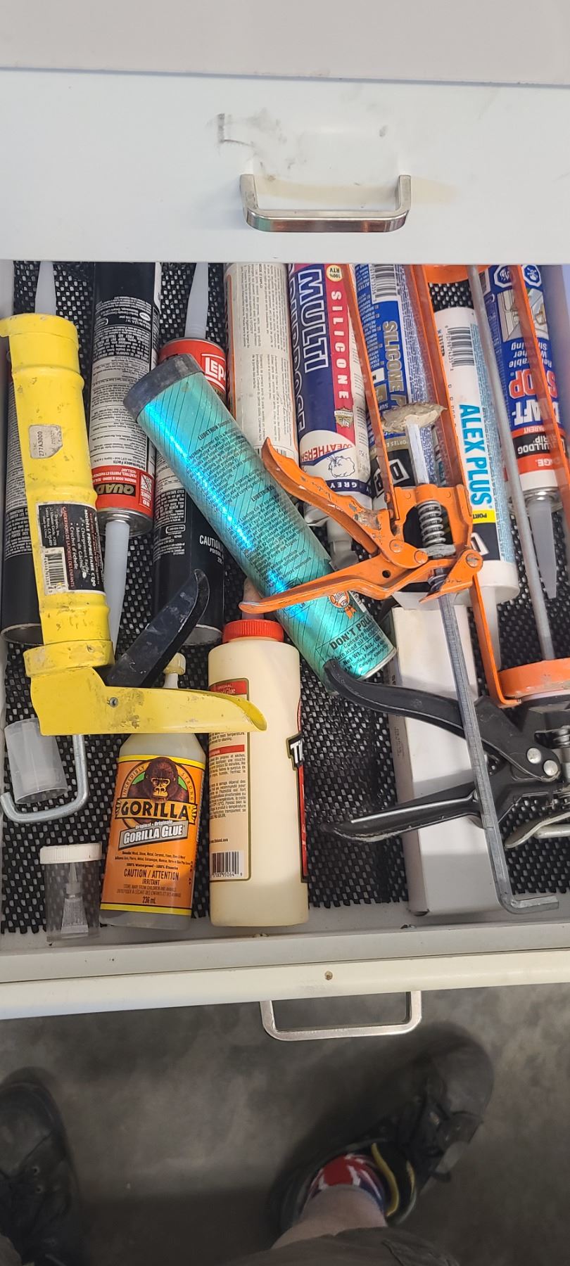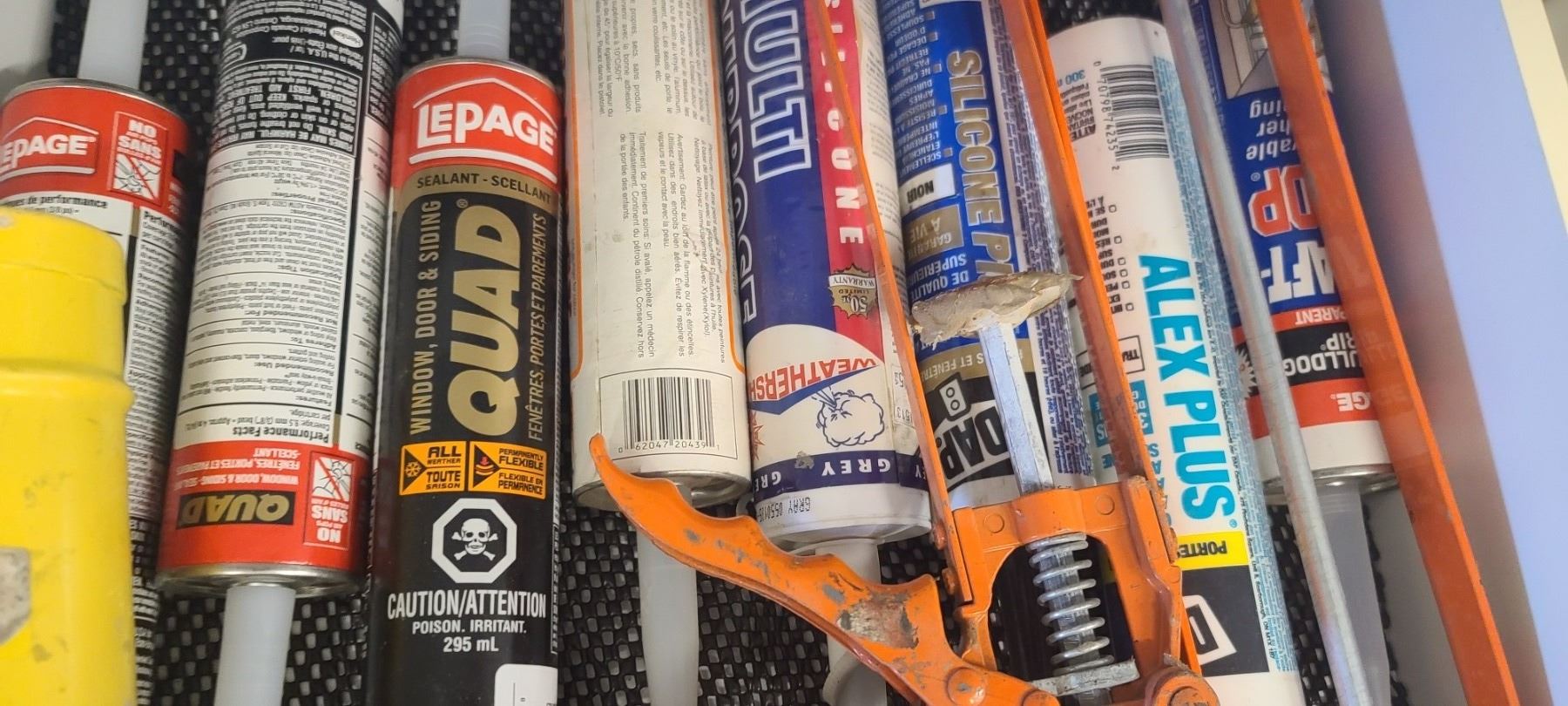 ASSORTMENT OF ADHESSIVES, LUBES CAULKING,