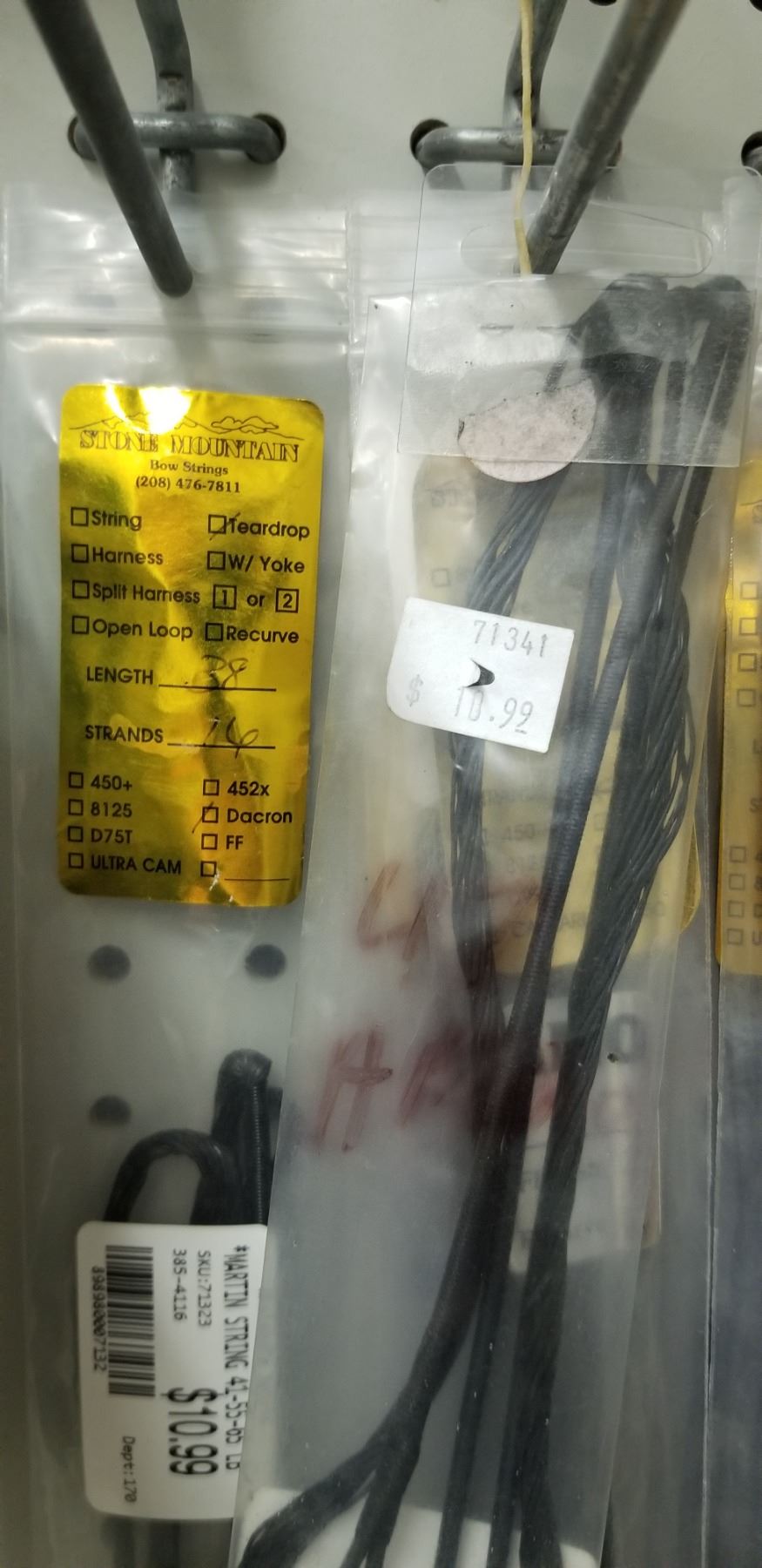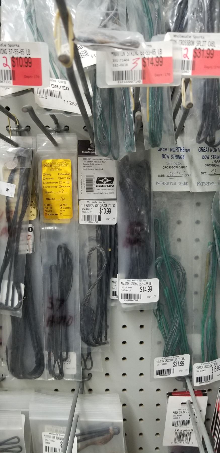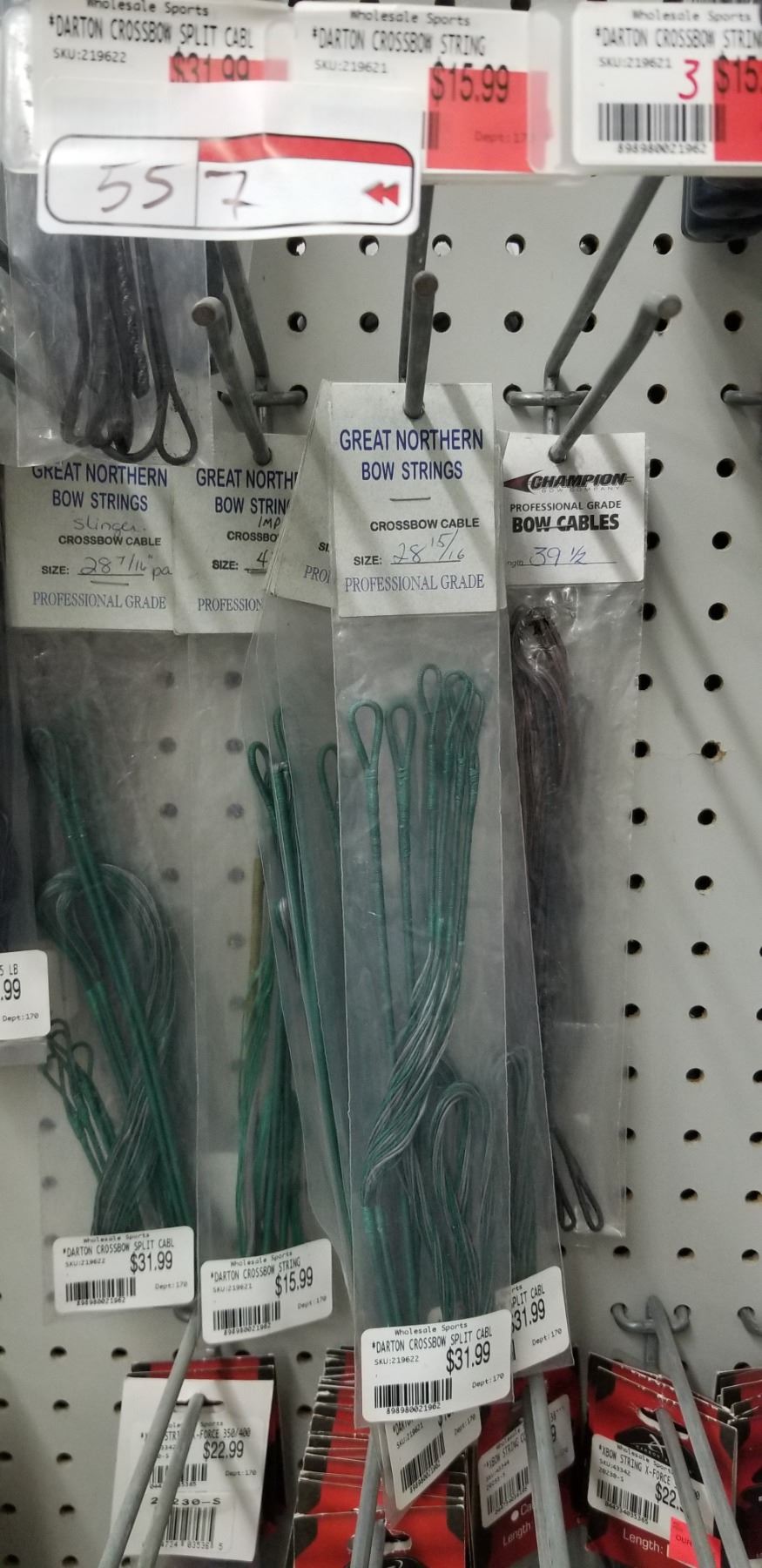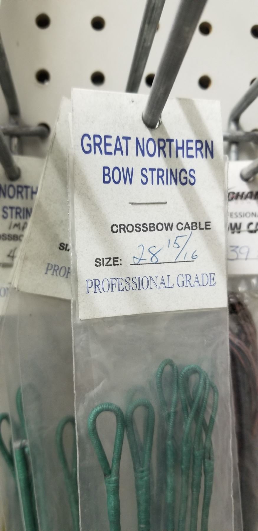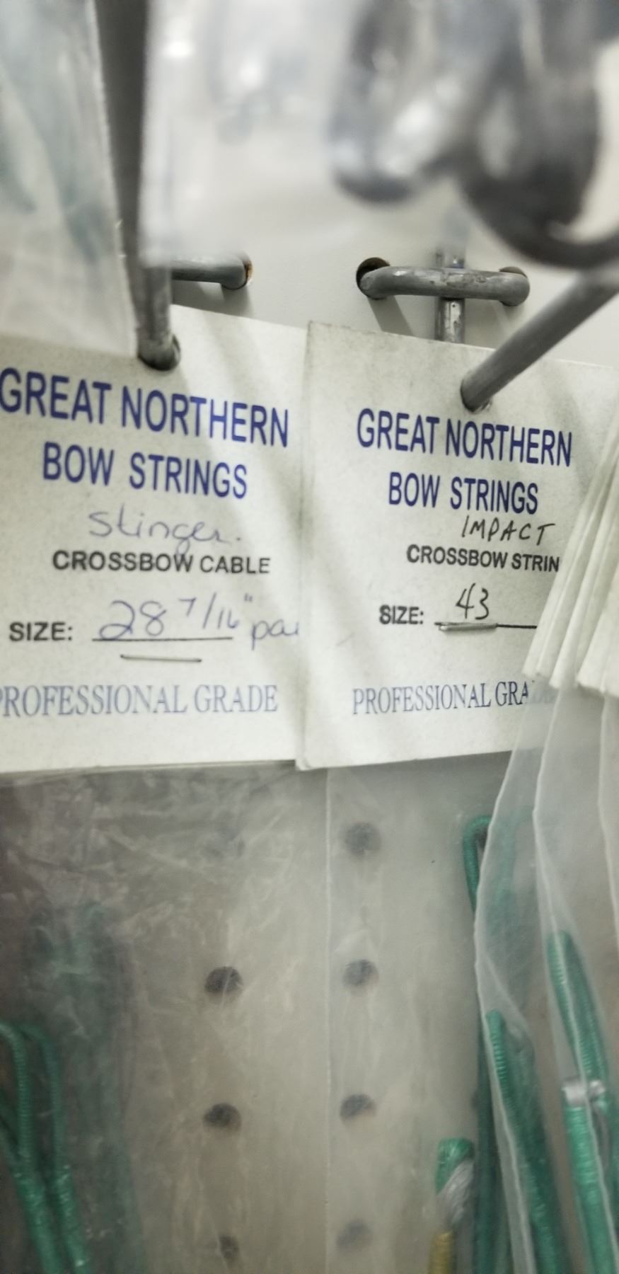 ASSORTMENT OF CROSSBOW STRINGS QTY 28 RETAIL VALUE $420
