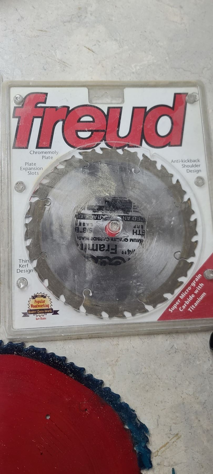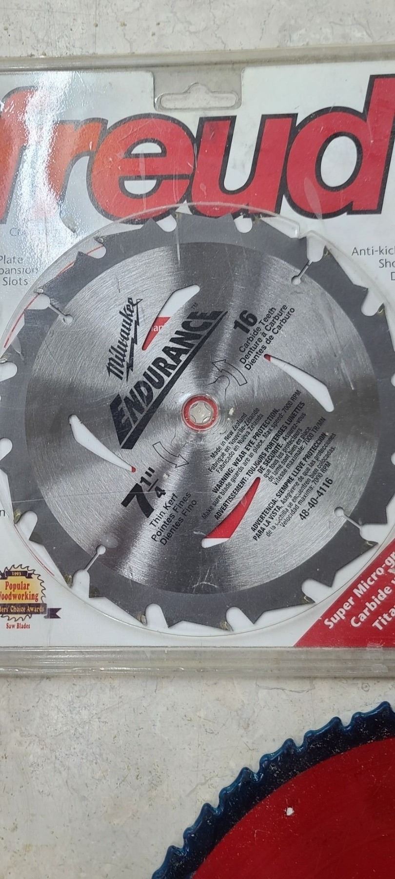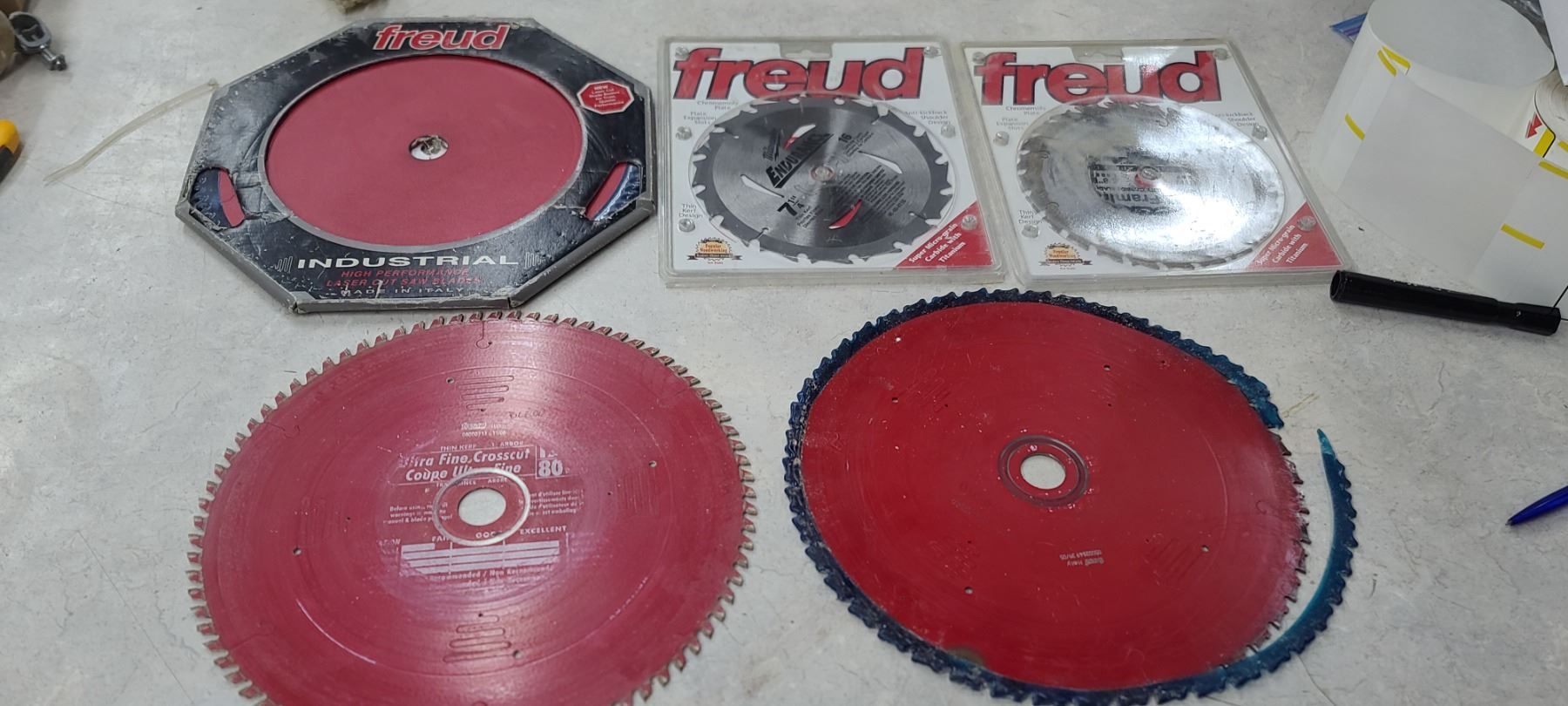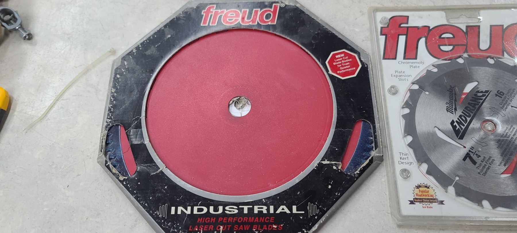 ASSORTMENT OF FREUD BLADES - TWO 7 1/4" AND THREE 12" ULTRA FINE CROSS CUT - LASER CUT BLADE AND SUPER MICRO GRAIN CARBIDE WITH TITANIUM
