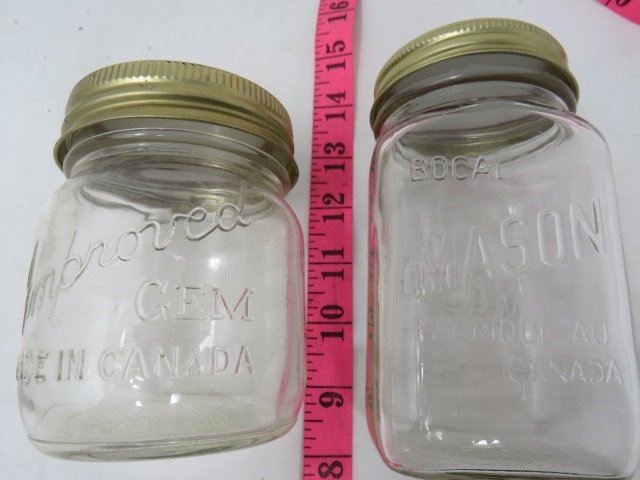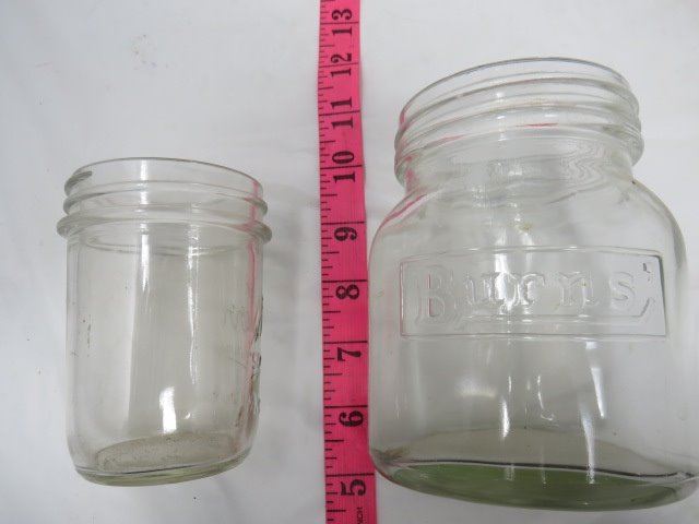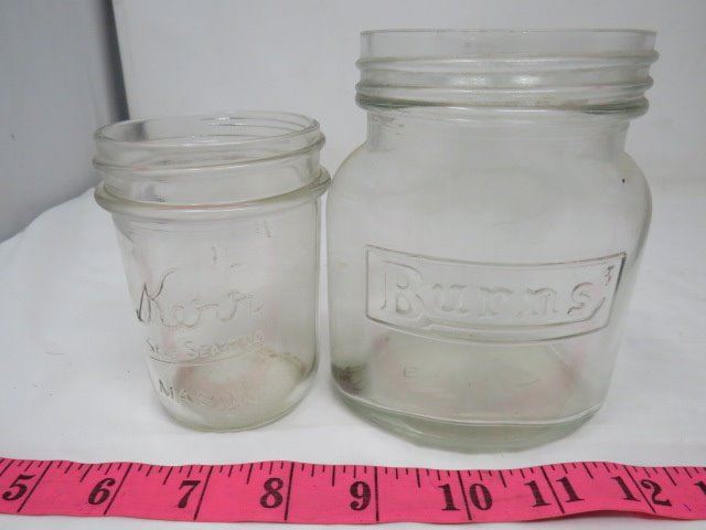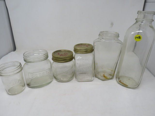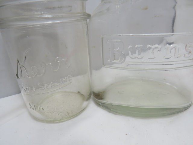 ASSORTMENT OF KEER HALF PINT JARS ( BURNS JAR, CANADIAN MASON, IMPROVED GEM MILK BOTTLE)