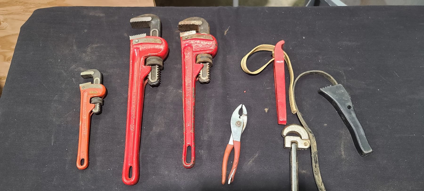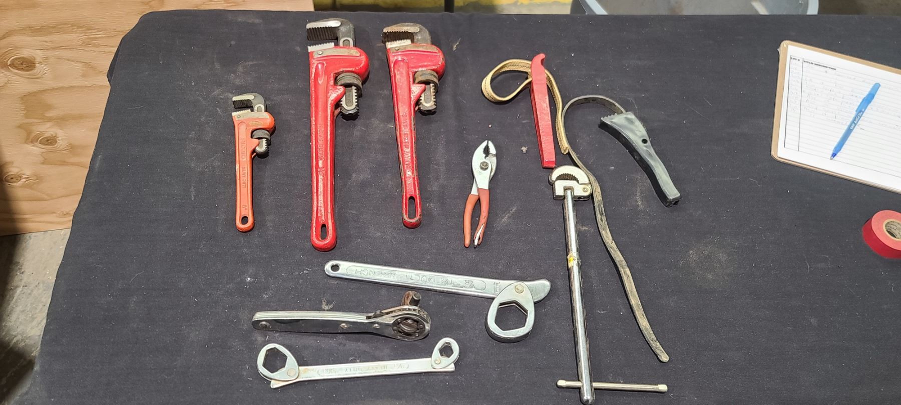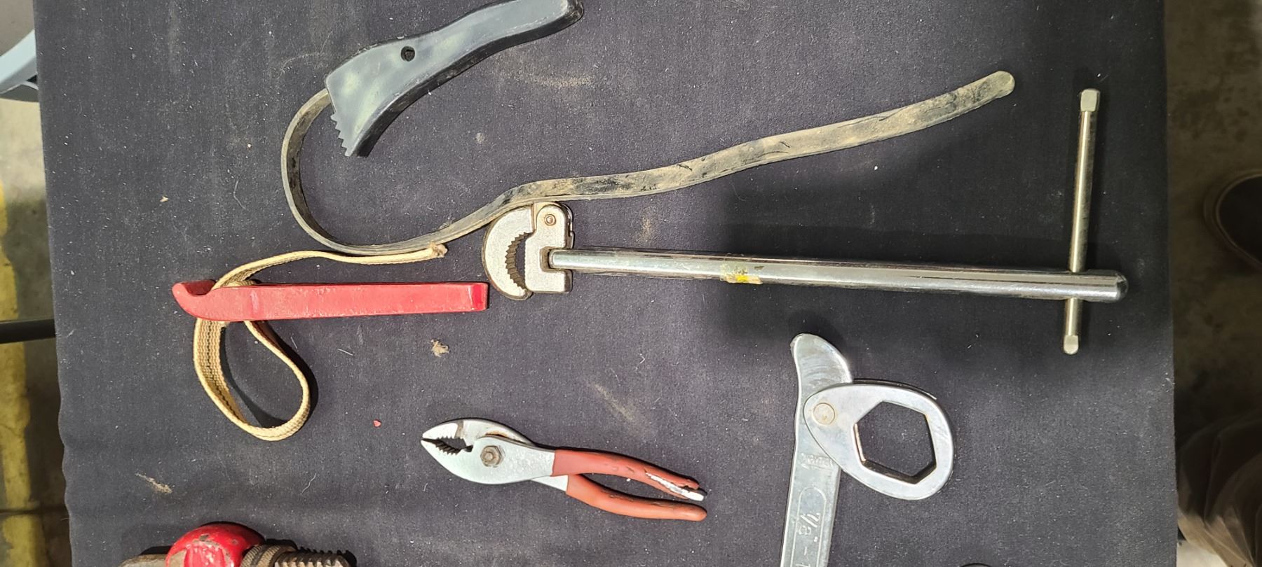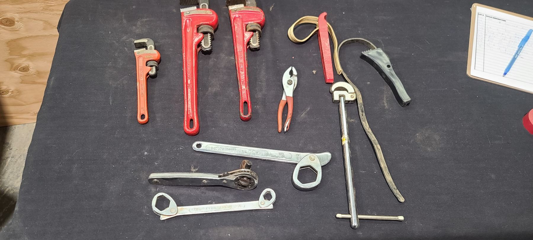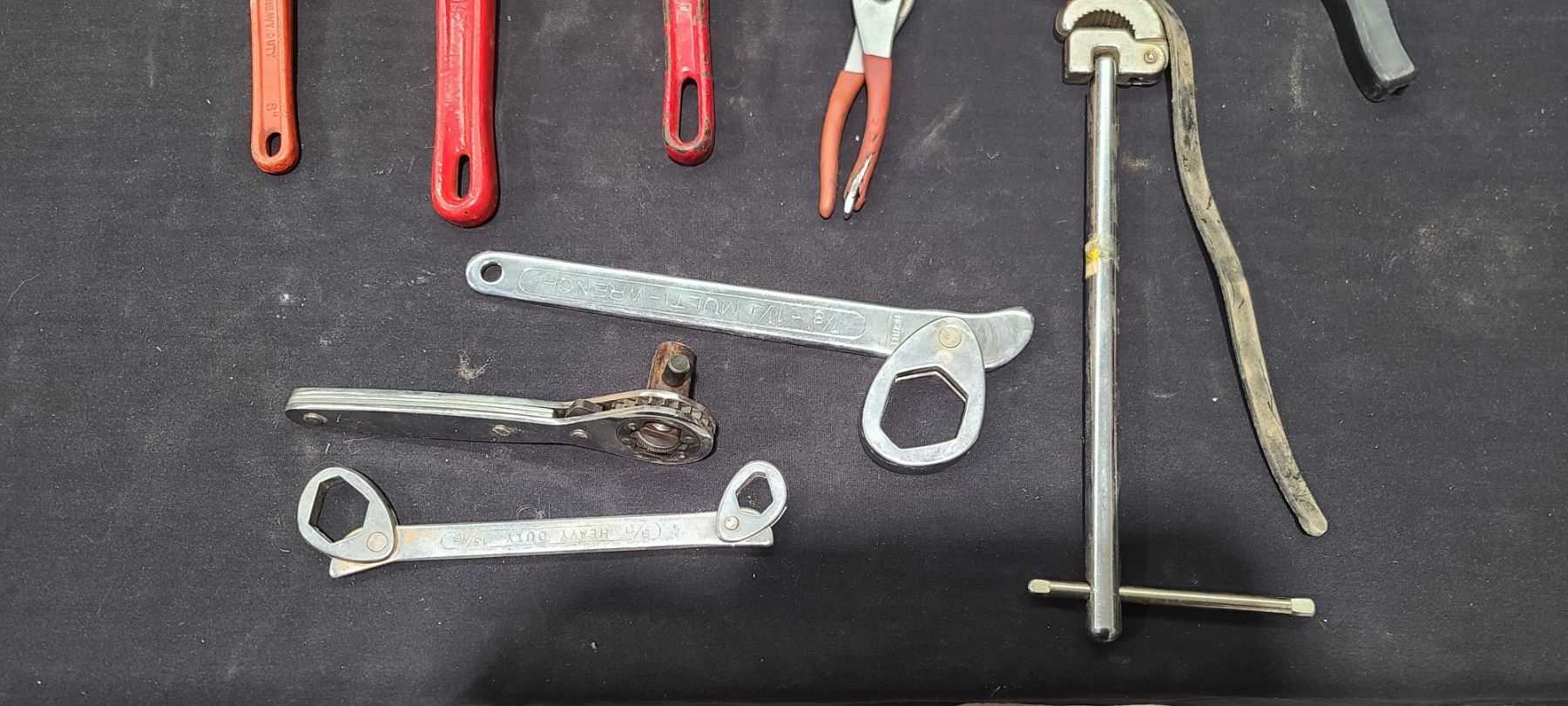 ASSORTMENT OF WRENCHES- MONKEY/PLIERS/BATTERY POST WRENCH