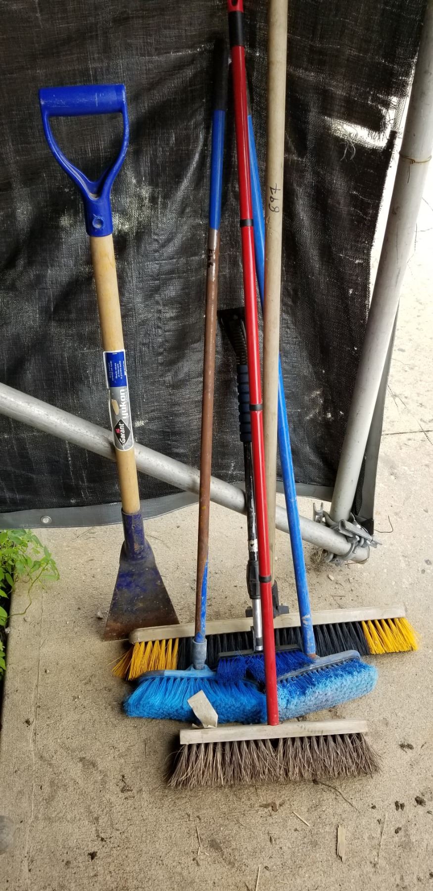 ASSOTMENT OF BROOMS, DECK BROOMS