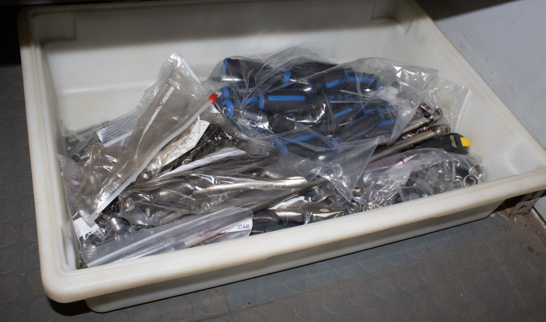 INCL. PLIERS, SCREWDRIVERS, RACHET/SOCKET WRENCHES, 250 MC PIECES, 84 ASSORTED PIECES; OVER 330 ITEMS TOTAL **ALL ITEMS MUST BE REMOVED BY 5PM SATURDAY, APRIL 5TH 2025. ALL REMAINING ITEMS WILL BE SUBJECT TO A $6.00 PER DAY STORAGE CHARGE. ANY ITEMS REMAINING AFTER MONDAY, APRIL 21ST 2025 WILL BE CONSIDERED FORFEITED. NO REFUNDS WILL BE ISSUED FOR FORFEITED ITEMS. TO SCHEDULE A PICK UP APPOINTMENT CLICK HERE