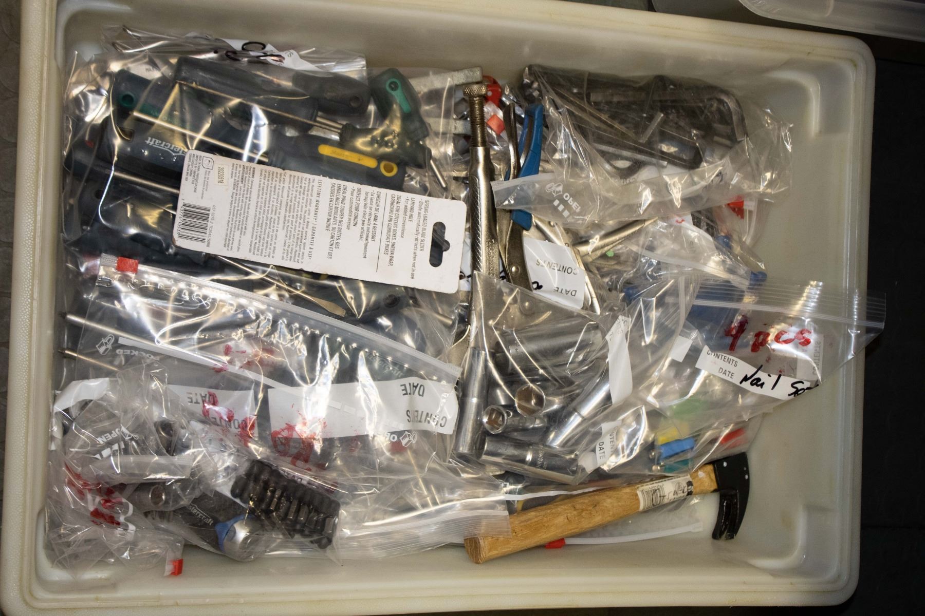 INCL. PLIERS, SCREWDRIVERS, RACHET/SOCKET WRENCHES, 180 MC PIECES, 50 ASSORTED PIECES; OVER 230 ITEMS TOTAL **ALL ITEMS MUST BE REMOVED BY 5PM SATURDAY, APRIL 5TH 2025. ALL REMAINING ITEMS WILL BE SUBJECT TO A $6.00 PER DAY STORAGE CHARGE. ANY ITEMS REMAINING AFTER MONDAY, APRIL 21ST 2025 WILL BE CONSIDERED FORFEITED. NO REFUNDS WILL BE ISSUED FOR FORFEITED ITEMS. TO SCHEDULE A PICK UP APPOINTMENT CLICK HERE